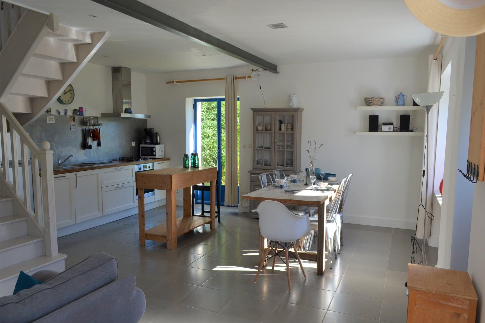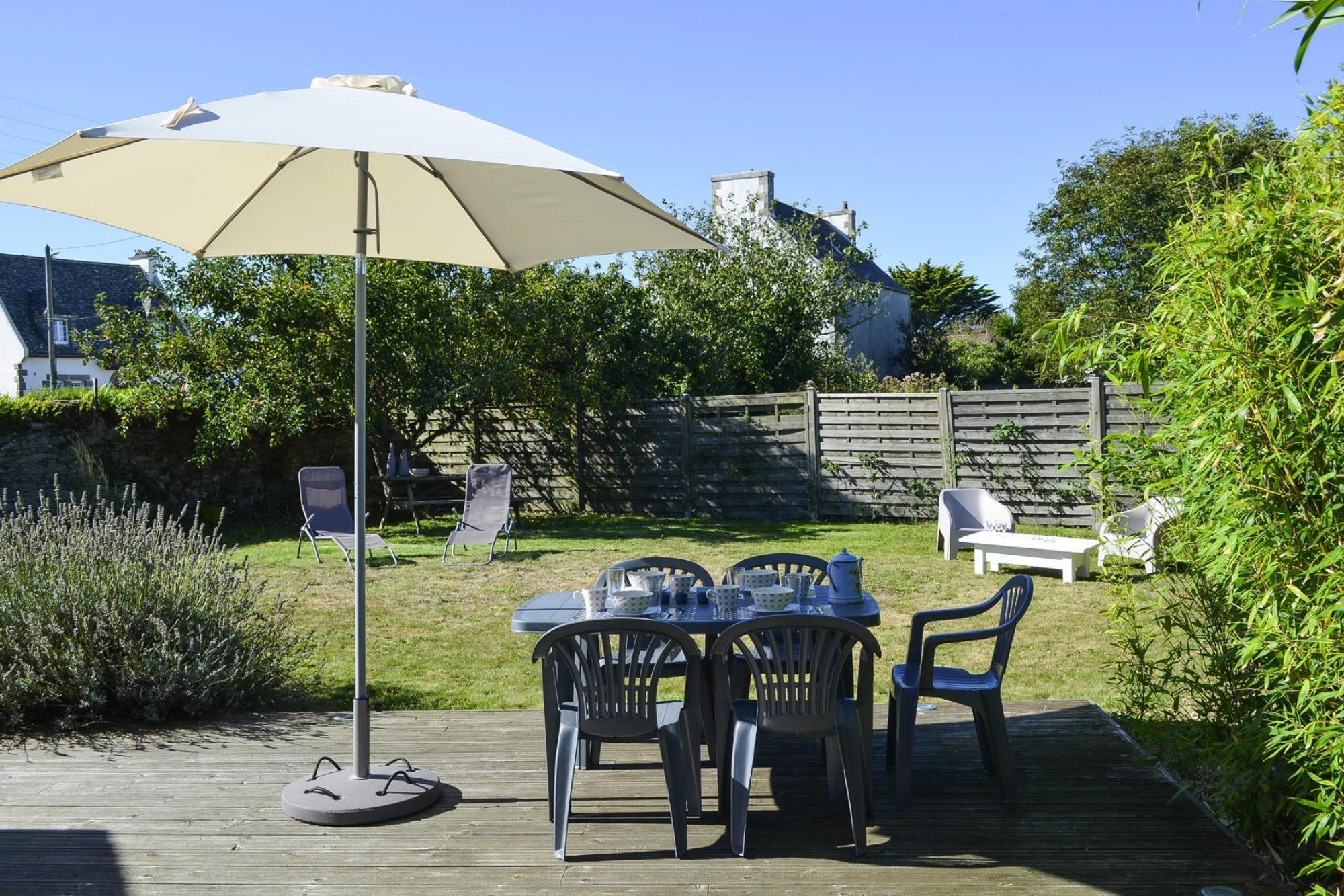 Dette charmerende bretonske feriehus ser måske simpelt ud udefra, men det har et smukt designet interiør, der skaber en perfekt feriestemning. Beliggende kun få minutters gang fra den maleriske havn og sandstrand, inviterer det veludstyrede køkken dig til at tilberede lækre lokale opskrifter. Nyd måltider på terrassen med udsigt over en lille have, hvor du kan slappe af under æbletræet og endda bage en kage om efteråret. Kystbyen kan prale af syv sandstrande og en fantastisk udsigt fra halvøen. Frisk fisk og skaldyr er tilgængelig ved havnen, og der er fremragende restauranter i nærheden. Beliggenheden er ideel til at udforske den unikke natur, historie og de barske kyster i både Finistère og Côtes d'Armor, med attraktioner som havnebyen Roscoff mod vest og den lyserøde granitkyst nær Perros Guirec mod øst.