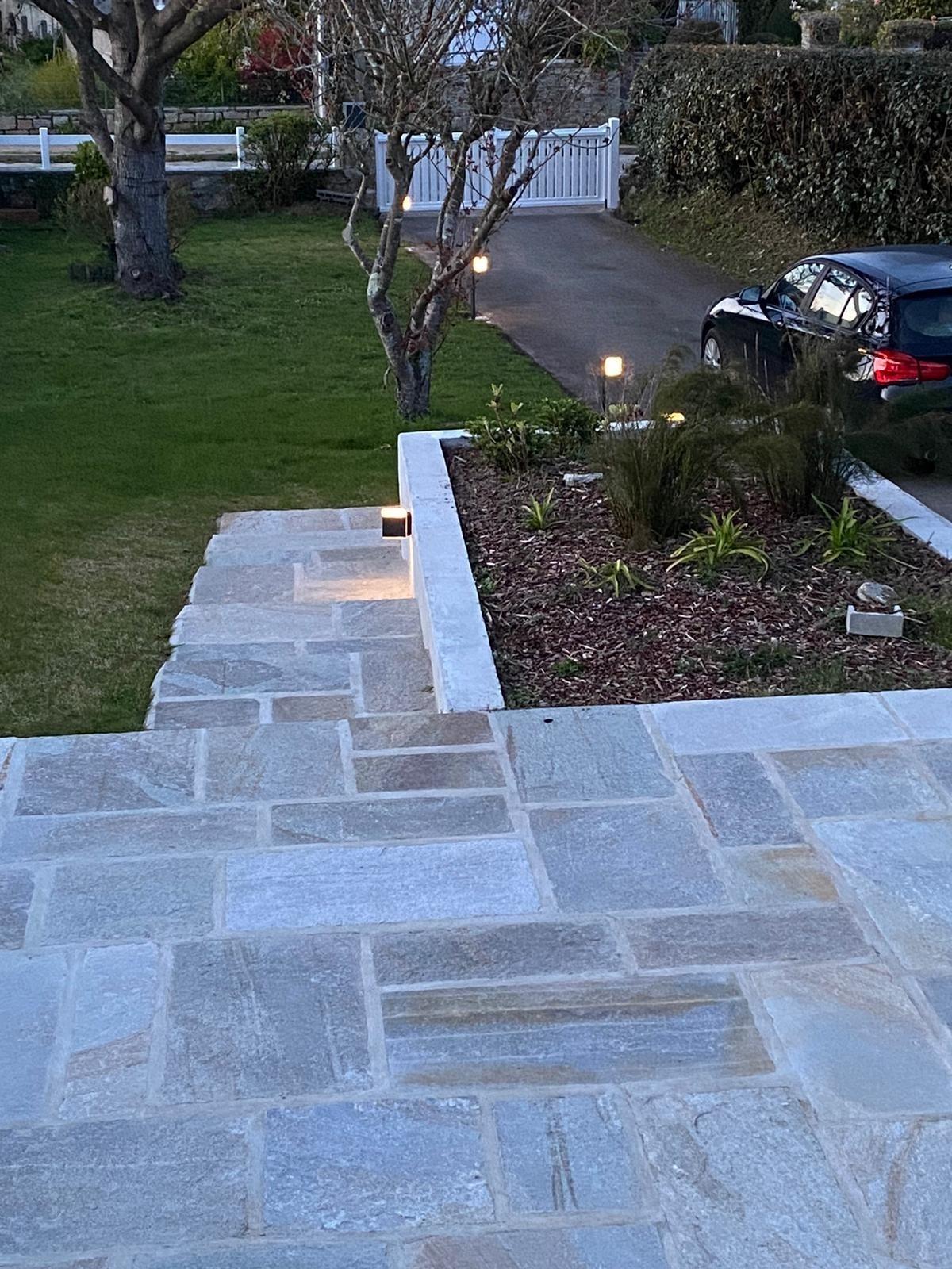 Der vordere Garten schützt vor den Blicken der Straße und hat morgens Sonne und der hintere Garten nach Süden ist in sich abgeschlossen und bietet mit Liegestühlen, Terrassenmöbeln, Sonnenschirm und BBQ den perfekten Sonnenplatz.