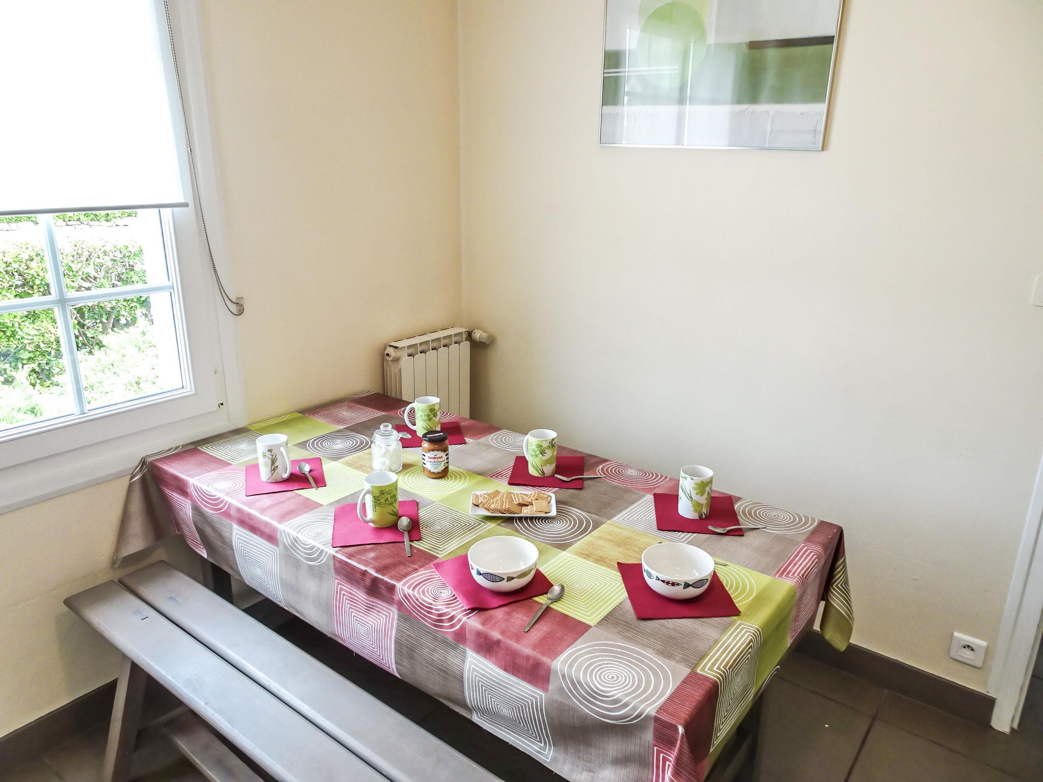 4-room house 84 m2 on 2 levels. Beautiful and cosy furnishings: living/dining room with TV (flat screen). Kitchen (oven, dishwasher, 4 gas rings, toaster, kettle, microwave, electric coffee machine) with dining table. Sep. WC. Upper floor: 1 room with 1 bed (90 cm, length 190 cm), 1 french bed (140 cm, length 190 cm). 1 room with 1 french bed (140 cm, length 190 cm). 1 room with 2 beds (90 cm, length 200 cm). Shower/WC. Electric heating. Large terrace 50 m2. Terrace furniture, barbecue, deck chairs (5). Partial view of the sea. Facilities: washing machine, dryer, iron, children's high chair, baby cot for up to 3 year olds. Internet (WiFi, free). Please note: non-smoking house. Maximum 1 pet/ dog allowed. Smoke alarm.