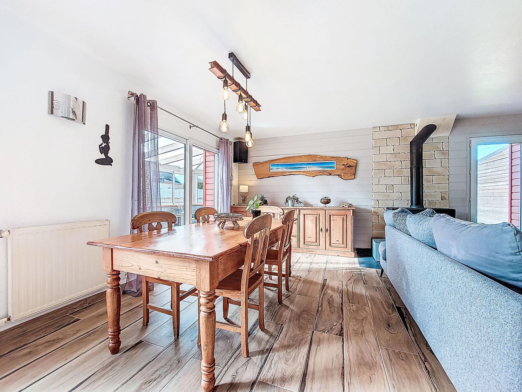 "Guiriden", 4-room house 120 m2. Comfortable and beautiful furnishings: large living/dining room with veranda with Scandinavian wood stove (only for decoration), TV (flat screen), radio. Exit to the veranda. 1 room with 1 french bed (180 cm, length 190 cm), shower. Open kitchen (1 hot plate, oven, dishwasher, 3 gas rings, toaster, kettle, microwave, electric coffee machine) with bar. Exit to the veranda. Sep. WC. Upper floor: 1 room with 1 french bed (140 cm, length 190 cm). 1 room with 1 french bed (140 cm, length 190 cm). Shower, double hand-basin. Oil heating. Terrace furniture, barbecue, deck chairs (2). Facilities: washing machine, dryer, iron, hair dryer. Internet (WiFi, free). Please note: non-smoking house. Maximum 1 pet/ dog allowed. Smoke alarm. Offer by a private individual according to Art. 155, IV of CGI.