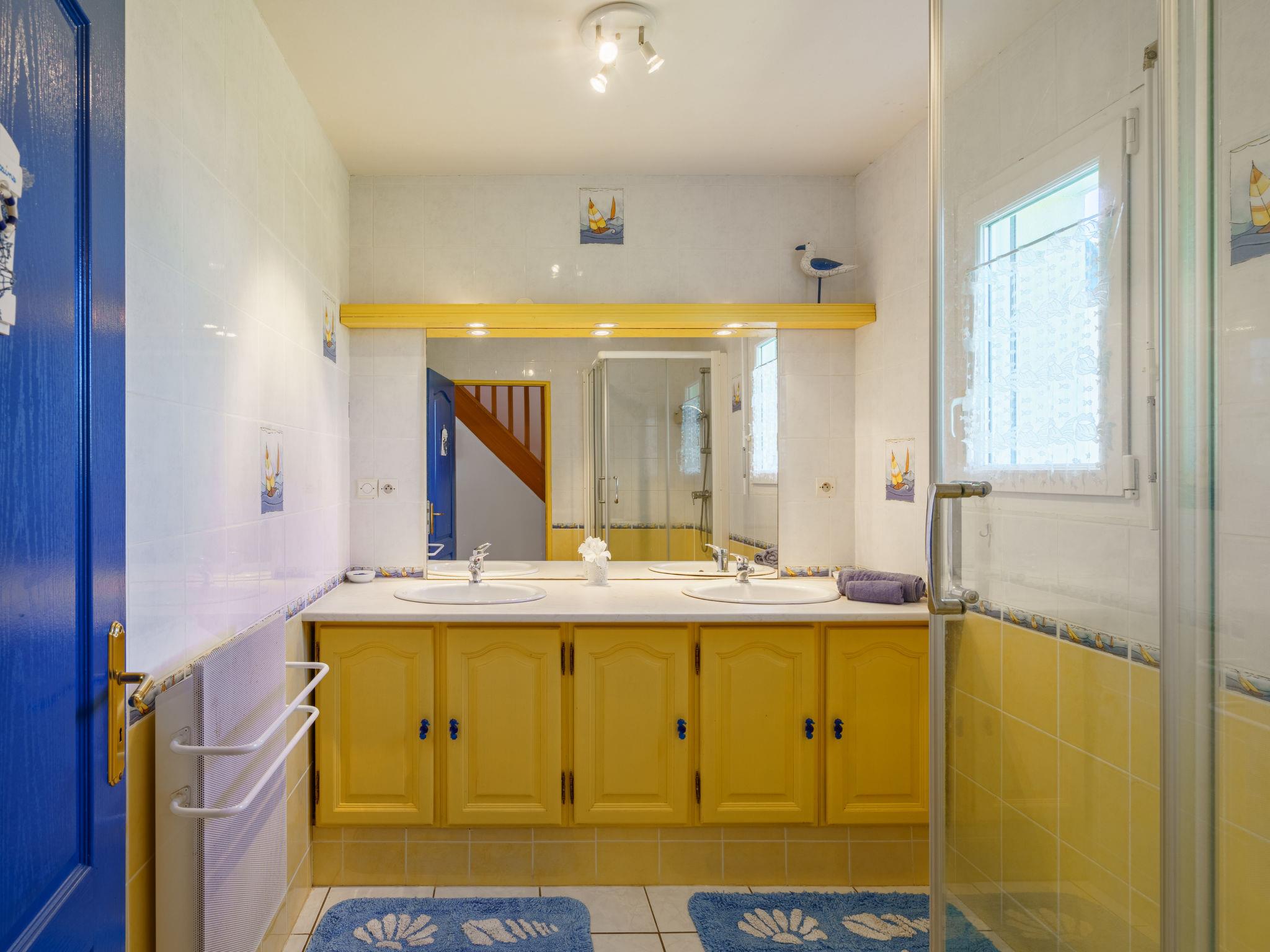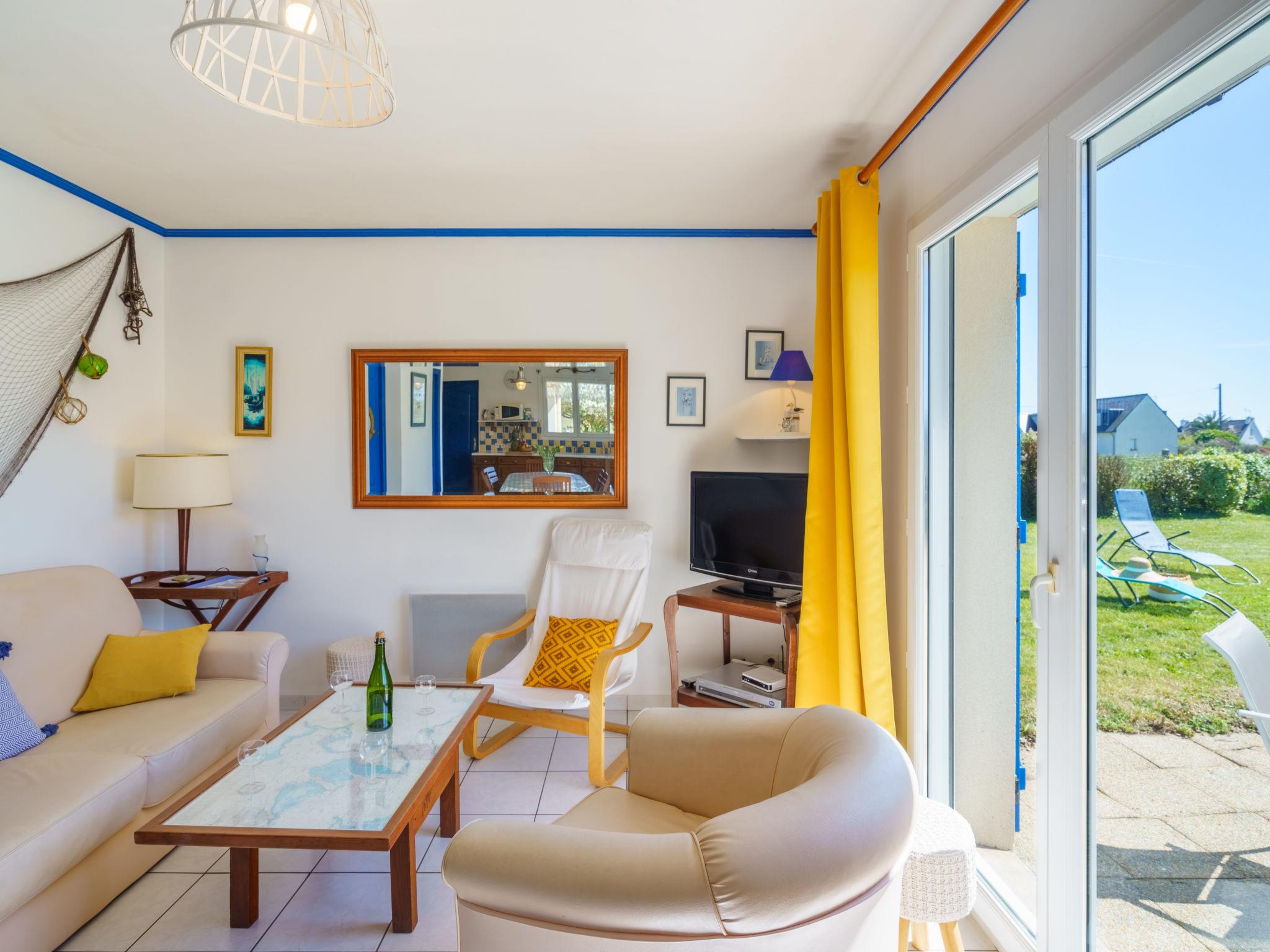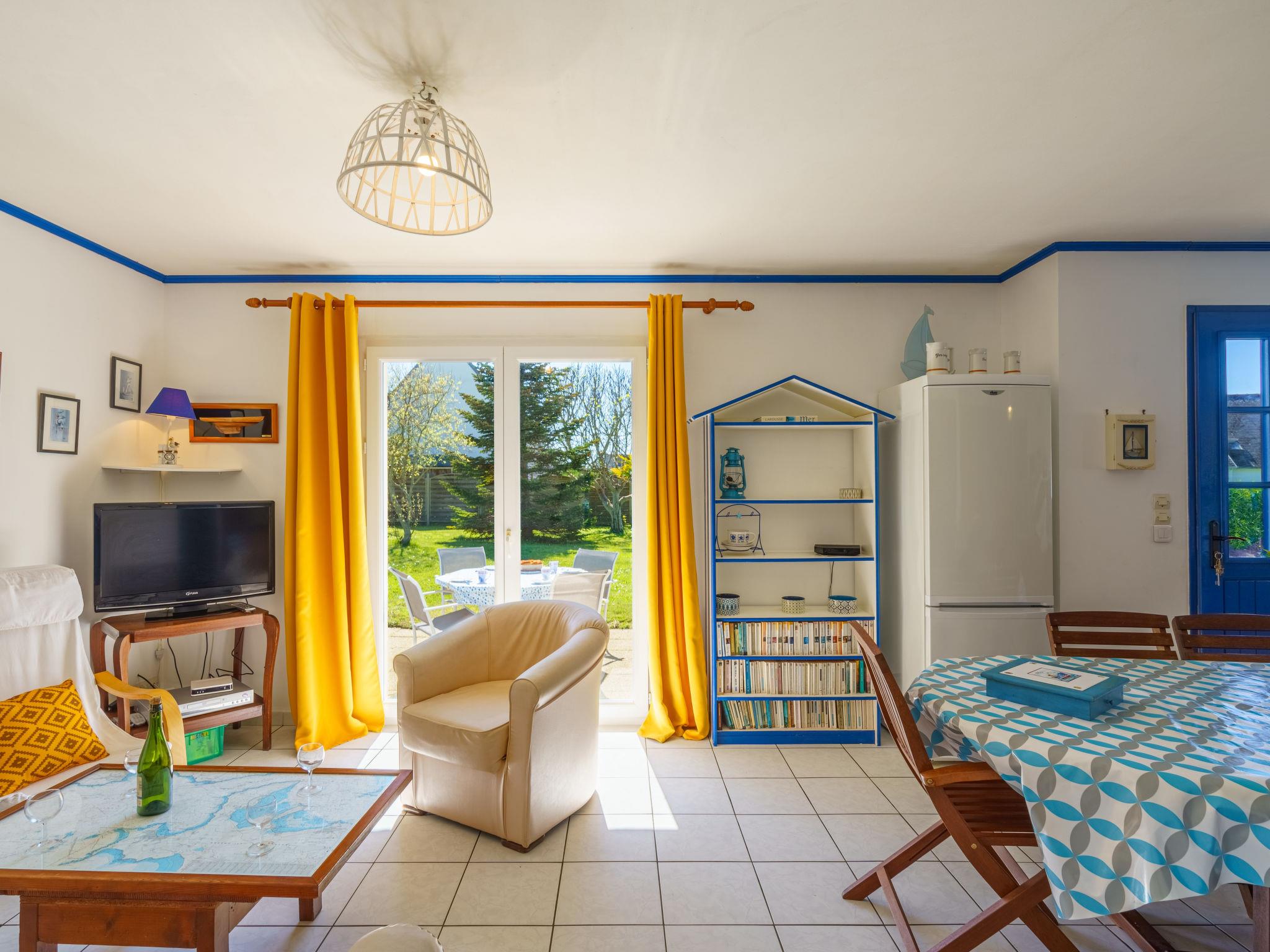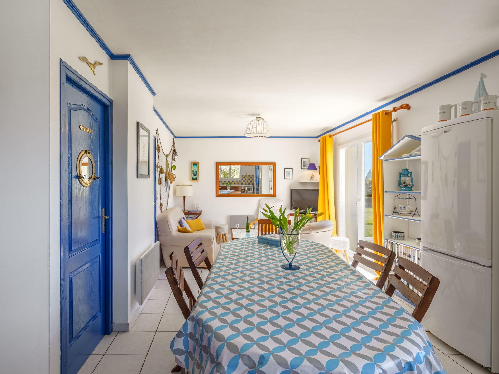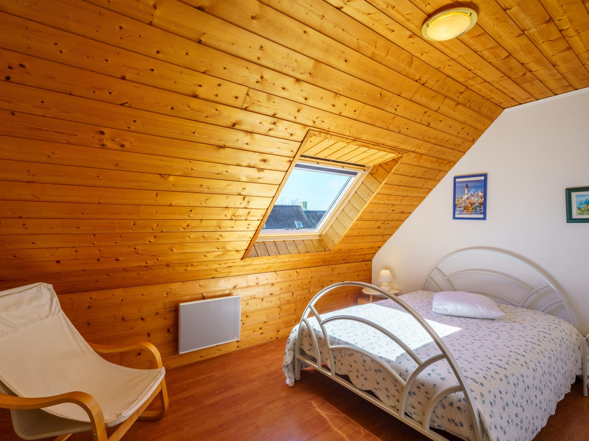 "Ty Bihan", 4-room house 80 m2 on 2 levels. Beautiful and cosy furnishings: living/dining room with dining table, TV and DVD. Exit to the terrace. 1 room with 1 french bed (140 cm, length 190 cm). Exit to the garden. Open kitchen (1 hot plate, oven, dishwasher, 3 gas rings, toaster, kettle, microwave, freezer, electric coffee machine). Shower, sep. WC, double hand-basin. Upper floor: 1 room with sloping ceilings with rooflight with 1 french bed (140 cm, length 190 cm). 1 room with sloping ceilings with rooflight with 2 beds (120 cm, length 190 cm). Sep. WC. Electric heating. Terrace. Terrace furniture, barbecue, deck chairs (4). Facilities: washing machine, iron, children's high chair, baby cot, hair dryer. Internet (WiFi, free). Please note: non-smoking house. Smoke alarm. FR61970