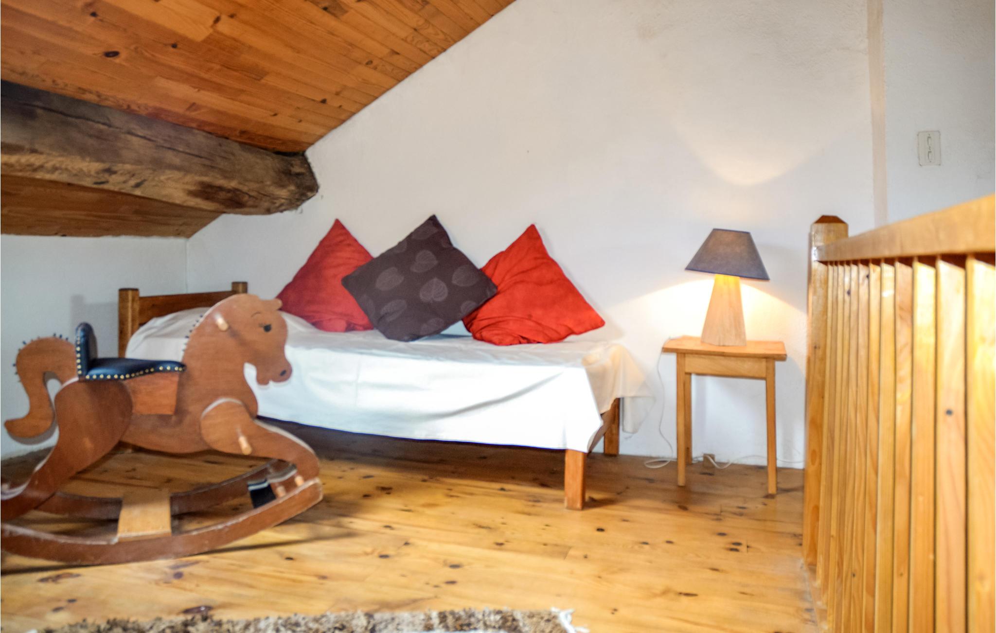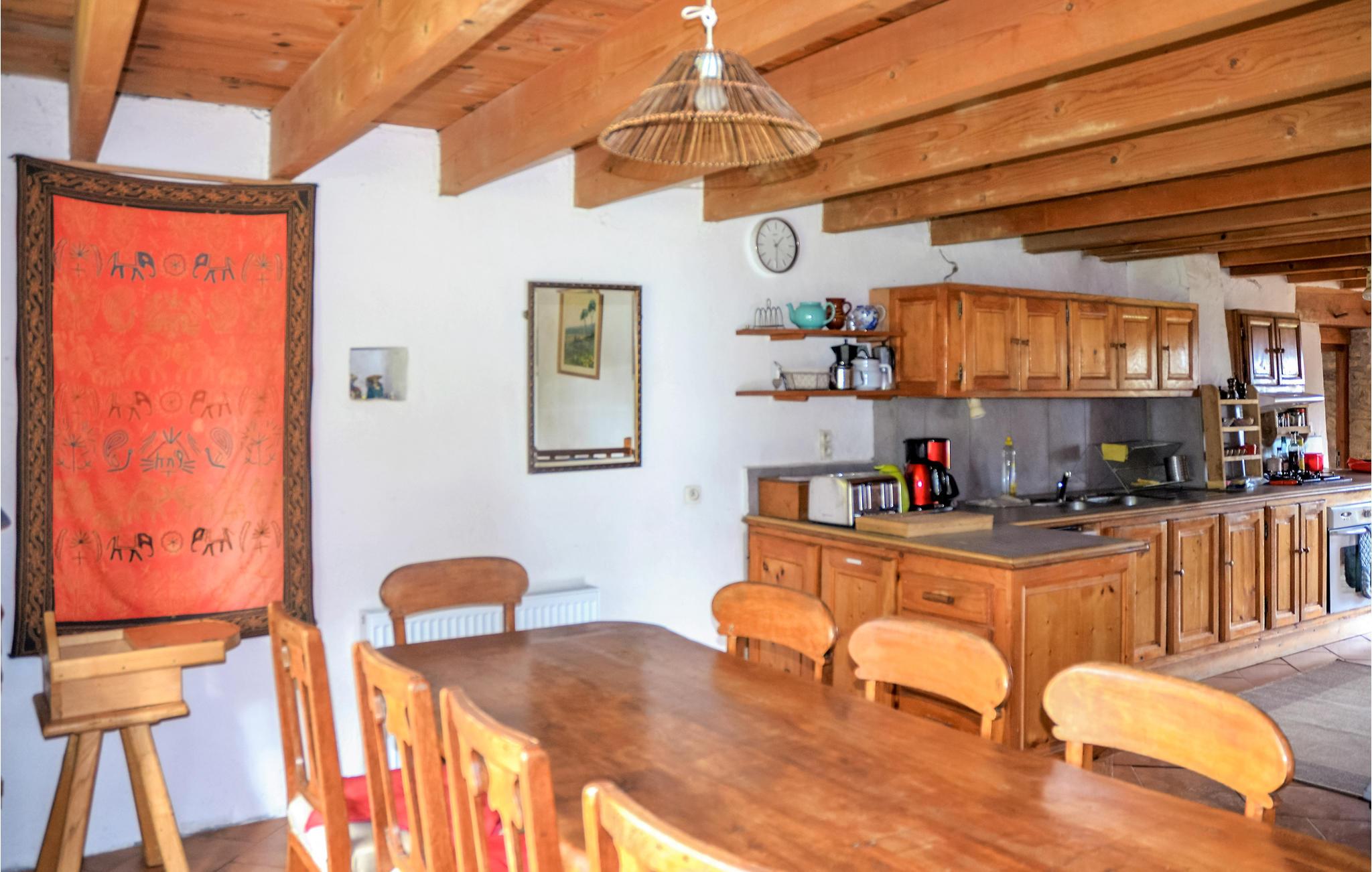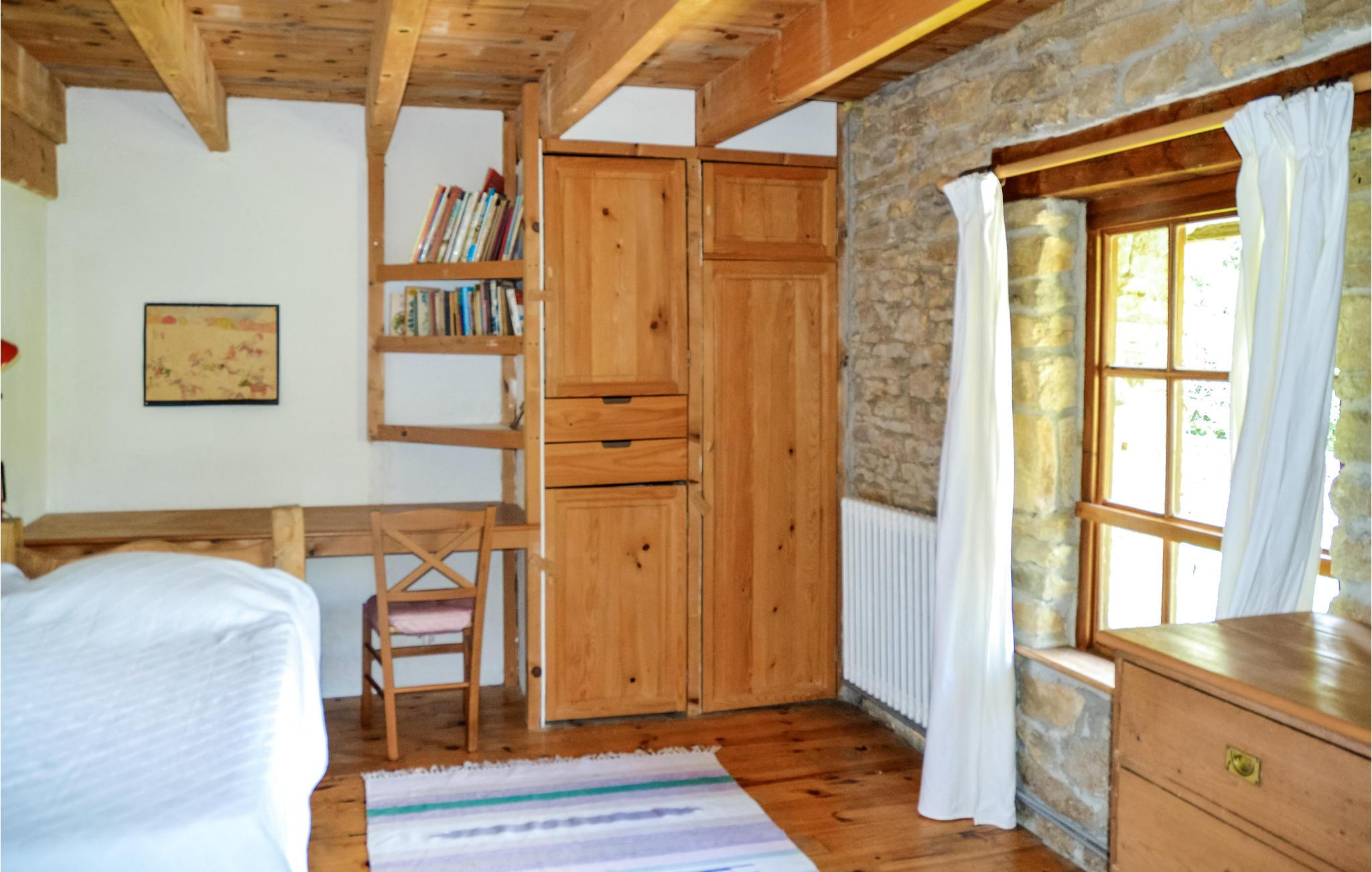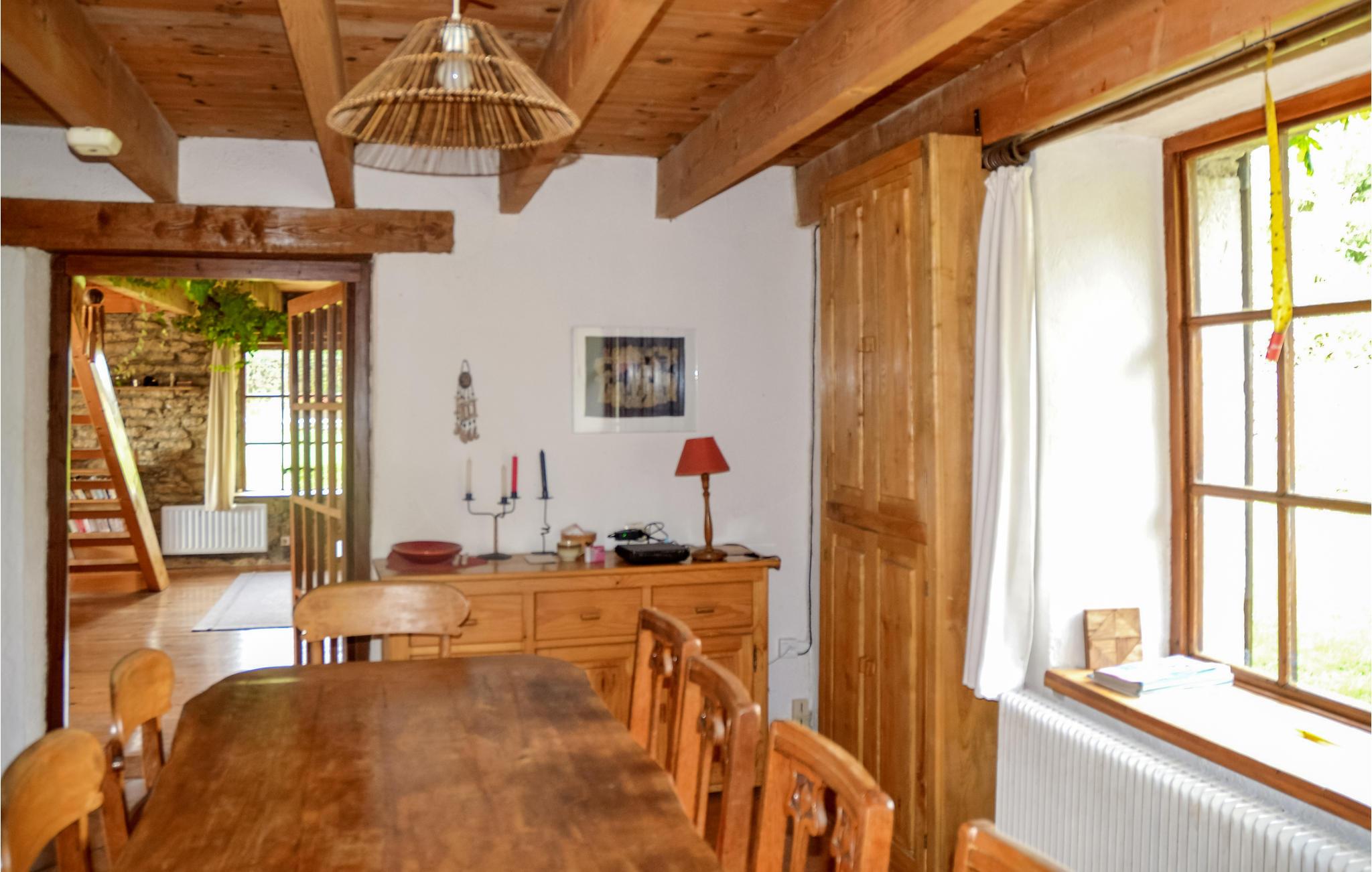Dette rummelige stenhus fra 1600-tallet ligger i et bakket, skovklædt landskab. Det rummelige hus fordeler sig over flere etager og byder på en lys indretning med et rustikt udtryk. Hvis I leder efter ro, komfort og en hyggelig atmosfære, er I kommet til det rette sted. Underhold jer selv med bordtennis i spillelokalet og tilbring dasedage i de forskellige læsehjørner, hvor der er et stort udvalg af bøger.
