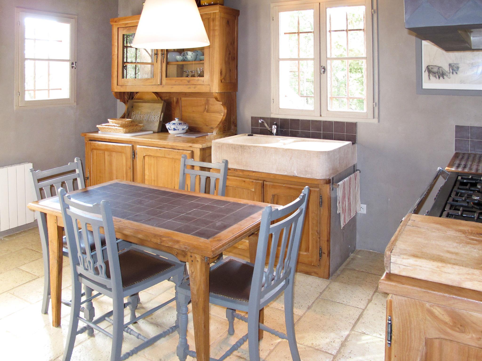 "Le Collet des Redons", 8-room house 290 m2 on 2 levels. Spacious, rustic and tasteful furnishings: large living room with open-hearth fireplace, satellite TV and hi-fi system. Exit to the terrace. Open dining room. Exit to the terrace. Living room with dining table and kitchen corner. 1 room with 1 french bed (140 cm), bath/WC. Large kitchen (oven, dishwasher, 7 gas rings, kettle, microwave, electric coffee machine) with small dining table. Exit to the terrace. Sep. WC. Upper floor: 1 room with Dressing room with 1 french bed and shower/WC. 1 room with 2 beds and shower/WC. 2 rooms, each room with 1 french bed and shower/WC. Natural stone floors. Large terrace 200 m2 partly roofed. Terrace furniture, barbecue electric barbecue, deck chairs. Facilities: washing machine, iron, children's high chair, baby cot (extra). Internet (WiFi, free). Please note: one double bedroom is outside the apartment. Non-smoking house. No internal connecting door between the separated properties. When there are less than the maximum number of guests staying at the property, the annex will not be available for use. When there are less than the maximum number of guests staying at the property, not all of the bedrooms will be available for use.