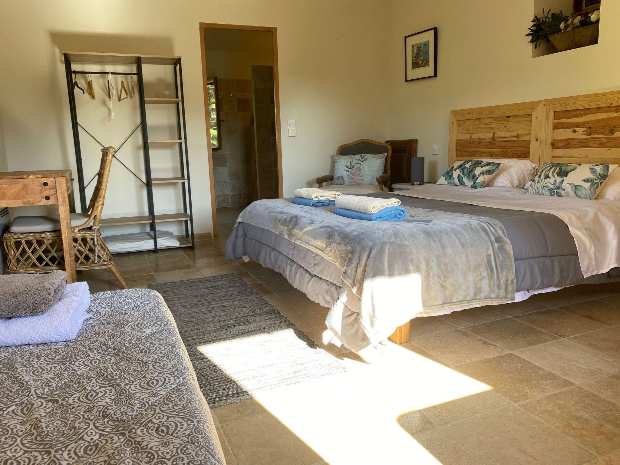 The interior of the Mas is designed for maximum comfort. Air-conditioned, it features spacious living areas and direct access to hiking trails. The large summer kitchen, equipped with an electric barbecue and a large convivial table, invites you to share gourmet moments in the open air. Bed linen and towels are included, ensuring a carefree stay.