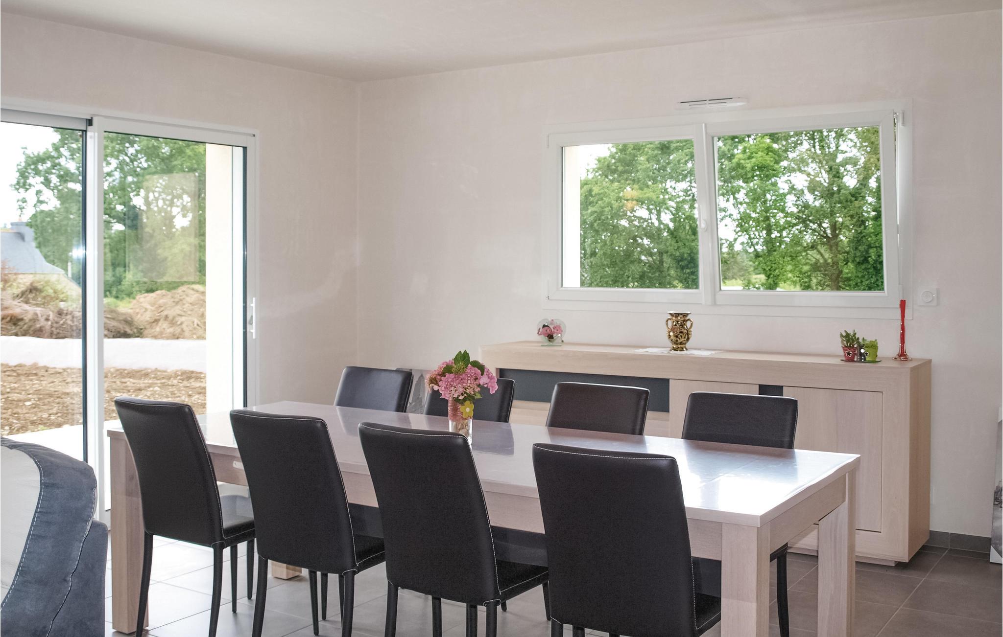 Dette tidstypiske hus med et lyst indre, er det helt ideelle udgangspunkt for at udforske Bretagnes bagland, Argoat, på dansk ’Skovens land’. I denne region er der mange kirker, kapeller, kalvariebjerge og springvande en spændende kulturskat, til hvilken Menhir von Pergat med galliske steler tæller med. I skal også udforske de historisk mindeværdige bakker Menez Bré samt skovene Coat an Noz og Coat an Hay. I kommer hurtigt og nemt frem til de skønne strande ad motortrafikvejen. Armoripark med en overdækket og opvarmet pool, dyr og legepladser, ligger blot få kilometer væk. Da huset her er i et plan, egner det sig fint til ganghandicappede feriegæster.