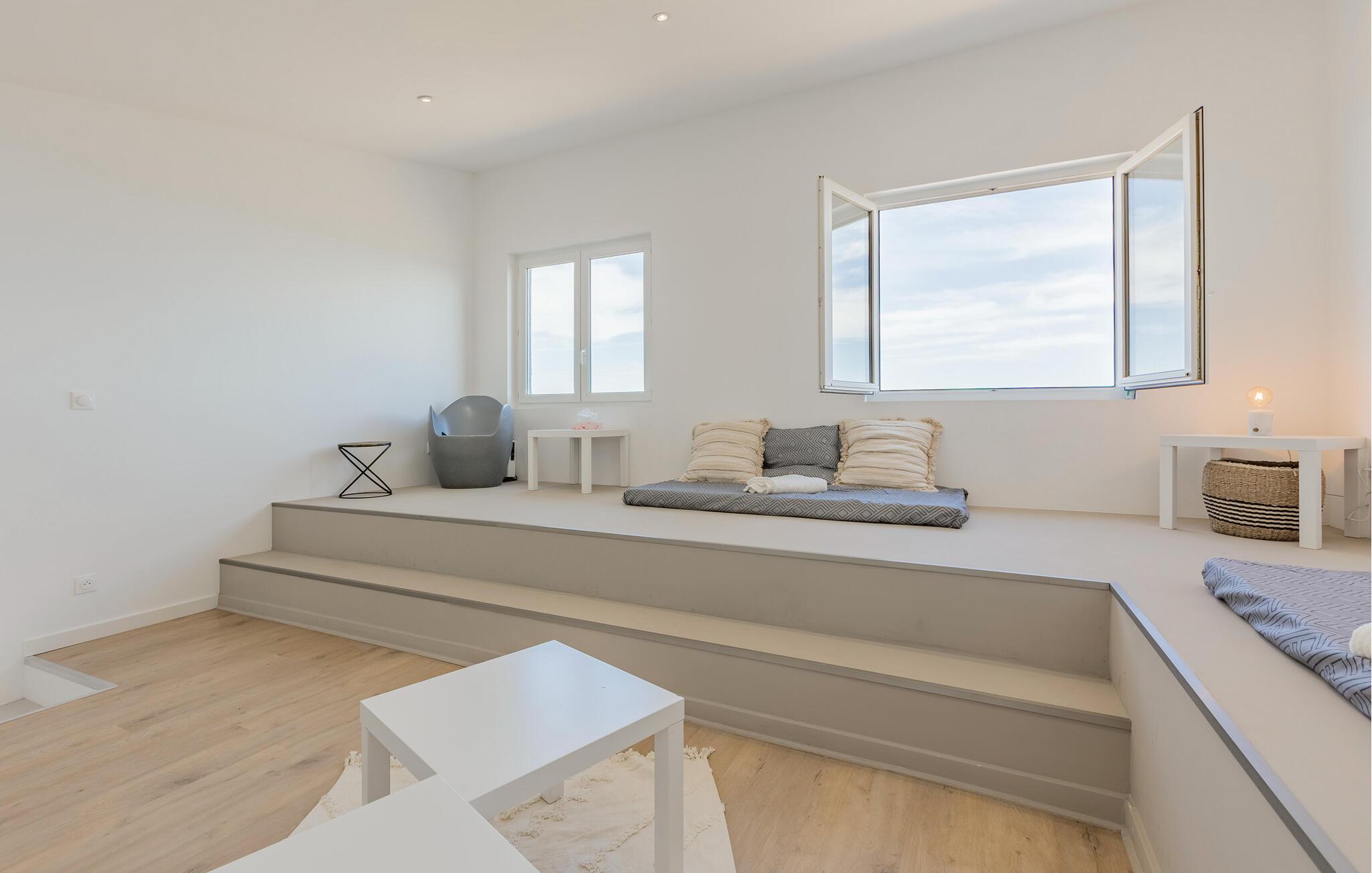 Vågn op til en svømmetur i den rolige dam og server jer selv en solid morgenmad på træterrassen ved vandet. Nyd stemningsfulde aftener her med et glas vin og lyt til bølgernes blide skvulpen.