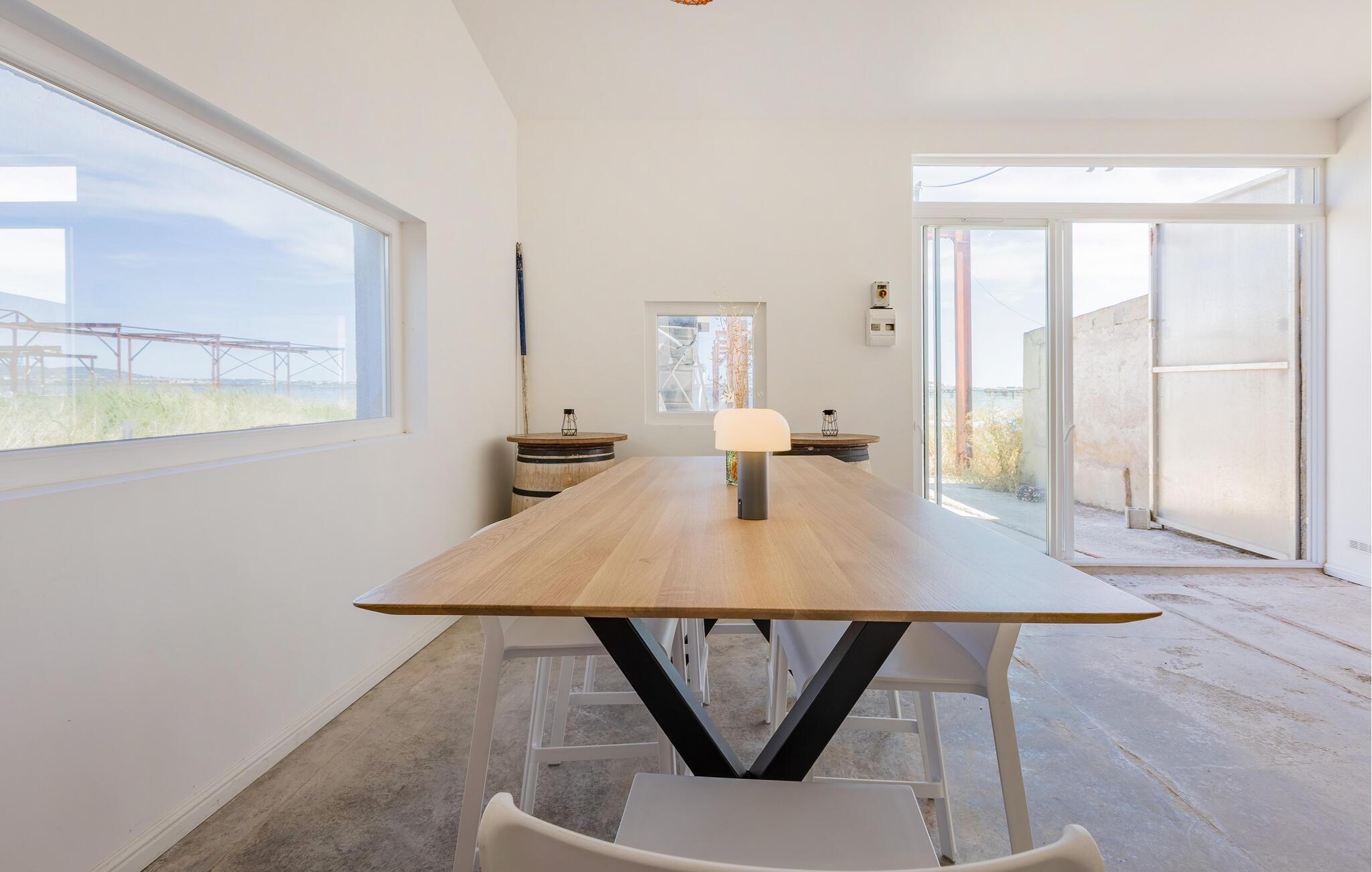 Dette lyse og rummelige feriehus i loftstil skylder sin fantastiske beliggenhed tæt på vandet til dets oprindelse som østersfarmers hus. Skønne dage venter jer i smagfuldt renoverede værelser, hvor I kan slappe af og lave mad, spise og snakke med familien – mens den fredfyldte atmosfære i det maleriske Étang de Thau er allestedsnærværende.