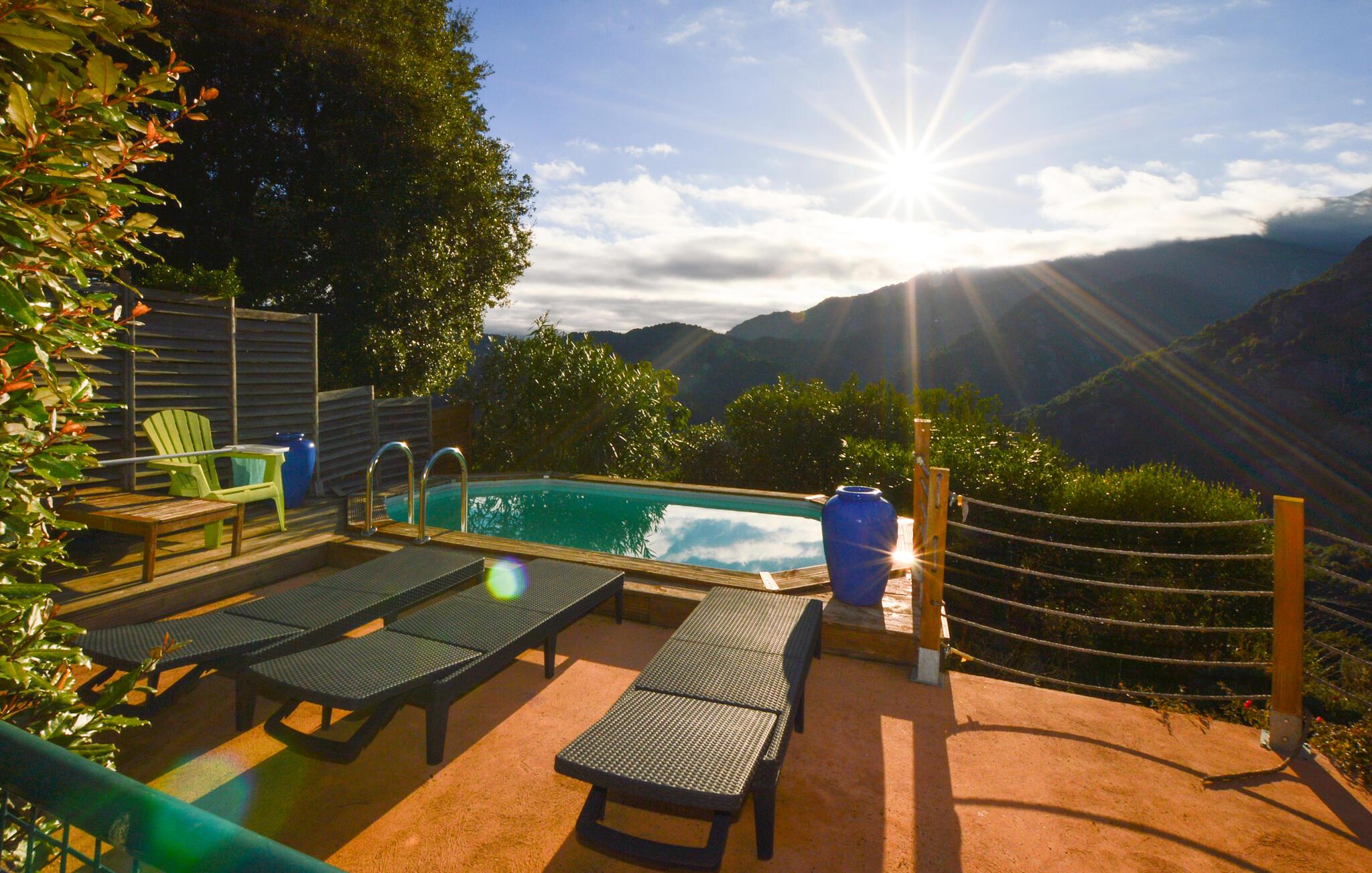 Nyd en afslappende ferie i dette charmerende feriehus med pool og en fantastisk panoramaudsigt. Beliggende i det maleriske bjerglandskab byder dette smagfuldt indrettede hus jer velkommen med en hyggelig atmosfære. Tilbered lækre måltider, nyd harmoniske måltider ved det indbydende spisebord, og afslut en aktiv dag i naturen med en afslappende spilleaften. På jeres terrasse kan I nyde morgenmaden i den milde morgensol, mens I beundrer det betagende landskab. Lad op på liggestolene, forfrisk jer i poolen og fejr kvalitetstid sammen med mindeværdige grillfester. Vandr gennem den imponerende Tavignano-kløft eller Restonica-dalen, tag en kanotur på Tavignano-floden og svøm ved sandstrandene ved Costa Serena. Besøg den antikke romerske by Aléria med dens arkæologiske museum, slentr gennem traditionelle bjerglandsbyer og prøv korsikanske specialiteter i autentiske auberger (lokale kroer). Cykl gennem duftende maquis-landskaber og deltag i en vinsmagning.