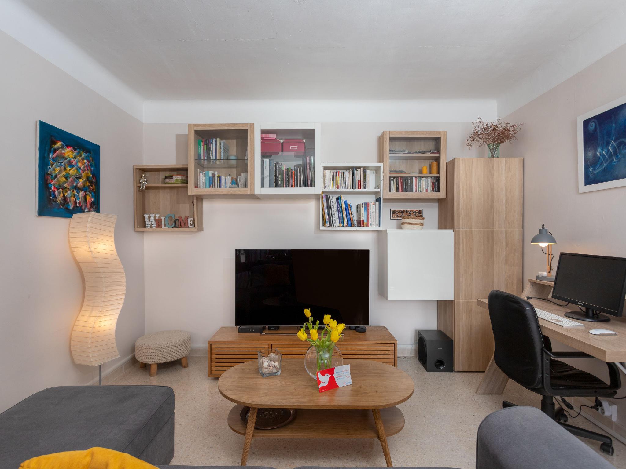2-room apartment 45 m2 on 2nd floor, south facing position. Very comfortable furnishings: living/dining room with TV (flat screen), Home cinema electric heating and air conditioning. Exit to the terrace. 1 room with 1 french bed (140 cm, length 190 cm). Open kitchen (oven, 3 ceramic glass hob hotplates, toaster, kettle, microwave, electric coffee machine, Capsules for coffee machine (NESPRESSO) extra). Bathroom, sep. WC. Electric heating. Small terrace 10 m2, south facing position. Terrace furniture. Partial view of the town. Facilities: washing machine, iron, hair dryer, logs (free). Internet (WiFi, free). Parking (1 car). Please note: apartment street side. Smoke alarm. Offer by a private individual according to Art. 155, IV of CGI.