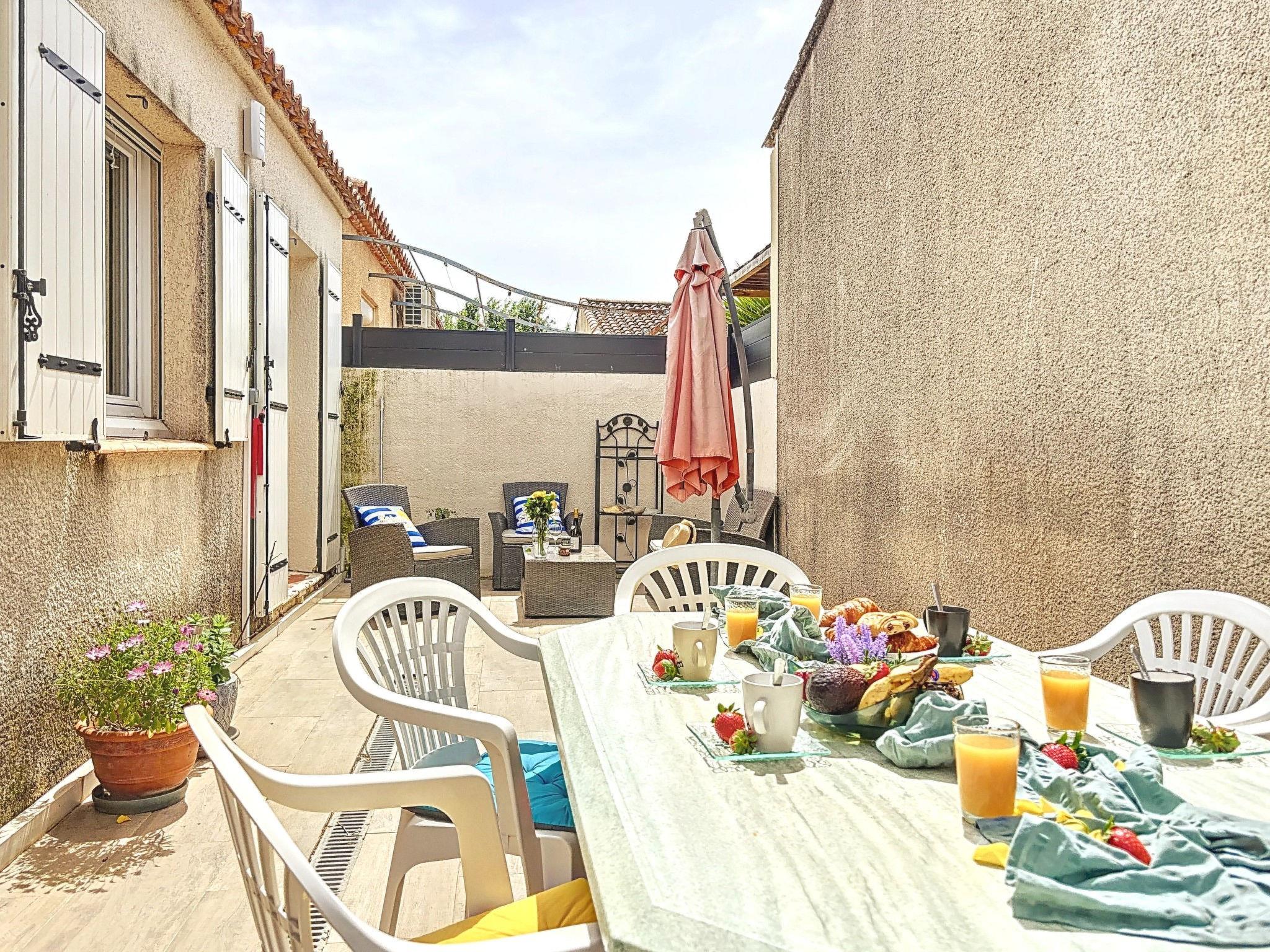 Lunel 17 km from La Grande Motte: Terraced house "Maison Valoma". In the centre of Lunel, in the residential district, 17 km from the sea, 17 km from the beach, 16 km from the river, located by a road. Public parking on the road. Grocery 1 km, supermarket 1 km, shopping centre 1 km, restaurant 1 km, bakery 1 km, 15 minute walk to the centre, bus stop 300 m, railway station "Lunel" 2 km, sandy beach "Couchant" 17 km, outdoor swimming pool 1 km, thermal baths "Thalasso Spa" 18 km. Golf course (18 hole) 17 km, riding stable 5 km. Nearby attractions: La Grande Motte 17 km, Aigues-Mortes 16 km, Seaquarium 22 km, Montpellier 30 km, Nîmes 32 km. Hiking paths: Réserve Naturelle de Camargue. Please note: car recommended. Airfield 27 km from the property.