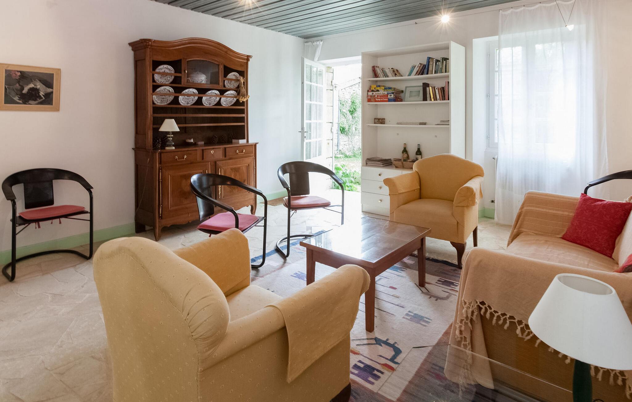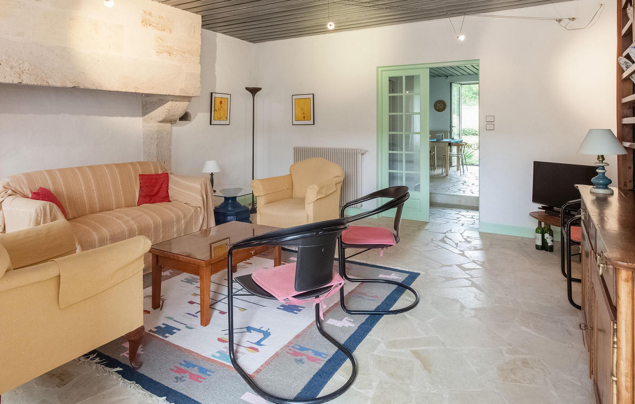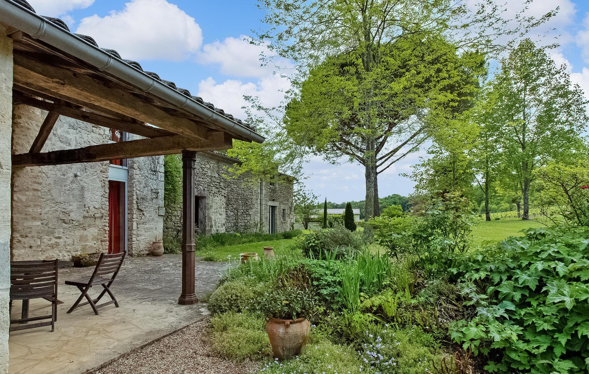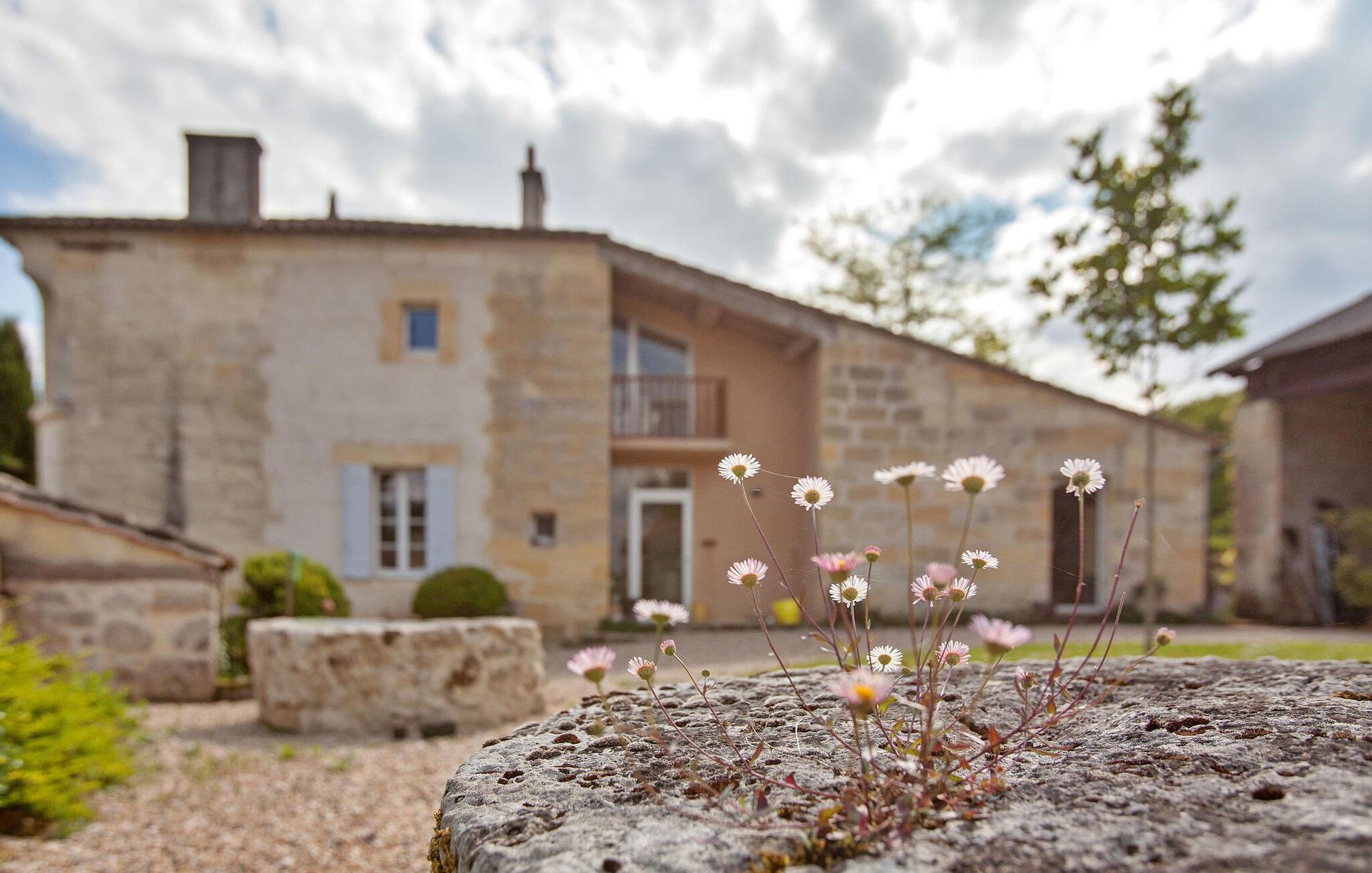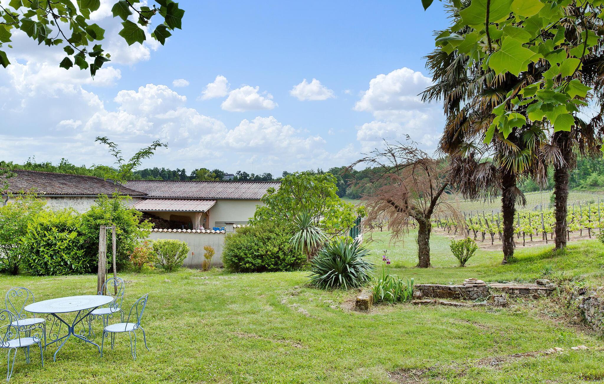 Dette feriehus, beliggende i traditionelle Gironde-huse, byder på naturskøn udsigt over vingårdene. Stueetagen består af et fuldt udstyret køkken/alrum, et komfortabelt opholdsrum med adgang til haven samt et toilet. Ovenpå finder du soveværelserne. Uderummet omfatter en privat have med fortelt, havemøbler og grill. Lejemålet er beliggende i den lille og charmerende landsby St Cibard, 15 km øst for St. Emilion, beliggende omkring dens romanske kirke i en dal midt i et landskab af vinmarker. Steder klassificeret som verdensarv: Saint Émilion 15 km væk, Bordeaux 60 km væk, Citadel of Blaye 65 km væk. Mange arkitektoniske steder, kirker, klostre, klassificeret som historiske monumenter, inden for en radius af mindre end 50 km.