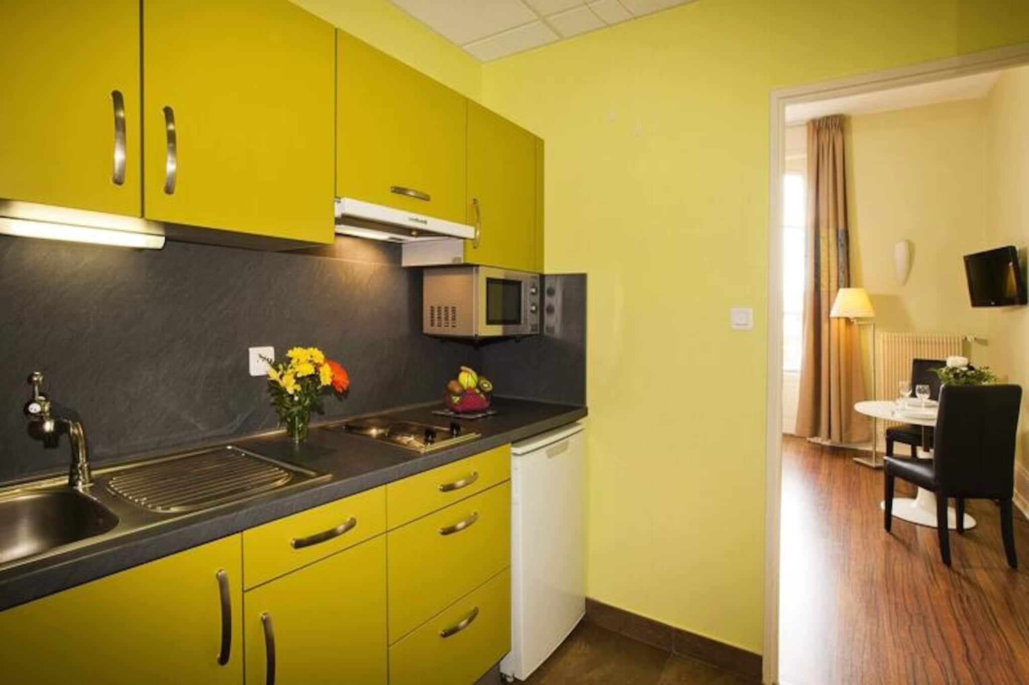 Flygt til den charmerende by Luxeuil-les-Bains, hvor afslapning og opdagelse blandes problemfrit på Garden & City Luxeuil-les-Bains Residence – Le Métropole***. Beliggende i hjertet af denne historiske kurby, lige overfor det berømte termiske spacenter, tilbyder denne residens et roligt tilflugtssted for par, familier eller grupper. Uanset om du søger en romantisk weekend eller en foryngende ferie, er denne ejendom den perfekte ramme for dit ophold. Residensen er omgivet af frodige grønne områder og har en rolig terrasse, et hyggeligt bibliotek og et spillerum, der skaber rum til at slappe af efter en dag med udforskning. Indkvarteringen spænder fra intime studiolejligheder for to til rummelige lejligheder for op til seks gæster, alle udstyret med moderne bekvemmeligheder for din komfort. Start dine morgener med en lækker morgenmadsbuffet, og nyd bekvemmeligheden ved nærliggende restauranter inden for gåafstand. Gratis Wi-Fi og gratis offentlig parkering bidrager til at gøre dit ophold endnu nemmere og sikrer en problemfri oplevelse. Luxeuil-les-Bains er berømt for sine termiske bade og rige kulturarv. Efter at have forkælet dig selv med spabehandlinger, kan du tage en afslappet slentretur gennem byens maleriske gader eller besøge JOA Casino, der ligger kun to minutters gang væk. For et dykkerdybde i den lokale kultur tilbyder Cherry Country Ecomuseum i det nærliggende Fougerolles et fascinerende glimt af regionale traditioner. Naturentusiaster vil blive betaget af Plateau des Mille Étangs, et betagende landskab med gletsjerdamme, skove og enge, perfekt til vandreture, cykling eller fredelige gåture. Uanset om du er her for at slappe af, udforske eller fordybe dig i Vogesernes skønhed, lover Garden & City Luxeuil-les-Bains Residence et uforglemmeligt ophold. Lad charmen ved denne idylliske destination forynge din ånd og skabe varige minder.