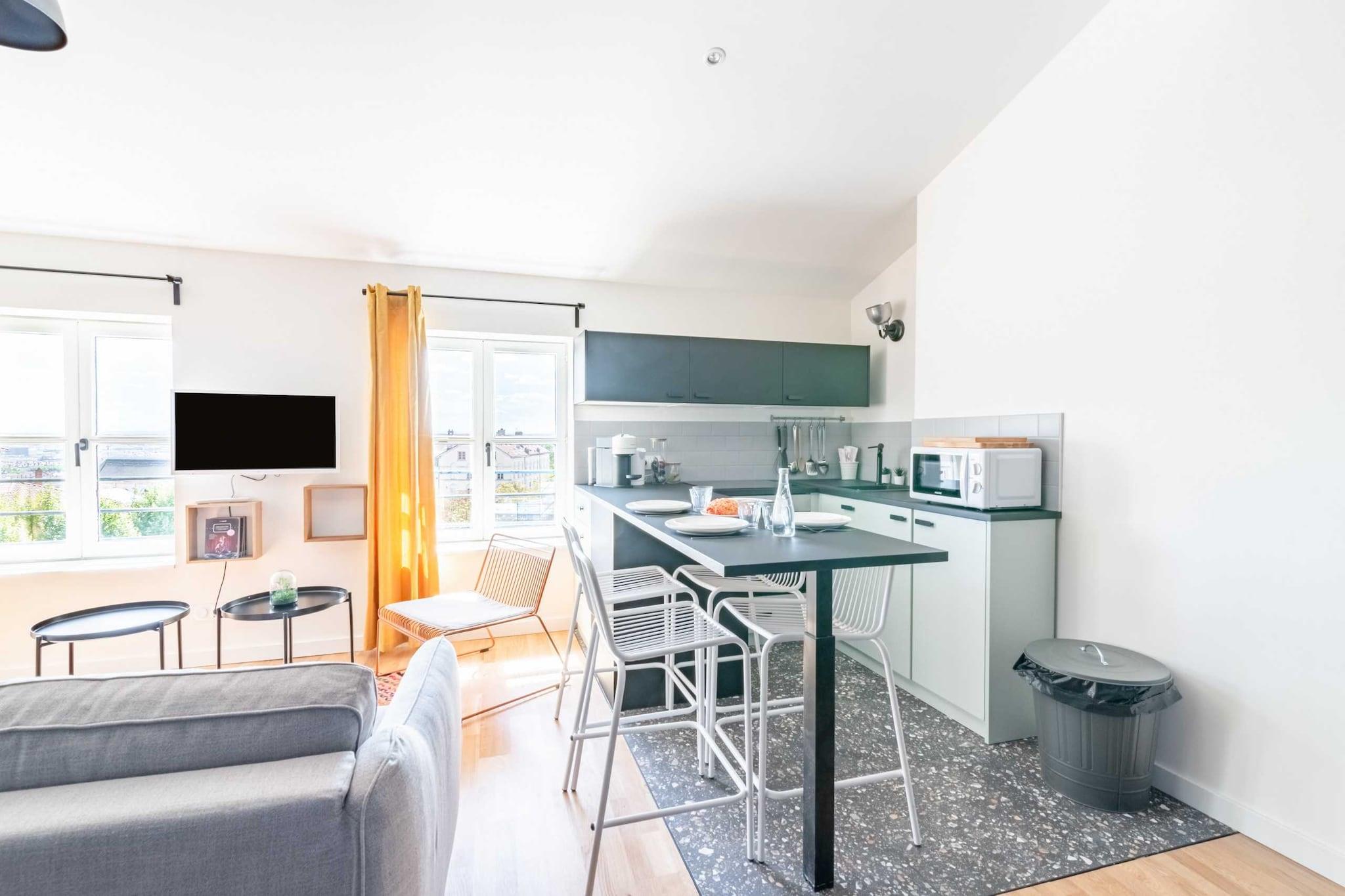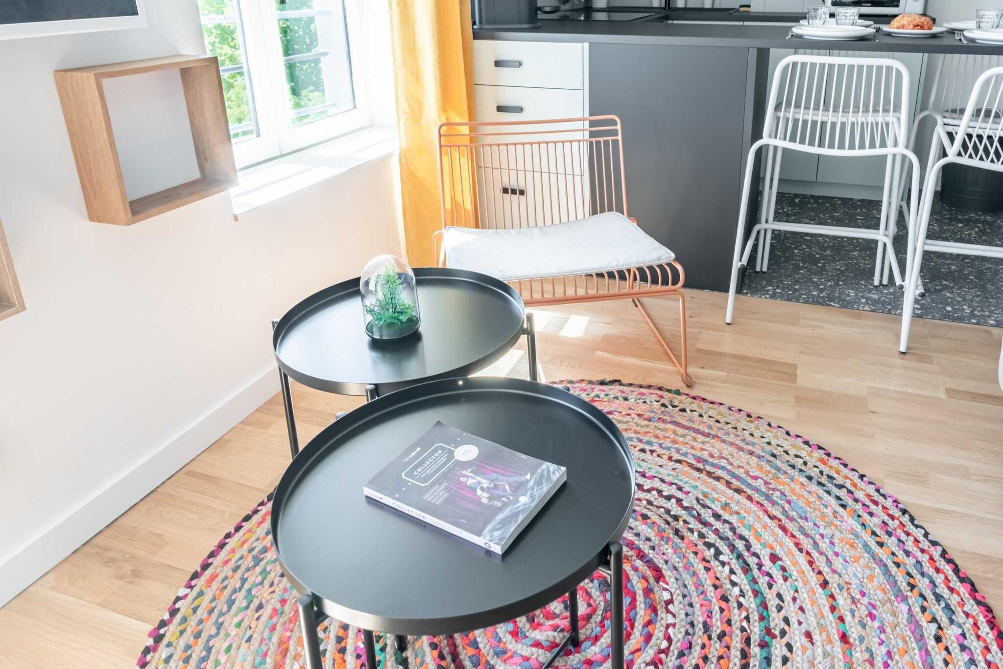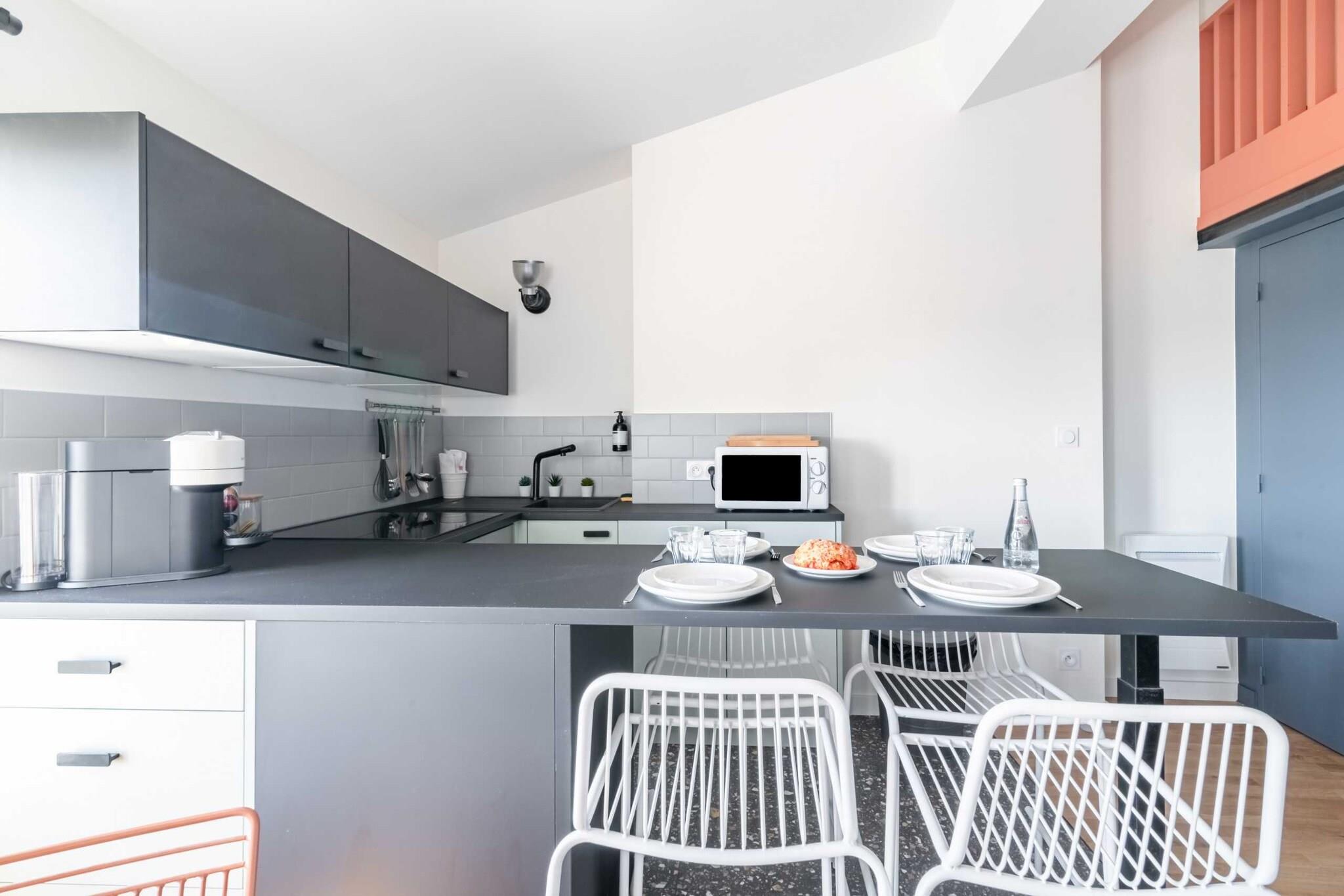 Beliggende i et af de mest ikoniske kvarterer i Lyon, null Grand Dupont ligger i et af de mest ikoniske kvarterer i Lyon og har en ideel beliggenhed i fredelige omgivelser, samtidig med at man er tæt på Boulevard de la Croix Rousse og dens faciliteter. Chartreux-kvarteret ligger på Croix Rousse-plateauet med udsigt over byen Lyon og en storslået udsigt. Denne helt nye og smagfuldt indrettede T2 ligger på 5. og øverste sal i en gammel bygning uden elevator. Den består af et udstyret køkken, der åbner ud til en stue med sovesofa, et brusebad og et separat toilet. Den har et dejligt, meget komfortabelt soveværelse med opbevaringsskabe og en 140x190 seng. Du kan også nyde en dobbeltseng (140 x 190) på en mezzanin for mere privatliv, samt en sovesofa i stuen. Led ikke længere efter din lille Lyon-rede, dette er den rigtige. Andre bemærkninger Rengøringsgebyrerne inkluderer rengøring ved ankomst og efter afrejse samt sengetøj og håndklæder, toiletartikler og kaffe ved ankomst. Der udleveres et enkelt sæt nøgler til dit ophold.
