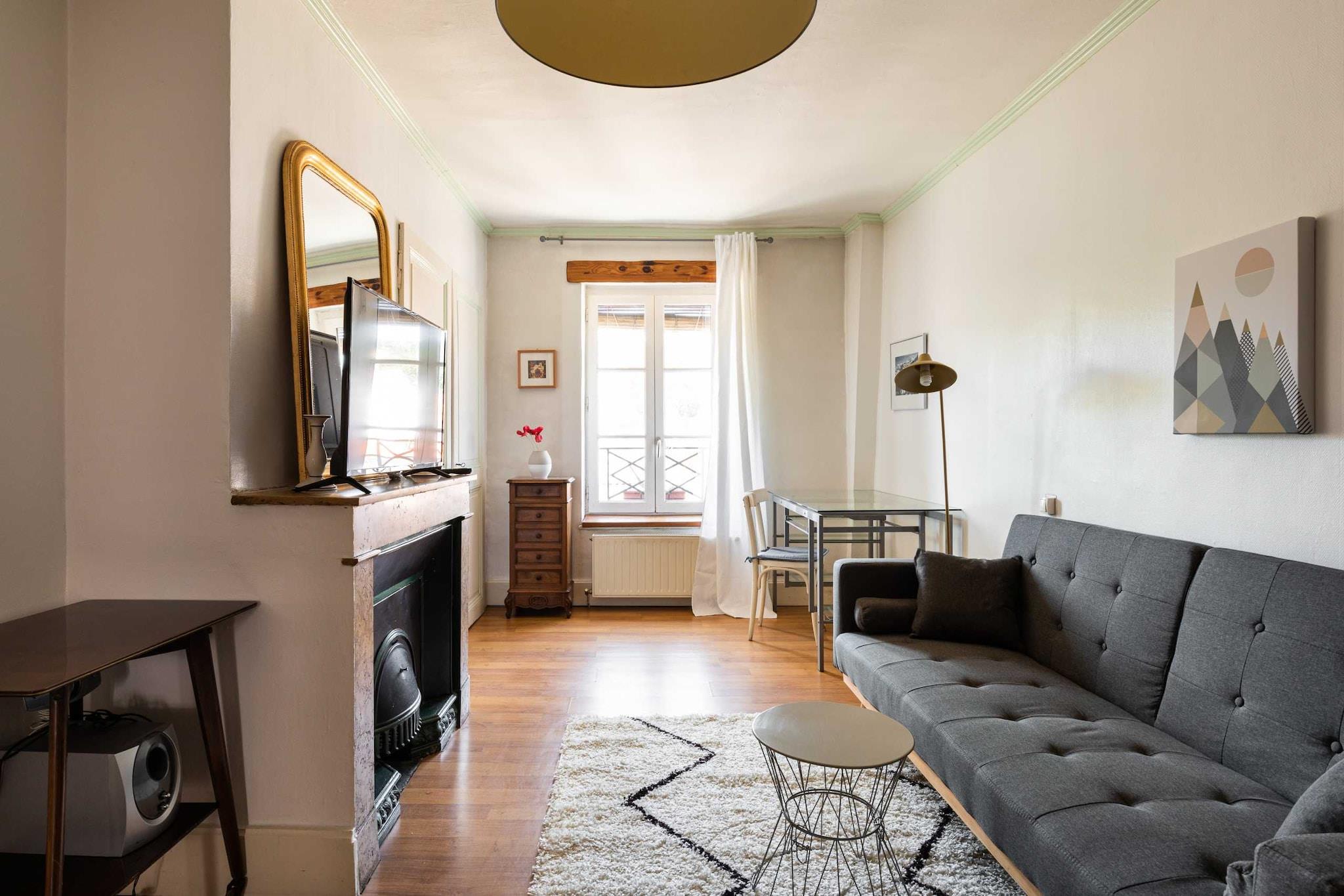 På 5. etage: (Stue(Fjernsyn), Køkken(elkedel, brødrister, emhætte, kaffemaskine, ovn, mikrobølgeovn, køleskab, ), soveværelse(, varme, strygebræt, strygejern, Queen Bed), badeværelse(bruser, håndvask, toilet, vaskemaskine, føntørrer, Håndklæder inkl., , , )) , varme, , Cleaning before checkout