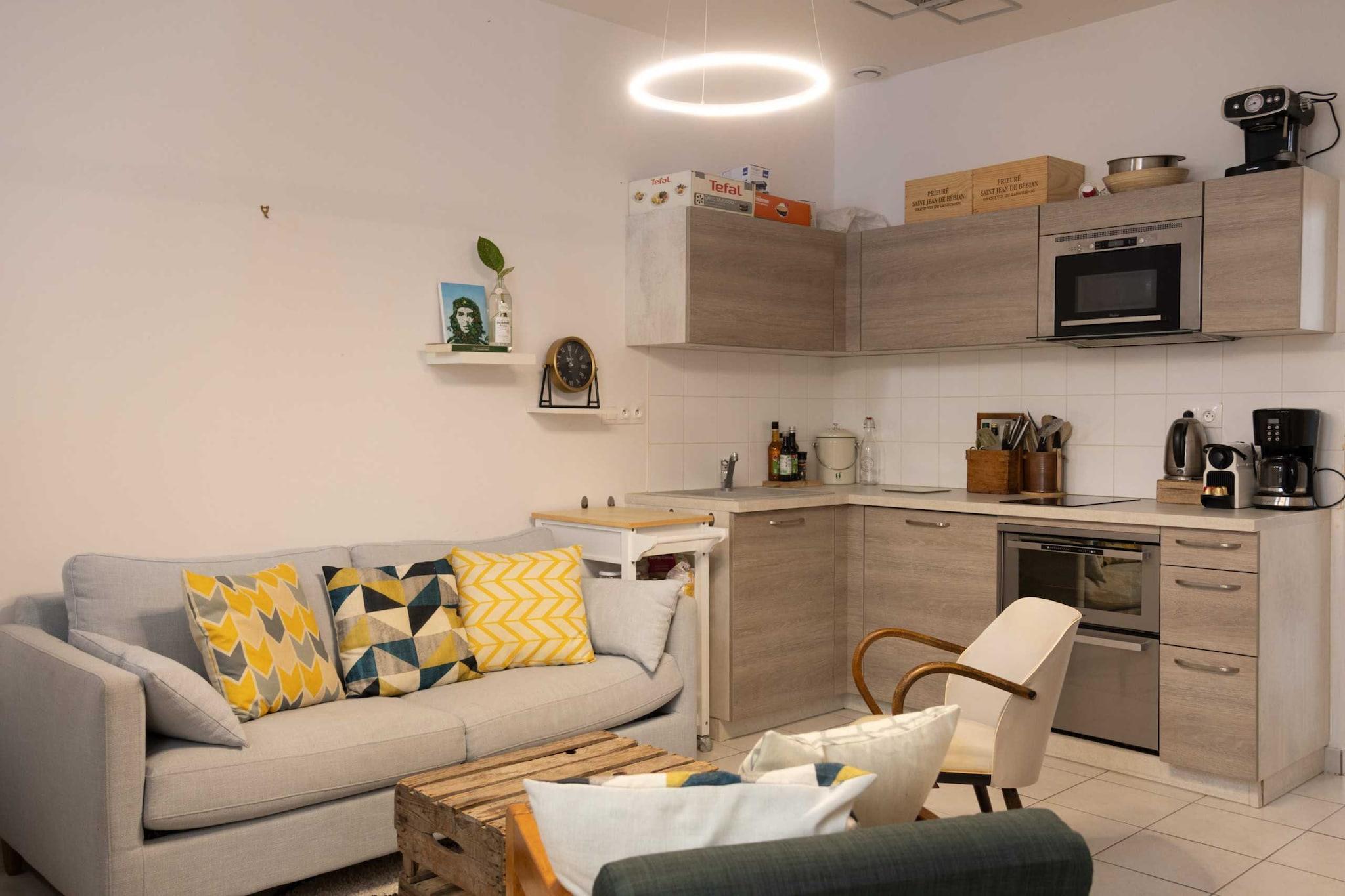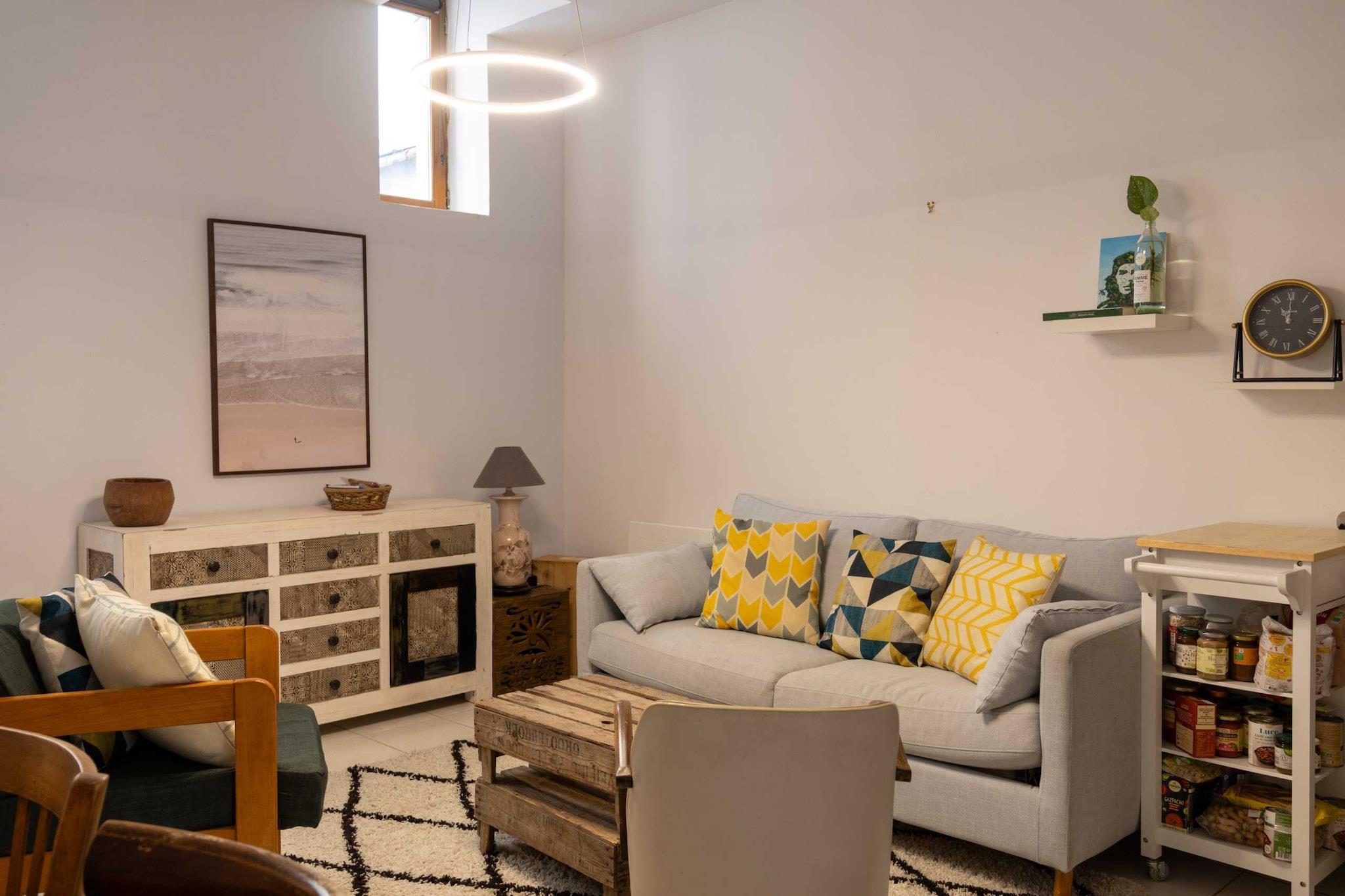 Lejlighed med masser af karakter. Du vil kunne få mest muligt ud af dens lysstyrke og ro under dit ophold. Den er designet til at opfylde alle dine behov. null Denne fuldt udstyrede lejlighed har plads til op til 4 personer, med et soveværelse med en dobbeltseng (140x200) og en stue med en komfortabel dobbeltsovesofa. Du vil have fuld adgang til lejligheden og vil være fri til at bruge alle faciliteterne: ubegrænset internet, fuldt udstyret køkken, kaffemaskine, vaskemaskine og meget mere... Rengøringsgebyret inkluderer rengøring ved ankomst og efter afrejse, samt linned, håndklæder, toiletartikler og kaffe ved ankomst. Kun ét sæt nøgler vil blive udstedt til dit ophold.