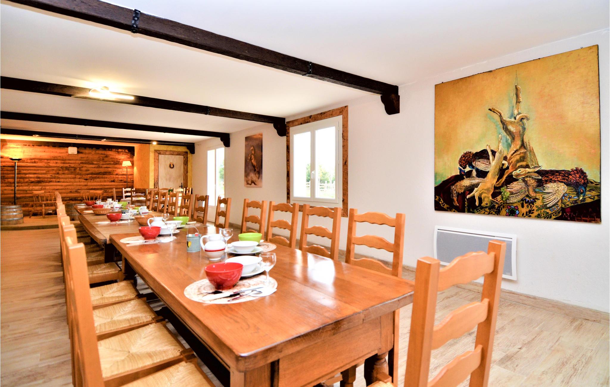 Oplev dette ekstraordinære hus, der komfortabelt kan rumme op til 22 personer. En stor stue venter på dig til sociale sammenkomster med familie eller venner. I kan nyde to køkkener, hvoraf det ene, professionelt og fuldt udstyret, giver jer mulighed for at tilberede overdådige måltider. I finder i alt otte luksuriøse værelser, der er smagfuldt indrettet, inklusive en stor otte-sengs sovesal, der vil glæde børn. Til jeres komfort er syv af soveværelserne udstyret med et tv og har deres eget brusebad. Der er heste på ejendommen, så her er der også noget, som vil begejstre børnene.