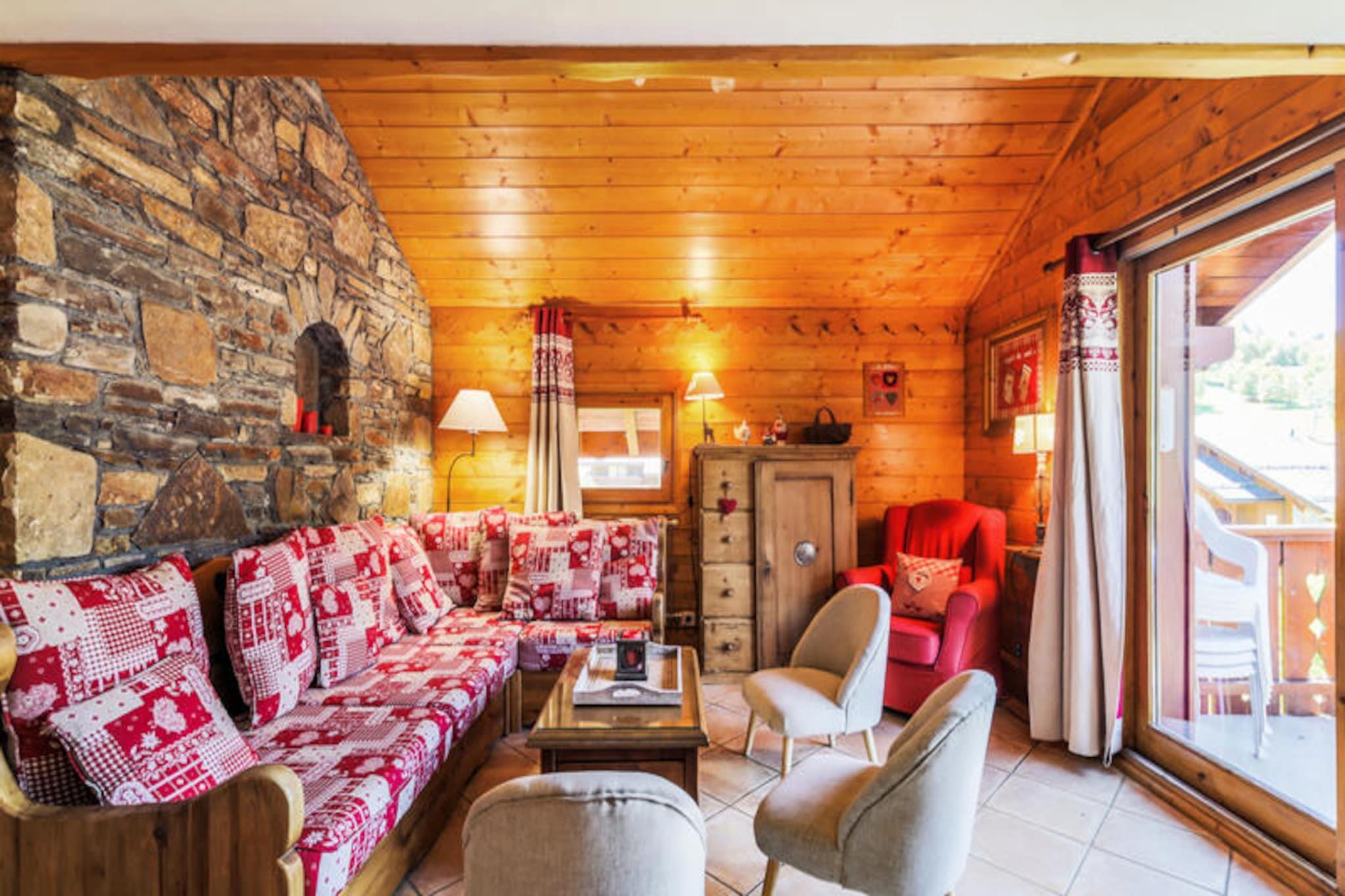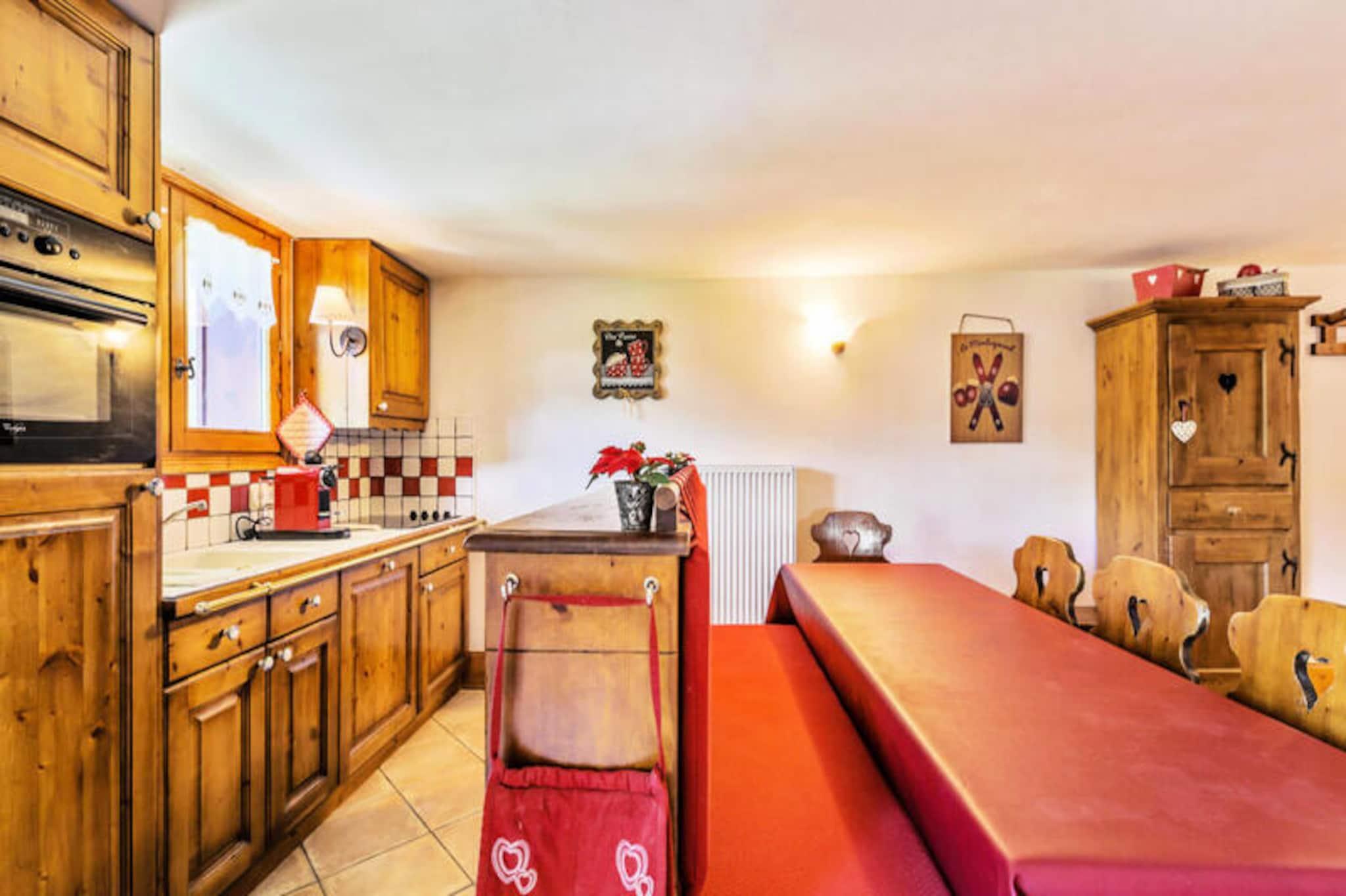 Denne rummelige lejlighed i chalet-stil i de franske alper kan rumme op til 9 gæster med tre soveværelser, heraf to med dobbeltsenge og et med fire enkeltkøjesenge. Der er også en mezzanin med en queen-size seng. Opholdsstuen har sofa, spisebord og tre badeværelser. Lejligheden har en privat balkon med en fantastisk udsigt over bjergene og er kæledyrsvenlig (ekstra gebyr), hvilket sikrer et behageligt tilflugtssted for familier eller grupper. Ideelt beliggende nær Les 3 Vallées-skiløjperne, tilbyder lejligheden nem adgang til 600 km skiløb. Ikke-skiløbere kan nyde snesko, hundeslædekørsel og udforske nærliggende caféer, restauranter og markeder. Boligen tilbyder wellness-faciliteter, herunder en indendørs opvarmet pool, sauna og fitnesscenter, perfekt til at slappe af efter udendørs aktiviteter. Lejligheden har et fuldt udstyret åbent køkken, moderne apparater og rummelige badeværelser med badekar og bruser. Separate toiletfaciliteter tilføjer bekvemmelighed. Yderligere faciliteter omfatter et skiskab, overdækket parkering (afhængigt af tilgængelighed) og Wi-Fi (mod et tillæg). Denne ejendom tilbyder de ideelle rammer for et mindeværdigt ophold i hjertet af Alperne.