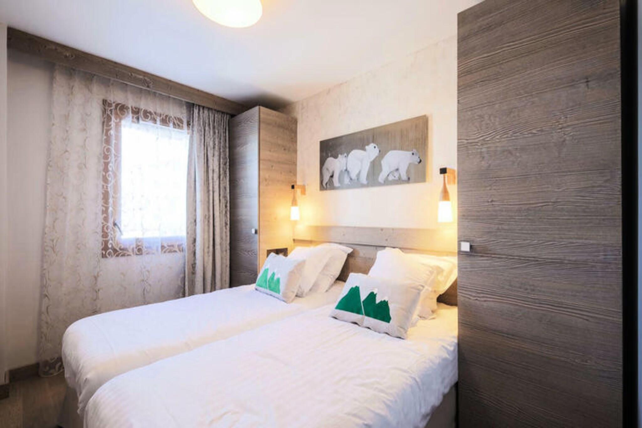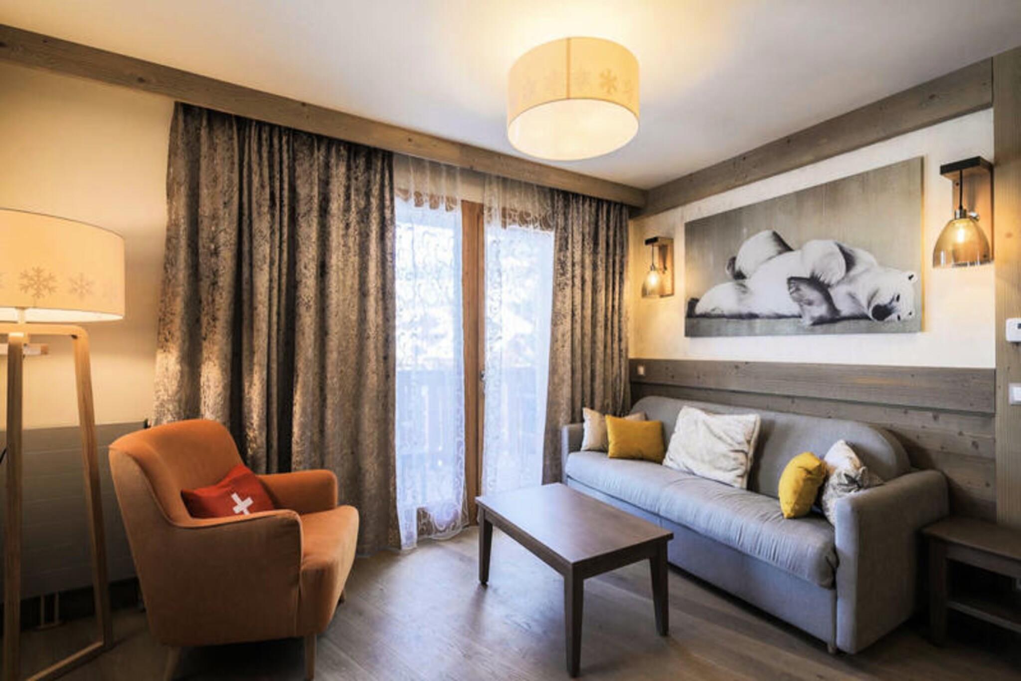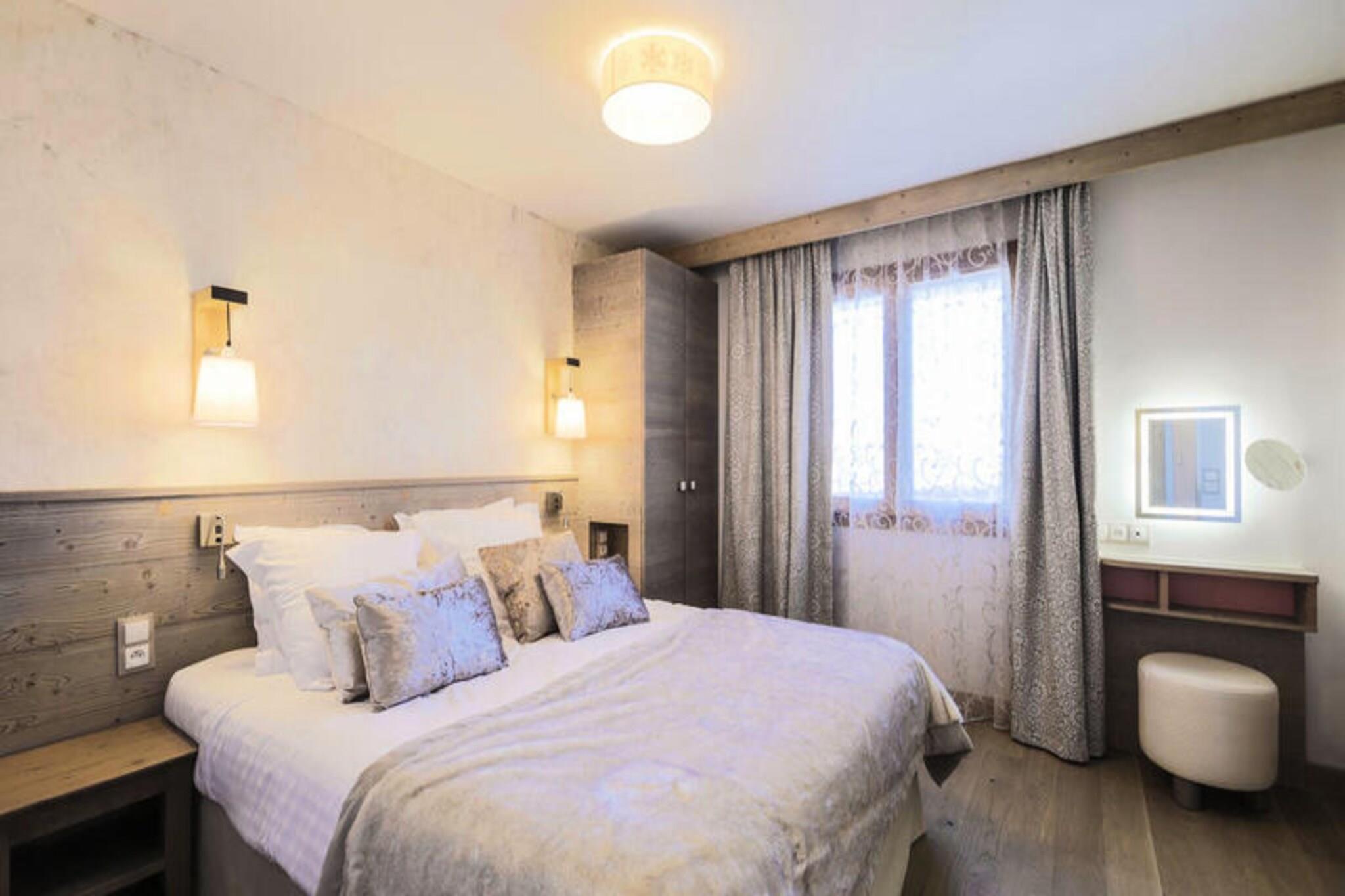 Denne luksuri?se femstjernede lejlighed er beliggende i hjertet af M?ribel og tilbyder en stilfuld og komfortabel base for din skiferie. Lejligheden p? 60 m² har 2 sovev?relser (1 dobbeltseng, 2 enkeltsenge), 2 badev?relser, et separat toilet og en rummelig stue med en sovesofa til 2. Lejligheden er k?ledyrsvenlig (ekstra gebyrer) og en babys?t er tilg?ngeligt efter anmodning. Senget?j og h?ndkl?der er inkluderet, samt slutreng?ring (ekskl. k?kken). Overd?kket parkering er til r?dighed, hvilket sikrer bekvemmelighed under dit ophold. Ejendommen er ideelt beliggende kun 250 meter fra den f?rste bl? pist, der tilbyder nem adgang til det verdenskendte Three Valleys-skiomr?de. G?sterne kan udforske den n?rliggende M?ribels pulserende landsby med butikker, caf?er og restauranter, der tilbyder en r?kke alpine oplevelser. Derudover er der talrige vandre- og skimuligheder, hvilket g?r dette til en fremragende destination for b?de vintersportsentusiaster og naturelskere. Lejligheden har et fuldt udstyret k?kken, perfekt til at tilberede m?ltider efter en dag p? pisterne. Slap af og slap af i boligens luksuri?se faciliteter, herunder en indend?rs swimmingpool, sauna, hammam og udend?rs spabad. For yderligere afslapning kan g?sterne nyde Deep Nature Spa med fordelagtige priser. Boligen har ogs? en 24-timers reception og bar, hvilket sikrer en f?rsteklasses ferieoplevelse.