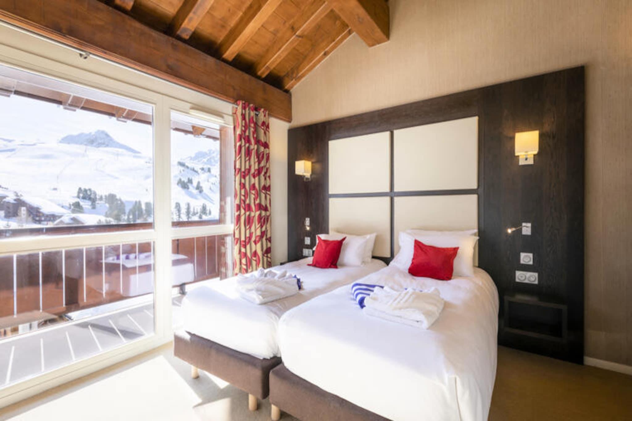 Højt over den fredfyldte Tarentaise-dal inviterer MMV Les Deux Domaines**** Village Club ved indgangen til Belle Plagne dig til at fordybe dig i charmen af ??et traditionelt Savoyard-chaletliv. Den betagende udsigt over de omkringliggende bjerge sætter scenen for et uforglemmeligt alpint tilflugtssted, hvor hvert øjeblik føles som en hyldest til naturens skønhed og ro. Uanset om du er her for at grave dig gennem uberørte skråninger eller blot slappe af blandt de snedækkede tinder, tilbyder denne destination en perfekt blanding af eventyr og afslapning. \n\nVillage Club er designet med komfort og bekvemmelighed i tankerne og kan prale af en række faciliteter for at sikre et mindeværdigt ophold. Slap af i wellness-området, komplet med saunaer og dampbade, eller tag en dukkert i den opvarmede indendørs pool. Familier vil sætte pris på de dedikerede børneklubber, der henvender sig til børn fra 18 måneder til 17 år, og som tilbyder engagerende aktiviteter og endda ledsagelse til skilektioner. Værelserne er omhyggeligt udstyret med to enkeltsenge, en enkeltseng, en privat balkon og moderne bekvemmeligheder som WiFi, hvilket sikrer en hyggelig og forbundet oplevelse. \n\nBeliggenheden er enhver skiløbers drøm med adgang til det vidtstrakte skiområde La Plagne med 425 km pister, der snor sig gennem forskellige landskaber, fra Montchavin-skoven til den majestætiske Bellecôte-gletsjer. Ud over skiløb tilbyder Belle Plagne en pulserende landsbyatmosfære med restauranter, shopping og afterski-muligheder, der fuldender din alpine oplevelse. \n\nUanset om du søger spændende eventyr eller rolige øjeblikke med afslapning, er MMV Les Deux Domaines**** Village Club den perfekte base for din bjergferie. Lad Alpernes magi fange dine sanser og skabe minder, du vil værdsætte for livet.