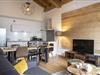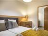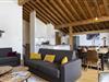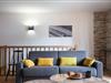 Stue(dobbeltsovesofa(140 x 200 cm), Fjernsyn(fladskærm), sofahjørne), åbent køkken(kogeplade(glaskeramisk), elkedel, brødrister, kaffemaskine, ovn, mikrobølgeovn, opvaskemaskine , ), Soveværelse med badeværelse(dobbeltseng(160 x 200 cm), bruser, toilet), Hytte(køjeseng(90 x 190 cm)), badeværelse(bruser), toilet(toilet), balkon, Mountain view