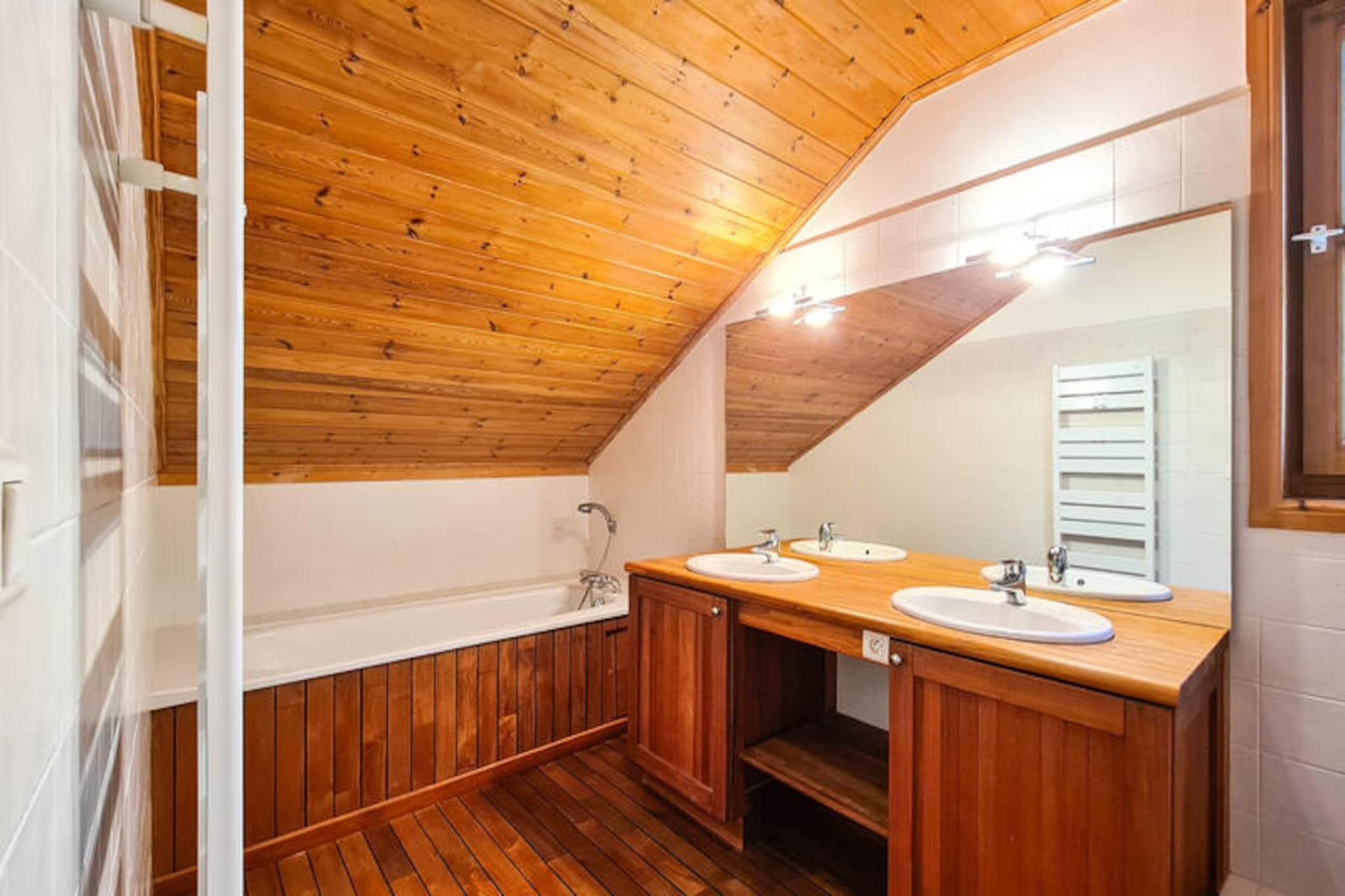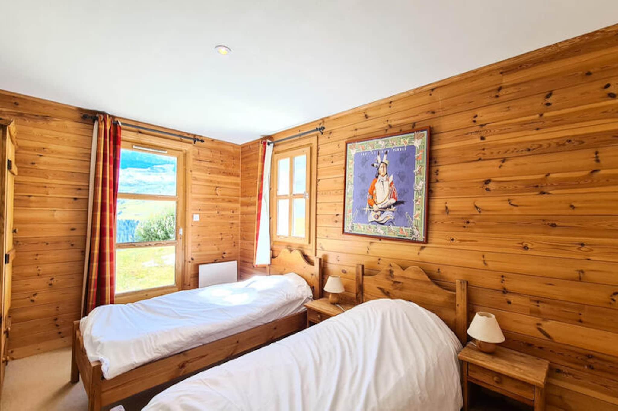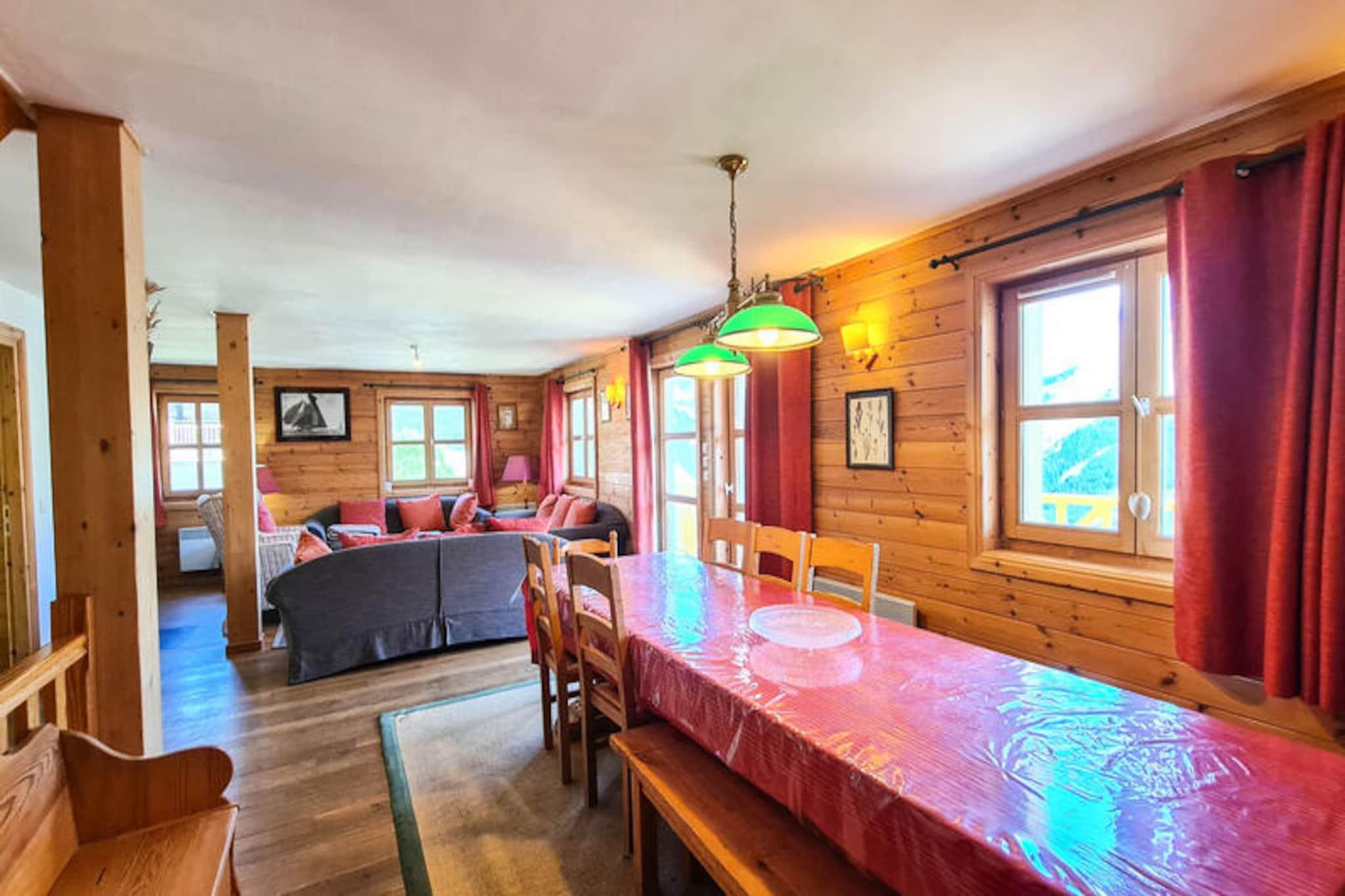 I hjertet af det maleriske Hameau de Flaine tilbyder dette fantastiske chalet i skandinavisk stil en perfekt blanding af alpin charme og moderne luksus. Omgivet af betagende udsigt over bjergene og kun en kort afstand fra de blå pister, er dette rummelige tilflugtssted et ideelt paradis for både vintersportsentusiaster og naturelskere. Den gratis skibus sikrer nem adgang til Flaine Forêt skiskole og lifter, hvilket gør det til en bekvem base for dine alpine eventyr. Chaleten strækker sig over imponerende 200 m² og har komfortabel plads til op til 12 gæster fordelt på seks smukt indrettede soveværelser. Den varme, indbydende opholdsstue har en hyggelig pejs, mens den private sauna giver den ultimative afslapning efter en dag på pisterne. Det åbne køkken er fuldt udstyret med moderne apparater, herunder fryser, ovn, opvaskemaskine og mikrobølgeovn, hvilket sikrer, at du har alt, hvad du behøver for et behageligt ophold. Med to badeværelser, fire brusebade og fem toiletter er chaleten omhyggeligt designet til at imødekomme større grupper. Yderligere faciliteter inkluderer et fladskærms-tv, dvd-afspiller, vaskemaskine, tørretumbler og dyner til alle senge. Den sydvendte terrasse er perfekt til at nyde solen og de rolige alpine omgivelser. I sommermånederne kan gæster, der bor seks nætter eller mere, nyde den eksklusive