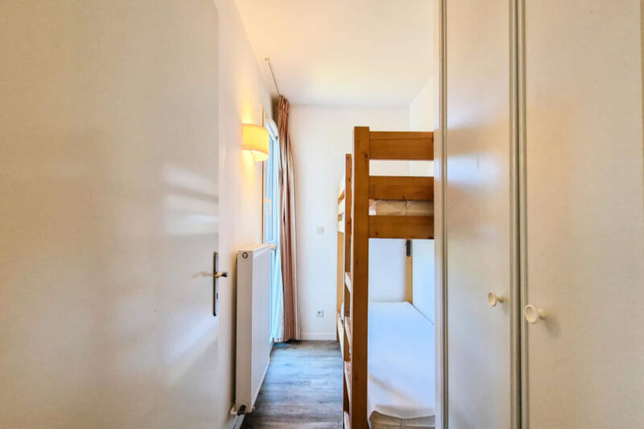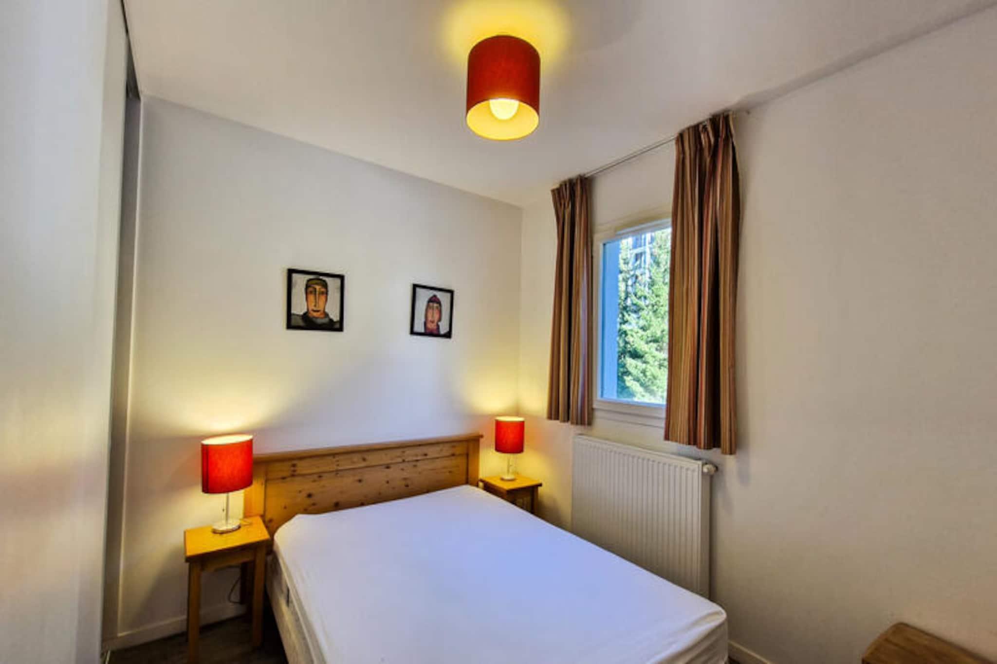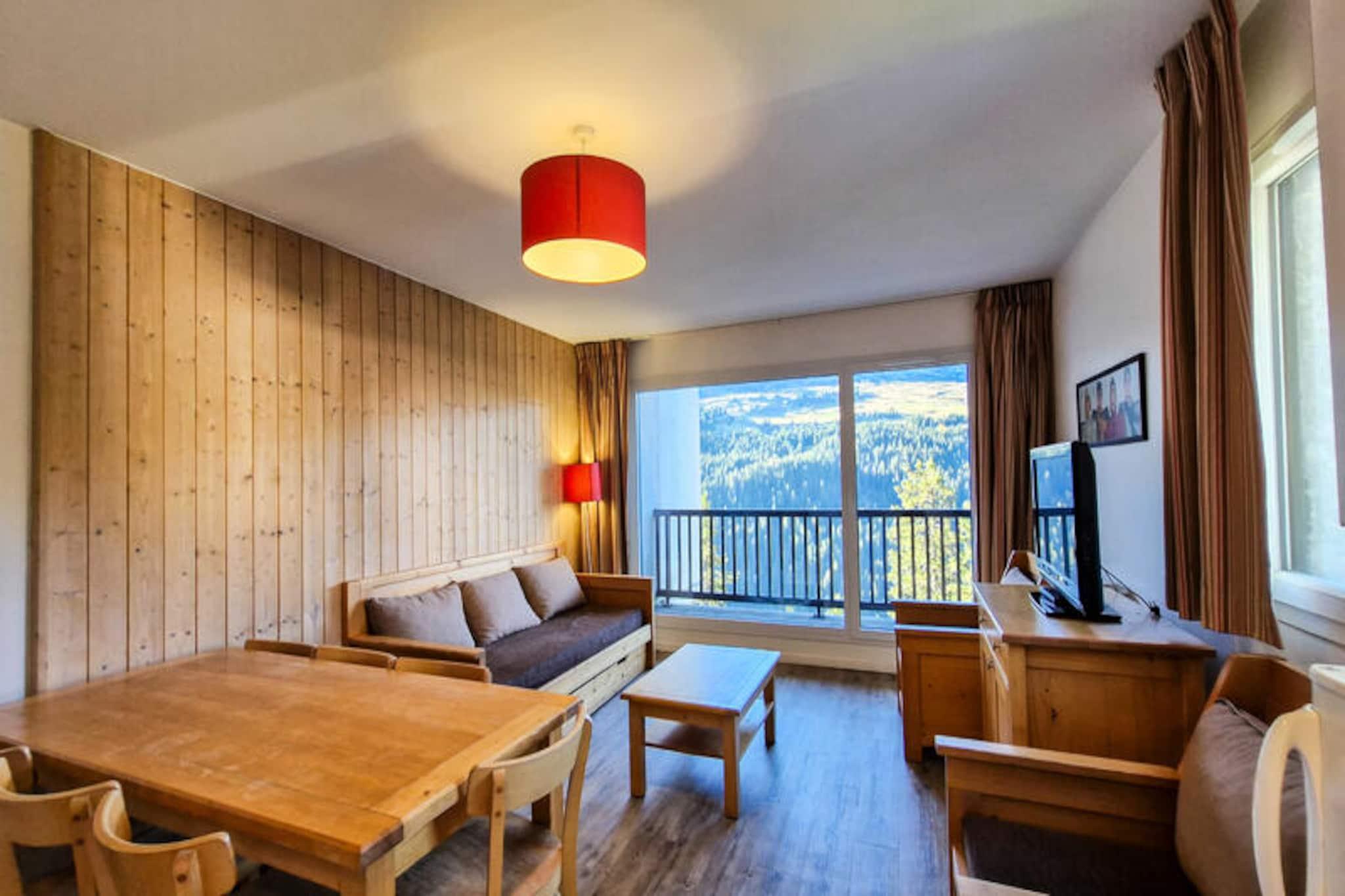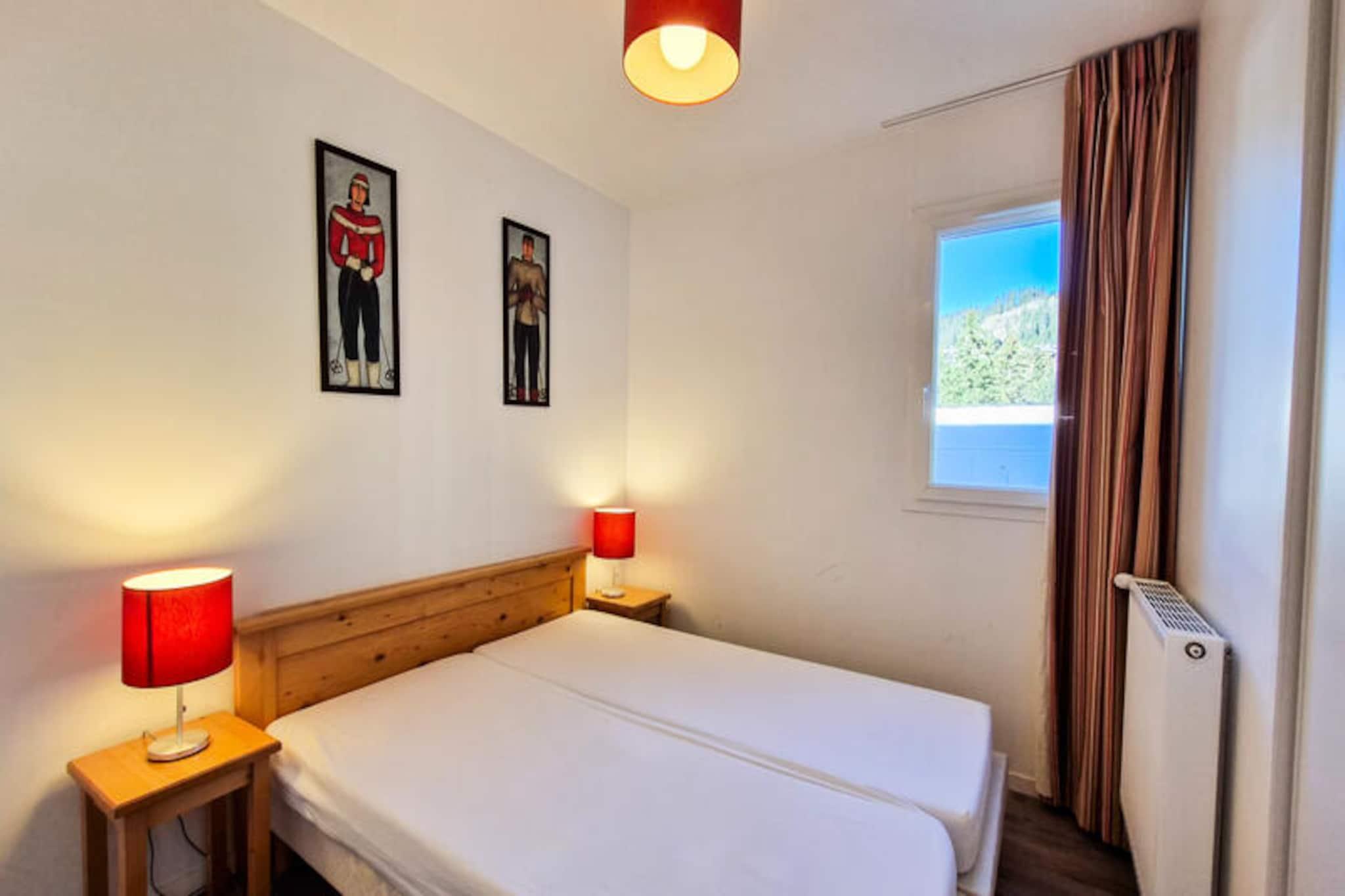 I det rolige hjerte af Flaine Forêt tilbyder denne charmerende treværelseslejlighed en perfekt blanding af alpin komfort og moderne bekvemmeligheder. Kun 500 meter fra pisterne og skilifterne og blot 150 meter fra det travle indkøbscenter sikrer denne bolig, at du aldrig er langt fra begivenhedernes centrum. Den gratis skibus stopper lige foran, hvilket gør dine bjergeventyr ubesværede og stressfri. Med en sydvendt balkon kan du nyde solen og beundre det betagende alpine landskab fra dit eget hjem. \n\nDenne 60 m² store lejlighed er designet til at rumme op til otte gæster og er omhyggeligt indrettet til at give både komfort og funktionalitet. Stuen har en enkelt sovesofa med udtræksseng, mens de to soveværelser tilbyder en blanding af enkelt- og dobbeltsenge. En hyggelig hytte med køjesenge tilføjer et legende præg, selvom den ikke er egnet til børn under seks år. Det åbne køkken er fuldt udstyret med keramisk kogeplade, multifunktionsovn, køleskab, mikrobølgeovn og opvaskemaskine, hvilket gør det nemt at tilberede solide måltider efter en dag på pisterne. Trægulve og flisebelagte områder tilføjer et strejf af elegance, mens moderne bekvemmeligheder som et fladskærms-tv med kabelkanaler sikrer afslapning.\n\nResidensen kan også prale af praktiske funktioner såsom et skirum, vaskeri på stedet og valgfri overdækket parkering. Om sommeren modtager gæster, der bor seks nætter eller mere, det eksklusive Flaine Summer Pass, der giver adgang til en række aktiviteter. Uanset om du er her for vintersport eller sommervandreture, er beliggenheden ideel til at udforske de franske alpers naturlige skønhed.\n\nVælg denne lejlighed for dens uovertrufne beliggenhed, gennemtænkte faciliteter og løftet om uforglemmelige alpine minder. Uanset om du rejser med familie eller venner, er dette den perfekte base for din bjergferie.