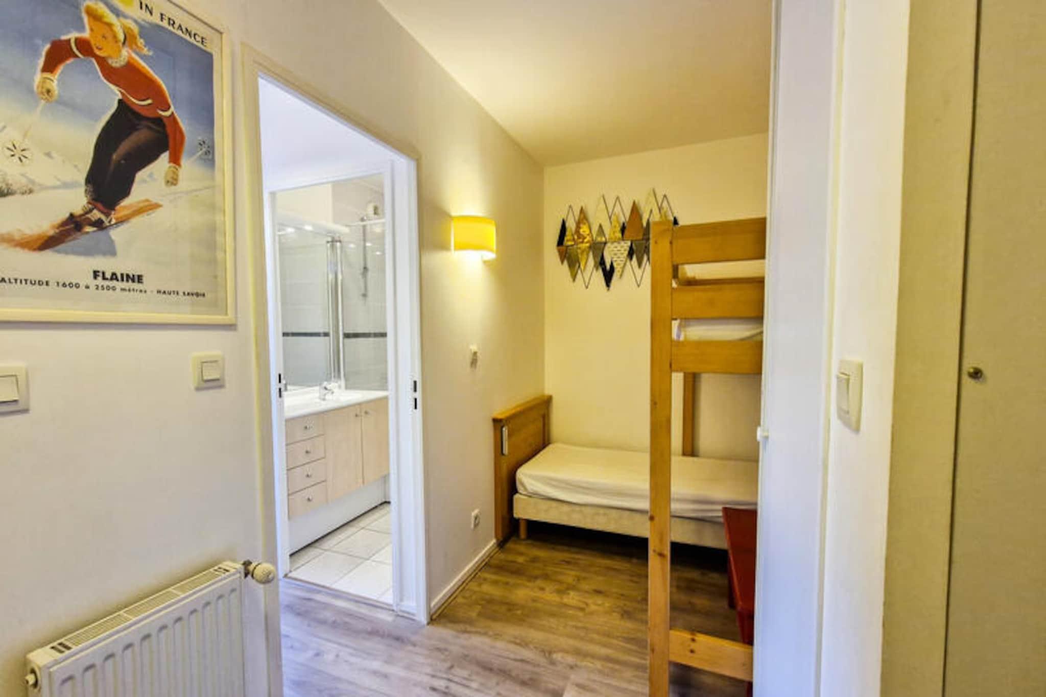 I den fredfyldte alpelandsby Flaine Forêt tilbyder denne charmerende bolig en perfekt blanding af komfort og bekvemmelighed til din bjergferie. Kun 500 meter fra pisterne og skilifterne og blot 150 meter fra indkøbscentret er den ideelt placeret til både eventyr og afslapning. En gratis skibus stopper lige udenfor, hvilket gør det nemt at udforske området. Uanset om du er her for vintersport eller sommeraktiviteter, er denne lejlighed din port til de fantastiske landskaber i de franske alper. Denne hyggelige 2-værelses lejlighed, der er designet til at rumme op til seks gæster, har en sydvendt hytte og en balkon i stueetagen, der inviterer dig til at nyde solskinnet og udsigten over bjergene. Stuen har en enkelt sovesofa med en udtræksseng, mens soveværelset har en komfortabel dobbeltseng. Hytten, der er udstyret med køjesenge, er perfekt til ældre børn eller venner. Det åbne køkken er fuldt udstyret med moderne apparater, herunder induktionskogeplade, køleskab, multifunktionsovn og opvaskemaskine, hvilket gør madlavning til en leg. Yderligere faciliteter inkluderer et fladskærms-tv med kabelkanaler, et badeværelse med badekar, et separat brusebad og et skirum for din bekvemmelighed. Ud over lejligheden tilbyder Flaine Forêt et væld af aktiviteter, der vil berige dit ophold. Om vinteren er pisterne kun en kort gåtur eller bustur væk, mens sommeren bringer den ekstra bonus med Flaine Summer Pass, der giver adgang til en række udendørs eventyr. Det nærliggende indkøbscenter sikrer, at du har alt, hvad du behøver, fra dagligvarer til spisemuligheder. For dem, der rejser i bil, er overdækkede parkeringspladser tilgængelige efter reservation. Uanset om du søger spændende skidage, rolige vandreture eller blot et hyggeligt tilflugtssted i bjergene, er denne bolig den perfekte base for uforglemmelige minder i hjertet af de franske alper.