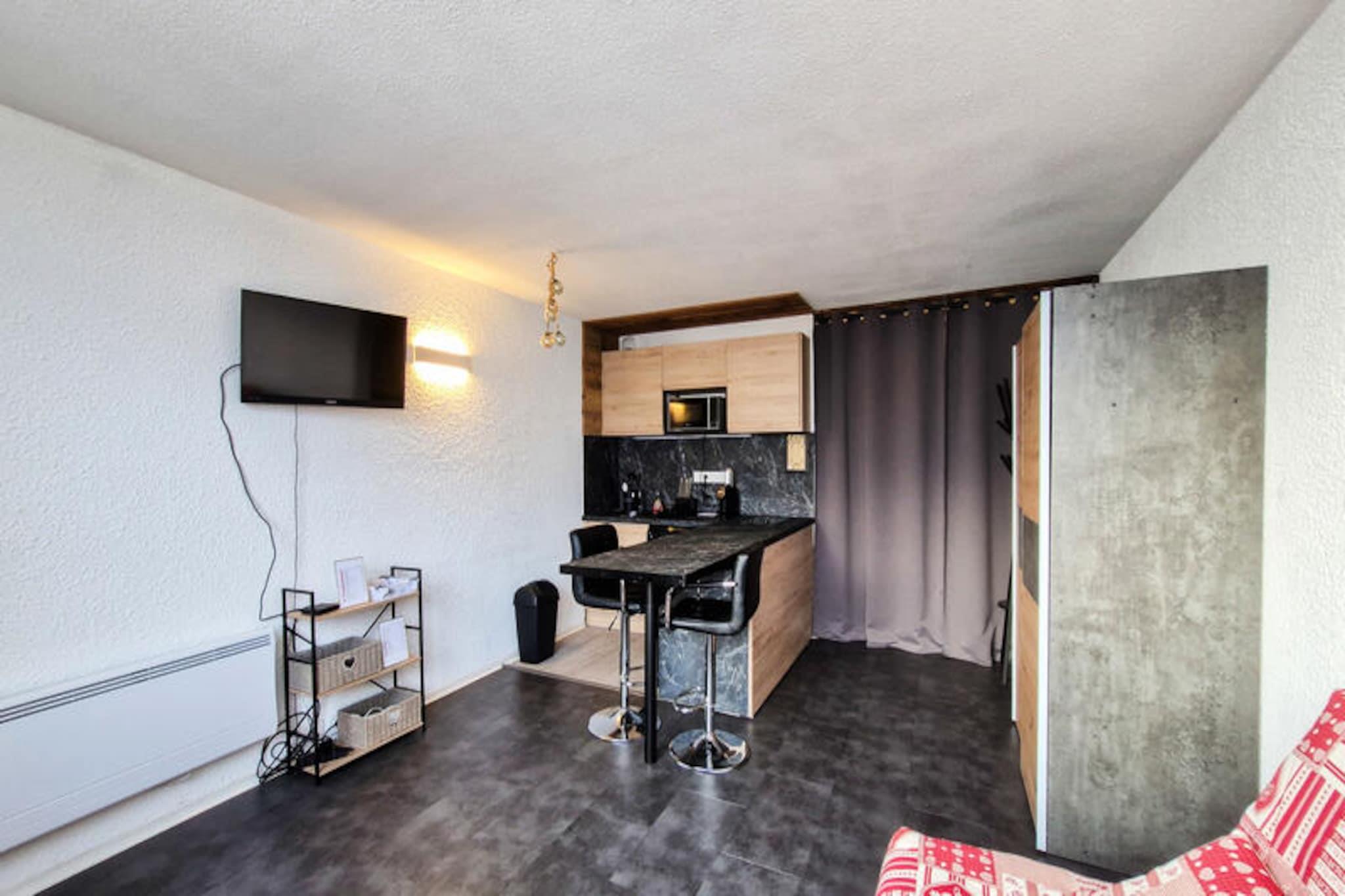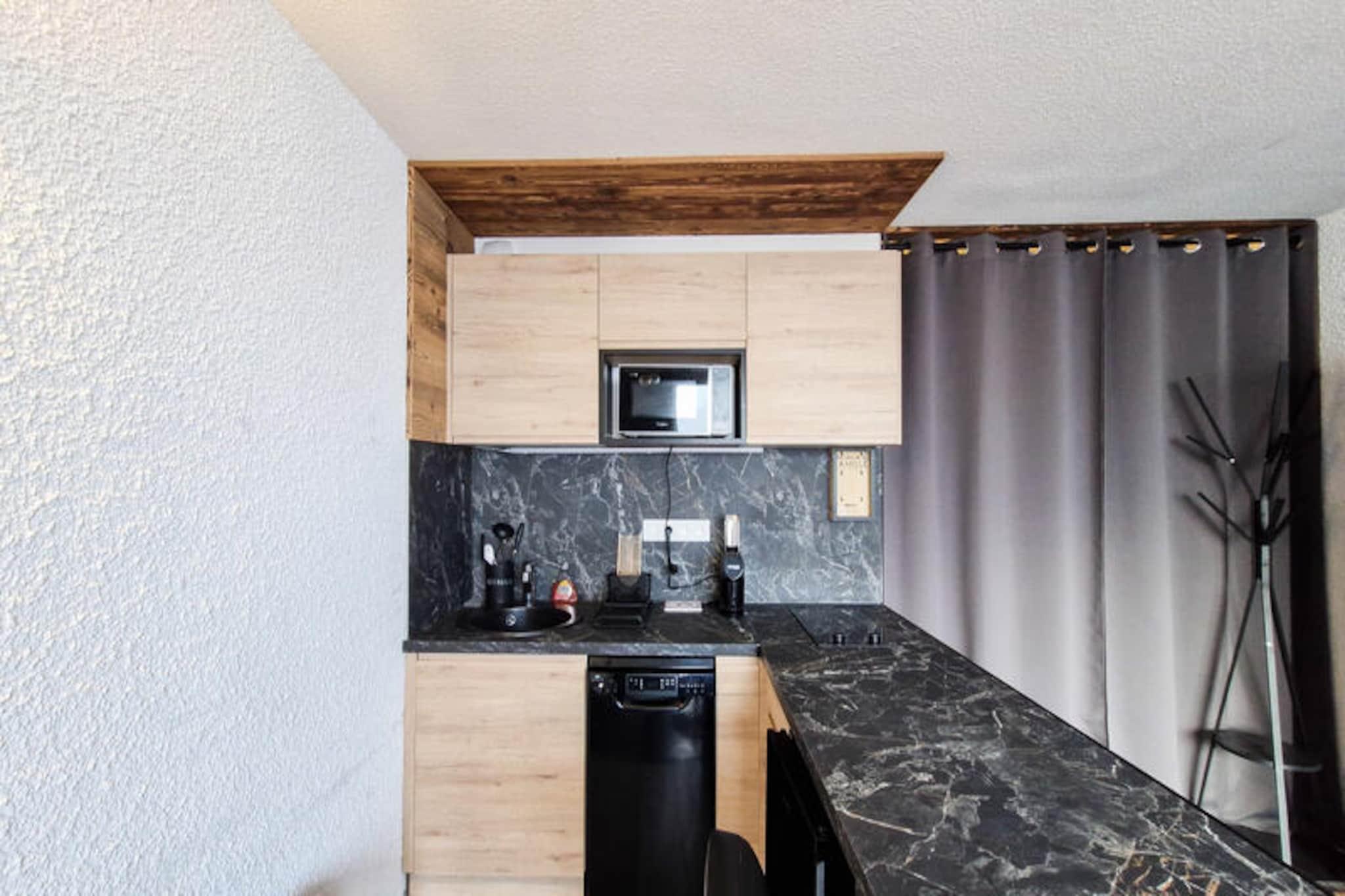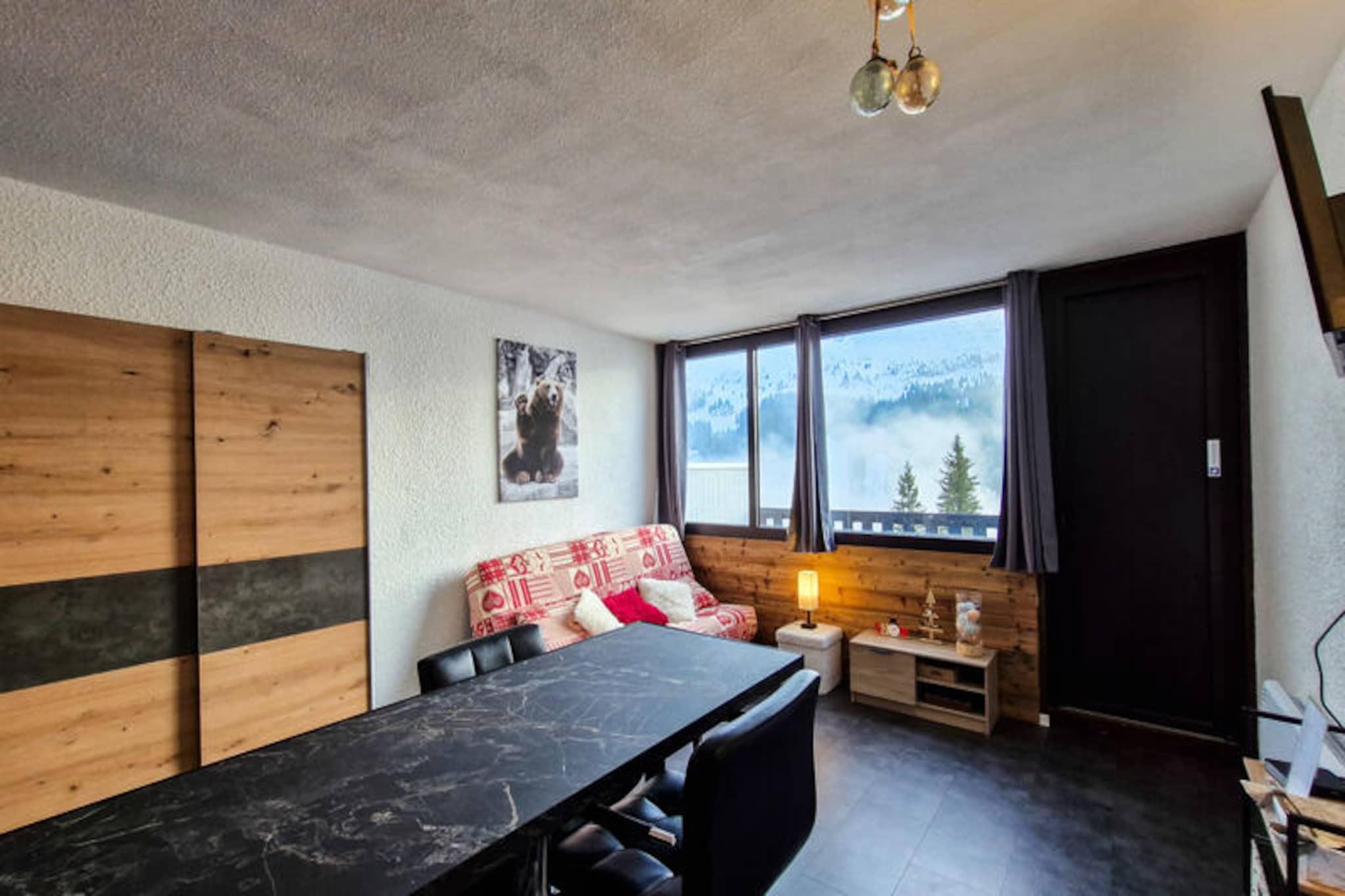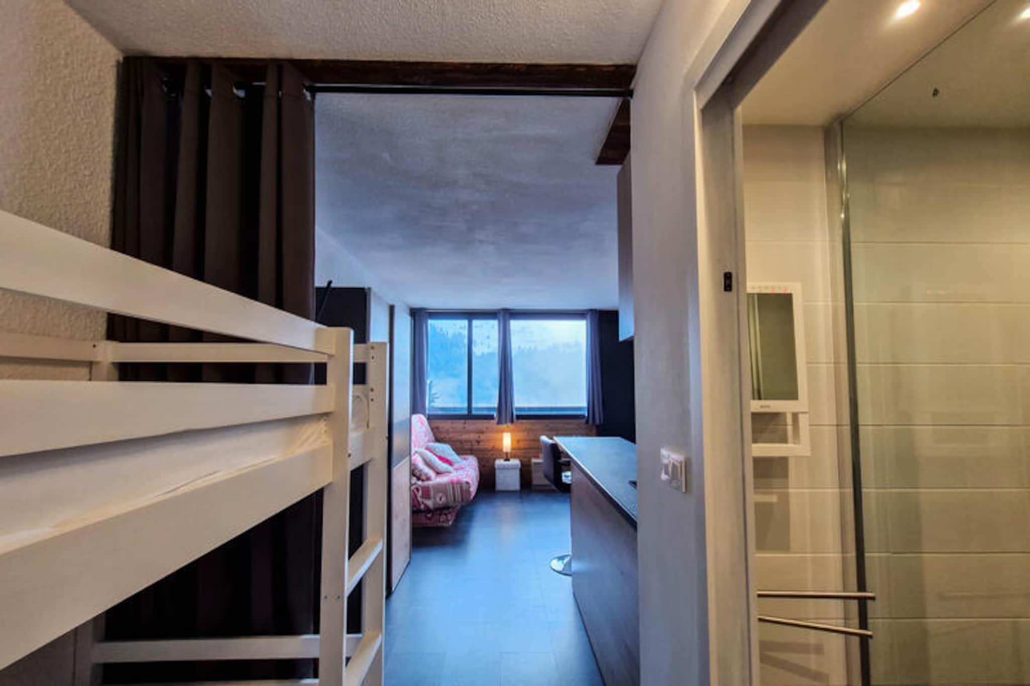 I det fredfyldte Flaine Forêt-distrikt inviterer dette charmerende sydvendte studie dig til at opleve de franske alpers skønhed. Beliggende kun 250 meter fra pisterne og skiskolens mødesteder, tilbyder det den perfekte balance mellem bekvemmelighed og ro. Uanset om du er her for at grave dig gennem uberørt sne om vinteren eller udforske de frodige bjergstier om sommeren, er dette hyggelige tilflugtssted din port til uforglemmelige alpine eventyr. Den sydvendte balkon tilbyder et solrigt fristed, hvor du kan slappe af og nyde den betagende udsigt over de omkringliggende tinder. Studiet er omhyggeligt designet til op til fire gæster og har en komfortabel stue med en dobbelt sovesofa og to køjesenge, adskilt af et forhæng for ekstra privatliv. Det fuldt renoverede interiør inkluderer et moderne køkken udstyret med køleskab, keramiske kogeplader, opvaskemaskine, mikrobølgeovn og kapselkaffemaskine, hvilket sikrer, at du har alt, hvad du behøver for et behageligt ophold. Et brusebad med toilet øger bekvemmeligheden, mens skiboksen gør det nemt at opbevare dit udstyr efter en dag på pisterne. Bemærk venligst, at den øverste køje ikke er egnet til børn under seks år, og sengelinned og håndklæder er ikke inkluderet. Ud over ejendommen finder du butikker og essentielle faciliteter kun en kort gåtur væk, hvilket gør det nemt at fylde op med forsyninger eller nyde et måltid ude. Om sommeren er den inkluderede