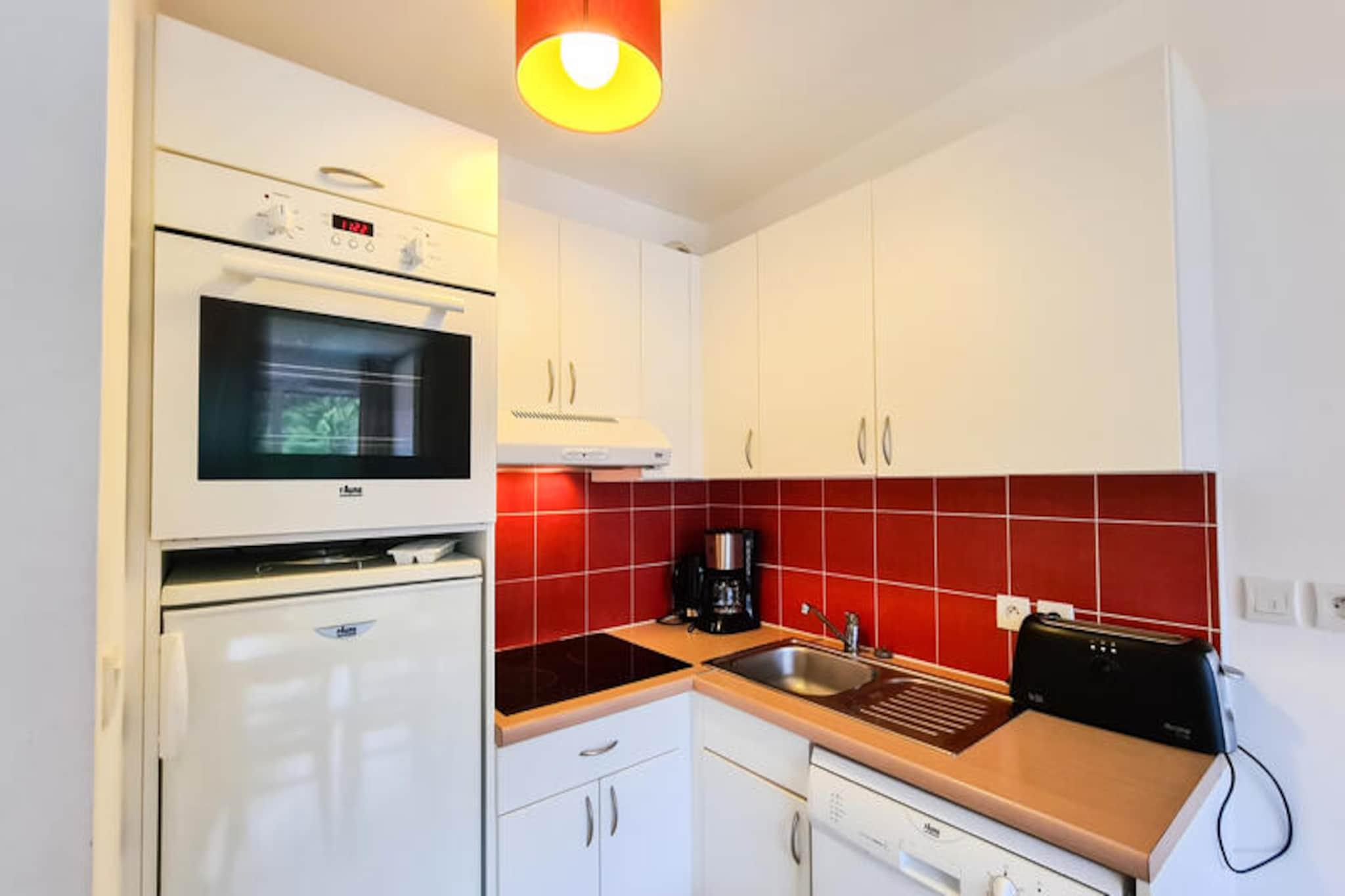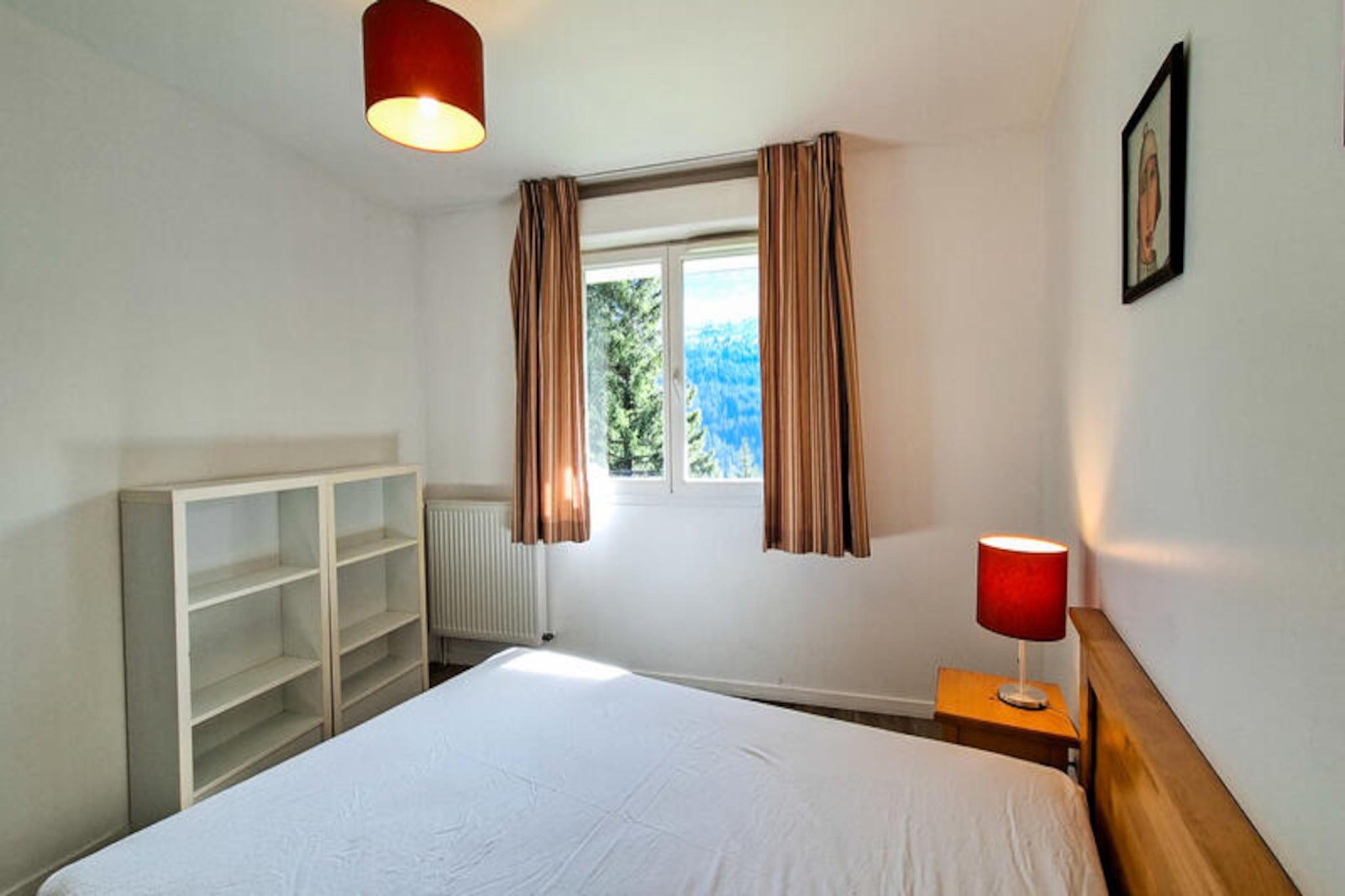 I det rolige hjerte af Flaine Forêt tilbyder denne charmerende lejlighed i haveplan et dejligt alpint tilflugtssted med en sydvendt balkon, der inviterer dig til at nyde udsigten over bjergene og den friske luft. Uanset om du er her for de snedækkede pister eller de pulserende sommeraktiviteter, er denne bolig perfekt placeret kun 500 meter fra skilifterne og 150 meter fra indkøbscentret. Med den gratis skibus, der stopper lige foran, er bekvemmeligheden lige ved døren, hvilket gør hvert øjeblik af din ferie ubesværet og behageligt. \n\nLejligheden er designet til op til seks gæster og strækker sig over 54 kvadratmeter og kan prale af en hyggelig, men funktionel indretning. Stuen har en enkelt sovesofa og en udtræksseng, mens to soveværelser tilbyder afslappende plads - en dobbeltseng i det ene og to enkeltsenge i det andet. Det åbne køkken er udstyret med moderne bekvemmeligheder, herunder en keramisk kogeplade, multifunktionsovn, køleskab og opvaskemaskine, så du nemt kan tilberede måltider. Yderligere bekvemmeligheder inkluderer et fladskærms-tv med kabelkanaler, et badeværelse med badekar, et brusebad med toilet og et separat toilet. Med parketgulv og flisebelagte områder kombinerer lejligheden varme og praktisk anvendelighed. \n\nUd over boligen tilbyder Flaine et væld af aktiviteter og attraktioner. Om vinteren er pisterne kun få minutter væk, mens sommeren bringer "Flaine Summer Pass", der giver adgang til adskillige eventyr ved ophold på seks nætter eller mere. Det nærliggende indkøbscenter imødekommer alle dine behov, og der er overdækkede parkeringspladser til rådighed for ekstra bekvemmelighed. Uanset om du står på ski, vandrer eller bare slapper af, fungerer denne lejlighed som den perfekte base for at udforske de franske alpers skønhed. \n\nVælg dette indbydende hjem til en ferie fyldt med komfort, eventyr og uforglemmelig alpin charme.