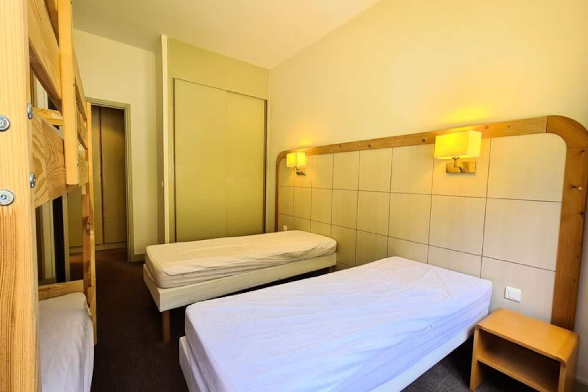 Højt over Flaines fredfyldte alpine landskaber tilbyder denne charmerende lejlighed i Flaine Forêt-distriktet et hyggeligt tilflugtssted for dem, der søger eventyr og ro. Med pisterne og skiskolens mødesteder kun 50 meter væk, begynder din bjergflugt i det øjeblik, du træder udenfor. Boligen er bekvemt tæt på butikker, hvilket sikrer, at alt hvad du behøver er inden for rækkevidde, mens den betagende udsigt over de omkringliggende tinder sætter scenen for uforglemmelige øjeblikke. Denne komfortlejlighed på 42,80 m², der ligger på 5. sal, er omhyggeligt designet til at rumme op til seks gæster. Soveværelset har to enkeltsenge og en køjesenge, mens stuen har en dobbelt sovesofa for ekstra fleksibilitet. Et fladskærms-tv, et badeværelse med badekar og et separat toilet giver moderne bekvemmeligheder, mens tekøkkenet er udstyret med elektrisk kogeplade, opvaskemaskine og mikrobølgeovn til nem madlavning. Skibokse og dyner sikrer, at dit ophold er både praktisk og komfortabelt. Bemærk venligst, at sengelinned og håndklæder ikke er inkluderet, og at lejligheden er røgfri. Flaine er et paradis for friluftsentusiaster, der tilbyder skiløb om vinteren og et væld af aktiviteter i sommersæsonen. Gæster, der bor seks nætter eller mere om sommeren, får \