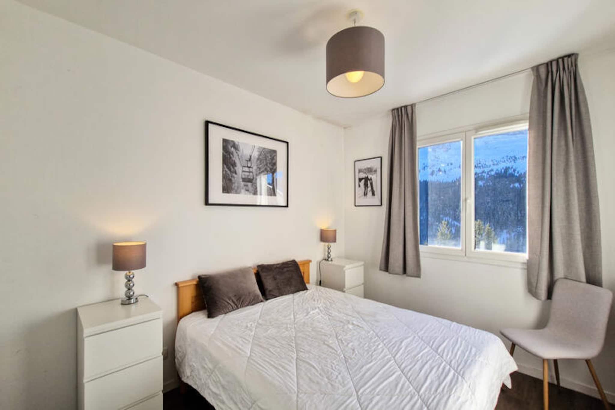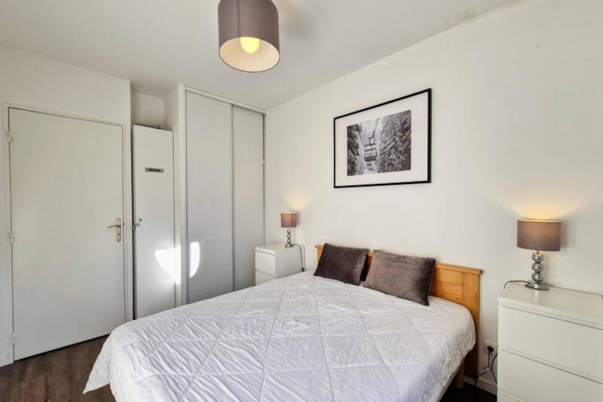 I hjertet af Flaine Forêt tilbyder denne charmerende sydvendte lejlighed et hyggeligt tilflugtssted for op til fire gæster, der blander moderne komfort med alpin charme. Beliggende på 4. sal i en bolig, kun 500 meter fra pisterne og skilifterne, er det den perfekte base for en uforglemmelig bjergferie. Den gratis skibus stopper bekvemt lige udenfor, hvilket sikrer nem adgang til pisterne og de omkringliggende attraktioner. Efter en dag på pisterne kan du slappe af på din private balkon og nyde den fredfyldte udsigt over bjergene badet i sollys. Indenfor har lejligheden en lys og indbydende stue med en enkelt sovesofa og en udtræksseng, perfekt til afslappende aftener. Det rummelige soveværelse kan prale af en komfortabel dobbeltseng (160x200) med bløde dyner til en god nats søvn. Det åbne køkken er udstyret med keramiske kogeplader, en multifunktionsovn, mikrobølgeovn og opvaskemaskine, hvilket gør madlavning til en leg. Et moderne badeværelse med badekar og toilet øger bekvemmeligheden, mens parketgulv og flisebelagte områder giver et varmt og stilfuldt præg. Yderligere faciliteter inkluderer et smart-tv, skiboks og vaskeri på stedet. Residensens førsteklasses beliggenhed placerer dig kun 150 meter fra indkøbscenteret, hvor du finder et udvalg af butikker, restauranter og tjenester. Om sommeren kan du benytte dig af det inkluderede Flaine Summer Pass ved ophold på seks nætter eller mere, hvilket giver adgang til en række aktiviteter såsom vandreture, mountainbiking og meget mere. Der tilbydes valgfri overdækket parkering og Wi-Fi for ekstra bekvemmelighed. Uanset om du besøger lejligheden for spændende vintersport eller rolige sommerferier, tilbyder den den perfekte blanding af komfort, tilgængelighed og alpin charme. Gør den til dit hjem væk fra hjemmet i de fantastiske franske alper.