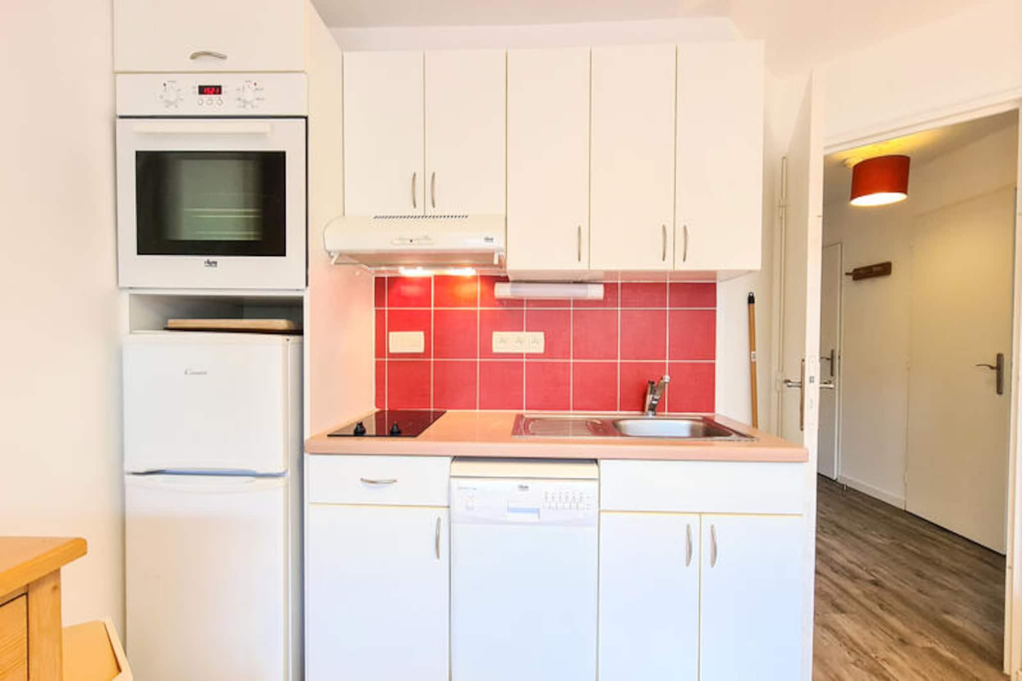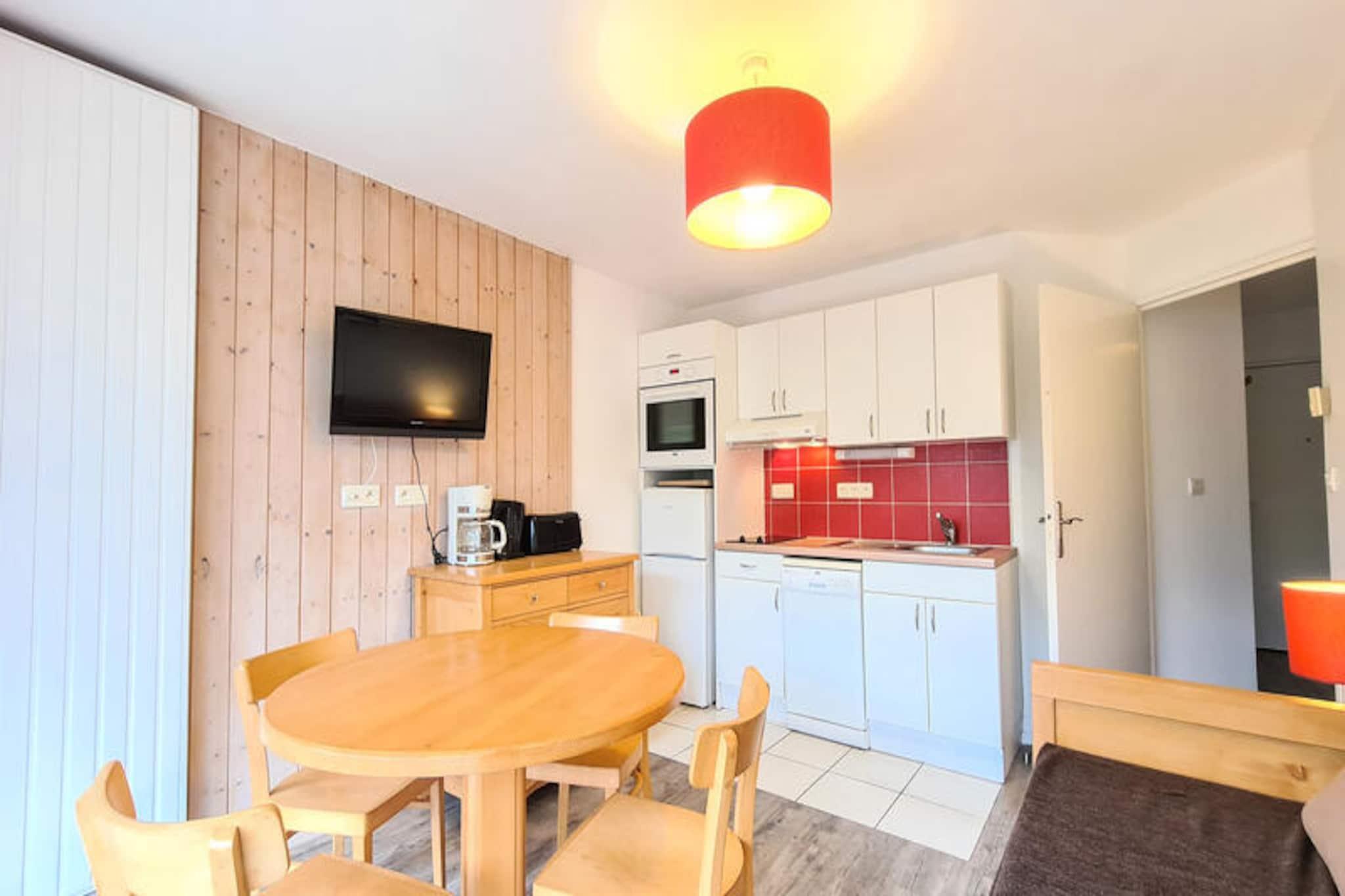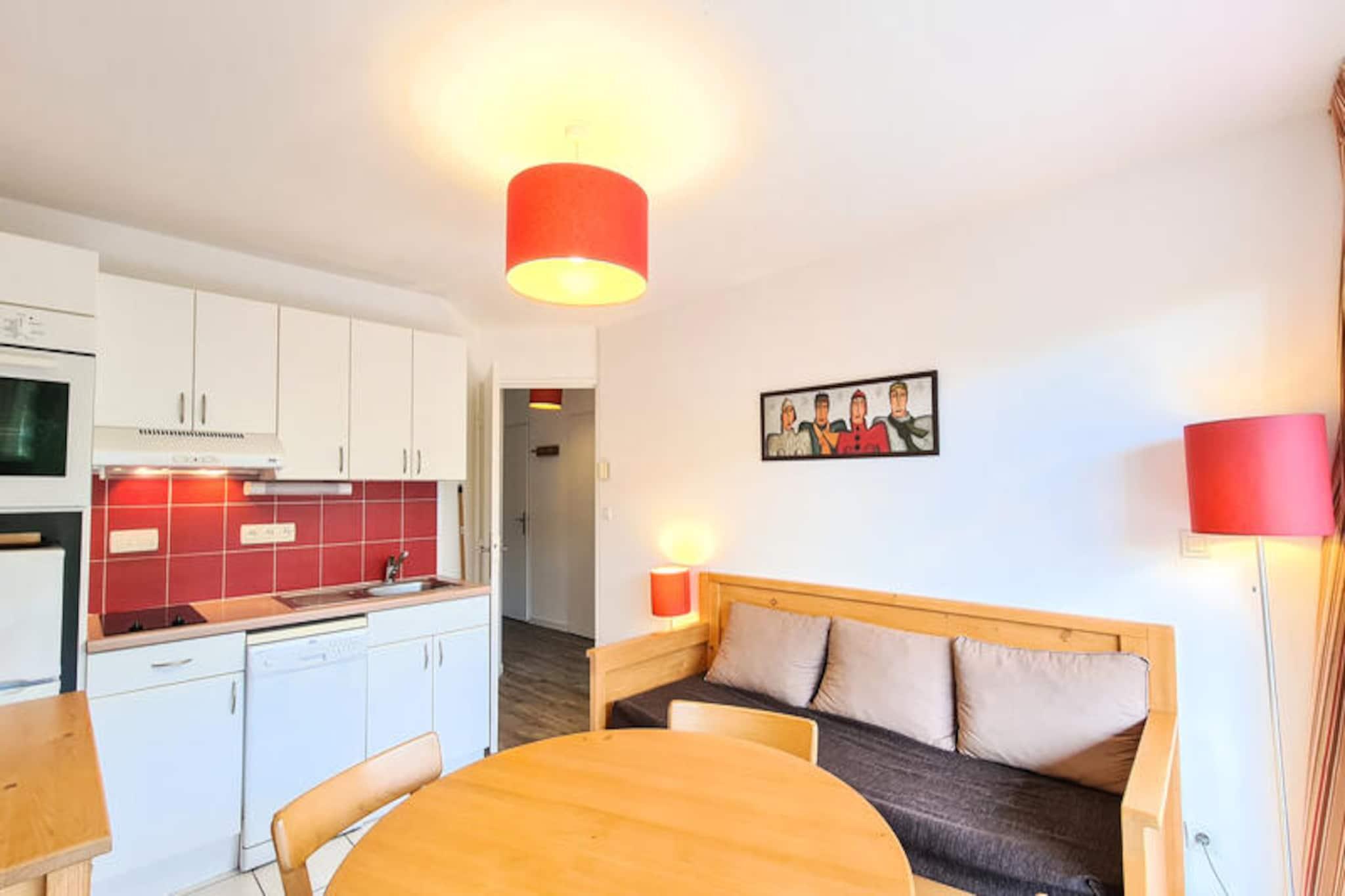 Højt over Flaine Forêts fredfyldte landskaber tilbyder denne charmerende lejlighed et hyggeligt alpint tilflugtssted for familier og små grupper. Med sin sydvendte balkon kan du nyde solen, mens du nyder den uforstyrrede udsigt over de omkringliggende tinder, hvilket skaber den perfekte kulisse for din bjergferie. Uanset om du er her for vinterskiløb eller sommereventyr, er atmosfæren altid indbydende og fyldt med løfter om uforglemmelige øjeblikke. \n\nDenne 32 m² store toværelses hyttelejlighed er designet med komfort og praktisk anvendelighed i tankerne og har plads til op til fire gæster. Soveværelset har en blød dobbeltseng, mens bjerghjørnet tilbyder køjesenge, der er ideelle til børn eller venner. Stuen er udstyret med en sovesofa og et fladskærms-tv med kabelkanaler, der sikrer afslapning efter en aktiv dag. Det åbne køkken har keramiske kogeplader, en multifunktionsovn og en opvaskemaskine, hvilket gør madlavning til en leg. Yderligere faciliteter såsom et skiskab, vaskeri og parketgulv bidrager til bekvemmeligheden og charmen i denne ikke-ryger lejlighed. Kæledyr er velkomne mod et ekstra gebyr, hvilket gør den til et godt valg for hele familien. \n\nBeliggende kun 500 meter fra pisterne og skilifterne og 150 meter fra indkøbscentret, er alt hvad du behøver inden for rækkevidde. Den gratis skibus stopper lige uden for boligen, hvilket sikrer ubesværet adgang til Flaines berømte skiområder. Om sommeren tilbyder det inkluderede Flaine Summer Pass en række aktiviteter for ophold på seks nætter eller mere, hvilket tilføjer et ekstra lag af spænding til din ferie. \n\nUanset om du er tiltrukket af spændingen ved skiløb, roen på vandrestier eller den pulserende lokale kultur, er denne lejlighed din port til det bedste af Flaine. Book dit ophold nu og oplev Alpernes magi i enhver sæson.