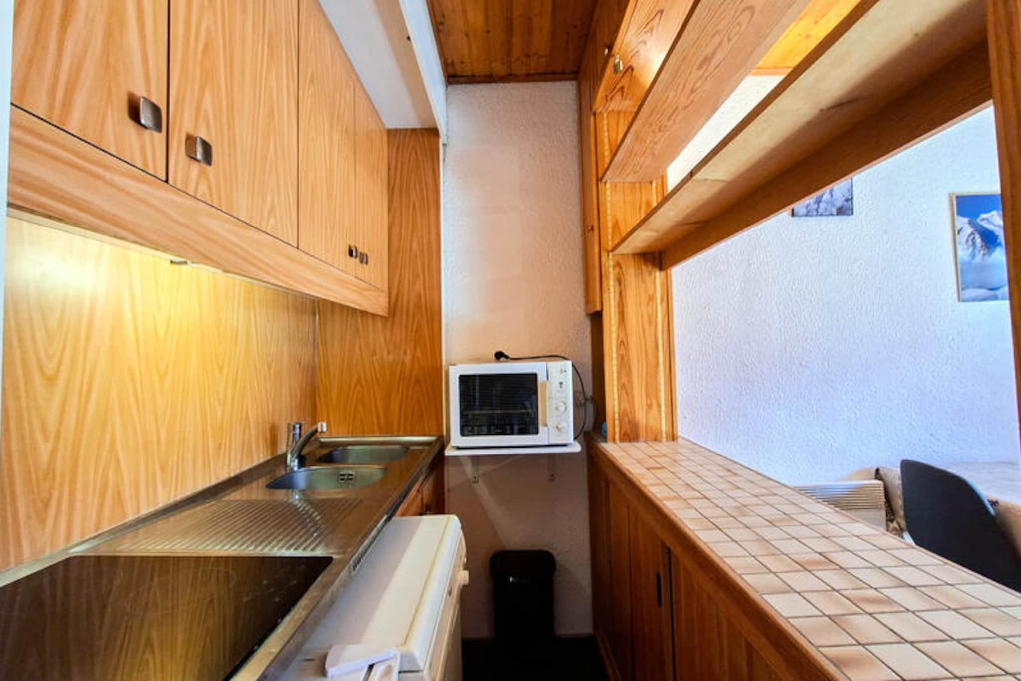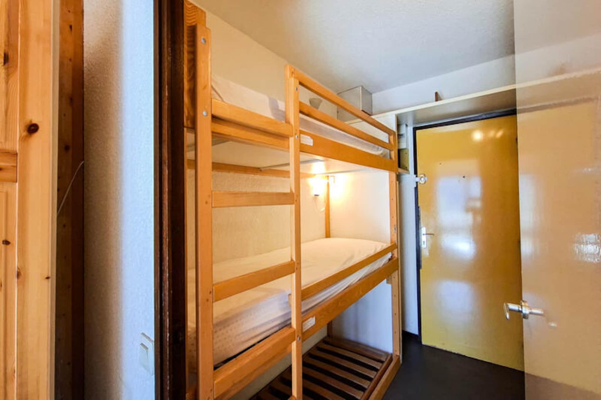 I hjertet af det fredfyldte Flaine Forêt-distrikt tilbyder dette charmerende studie et hyggeligt tilflugtssted kun 150 meter fra pisterne og skiskolens mødesteder. Uanset om du er her for at grave dig gennem uberørt sne eller nyde den pulserende alpine atmosfære, placerer denne ejendom dig perfekt tæt på begivenhederne, samtidig med at den bevarer en fredelig atmosfære. Den sydvendte balkon inviterer dig til at nyde sollyset og beundre den omkringliggende bjergudsigt, hvilket skaber et varmt og indbydende rum at slappe af efter en dag med eventyr. \n\nStudioet er designet til at rumme op til fire gæster og har en praktisk indretning med et sæt køjesenge i entréen og en komfortabel sovesofa i opholdsstuen. Tekøkkenet er fuldt udstyret med opvaskemaskine, mikrobølgeovn og keramisk kogeplade, hvilket gør det nemt at tilberede måltider og snacks. Opholdsstuen suppleres af et fladskærms-tv, der sikrer hyggelige aftener indendørs. Badeværelset har badekar og toilet, og ejendommen tilbyder også et praktisk skiskab til dit udstyr. Bemærk venligst, at den øverste køje ikke er egnet til børn under seks år, og sengelinned og håndklæder er ikke inkluderet. \n\nBeliggende tæt på butikker og vigtige faciliteter, sikrer residensen, at alt hvad du behøver er inden for rækkevidde. I sommersæsonen inkluderer ophold på seks nætter eller mere \