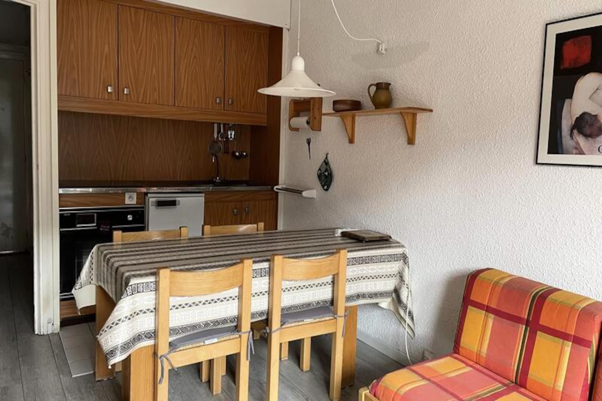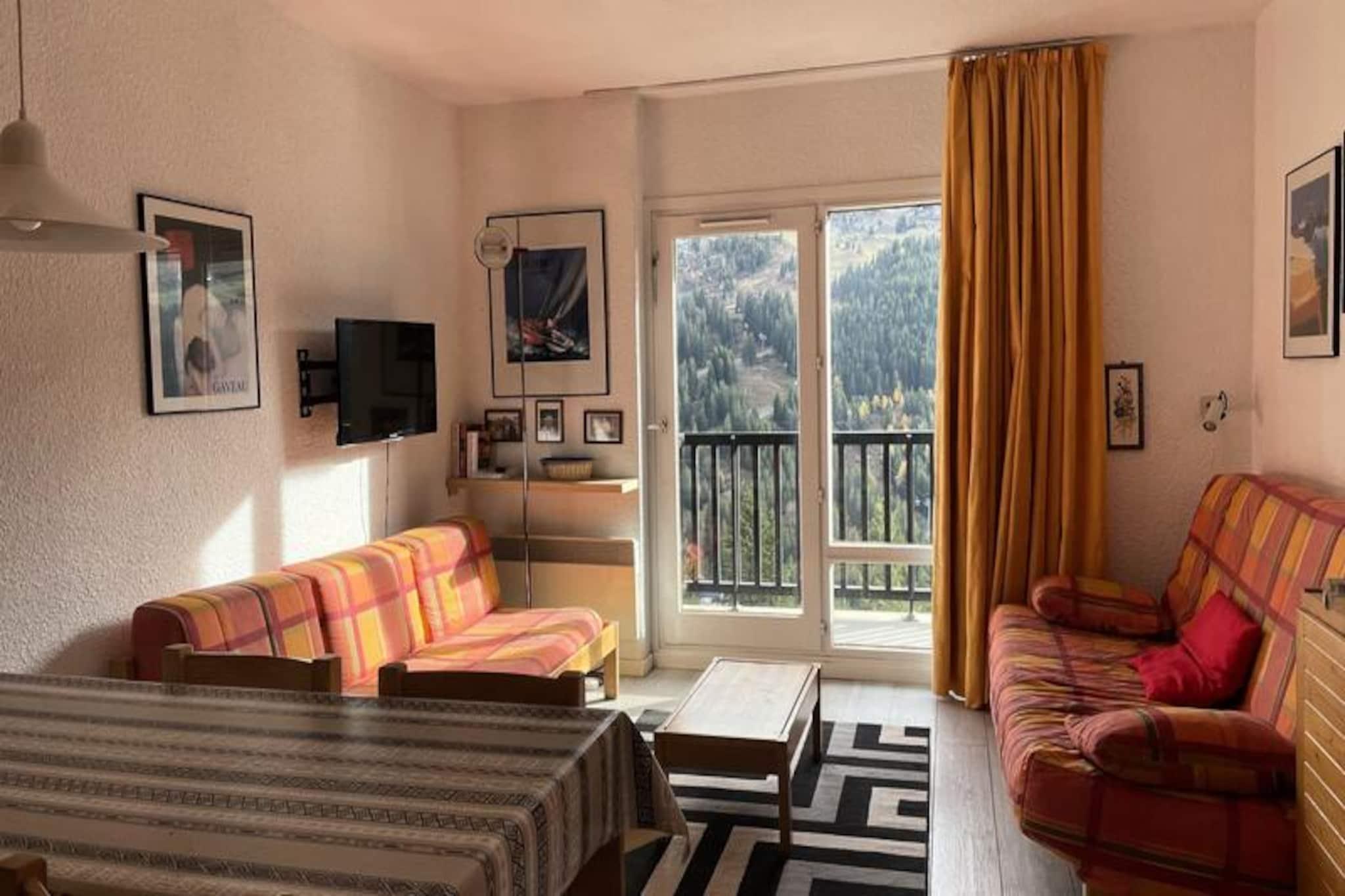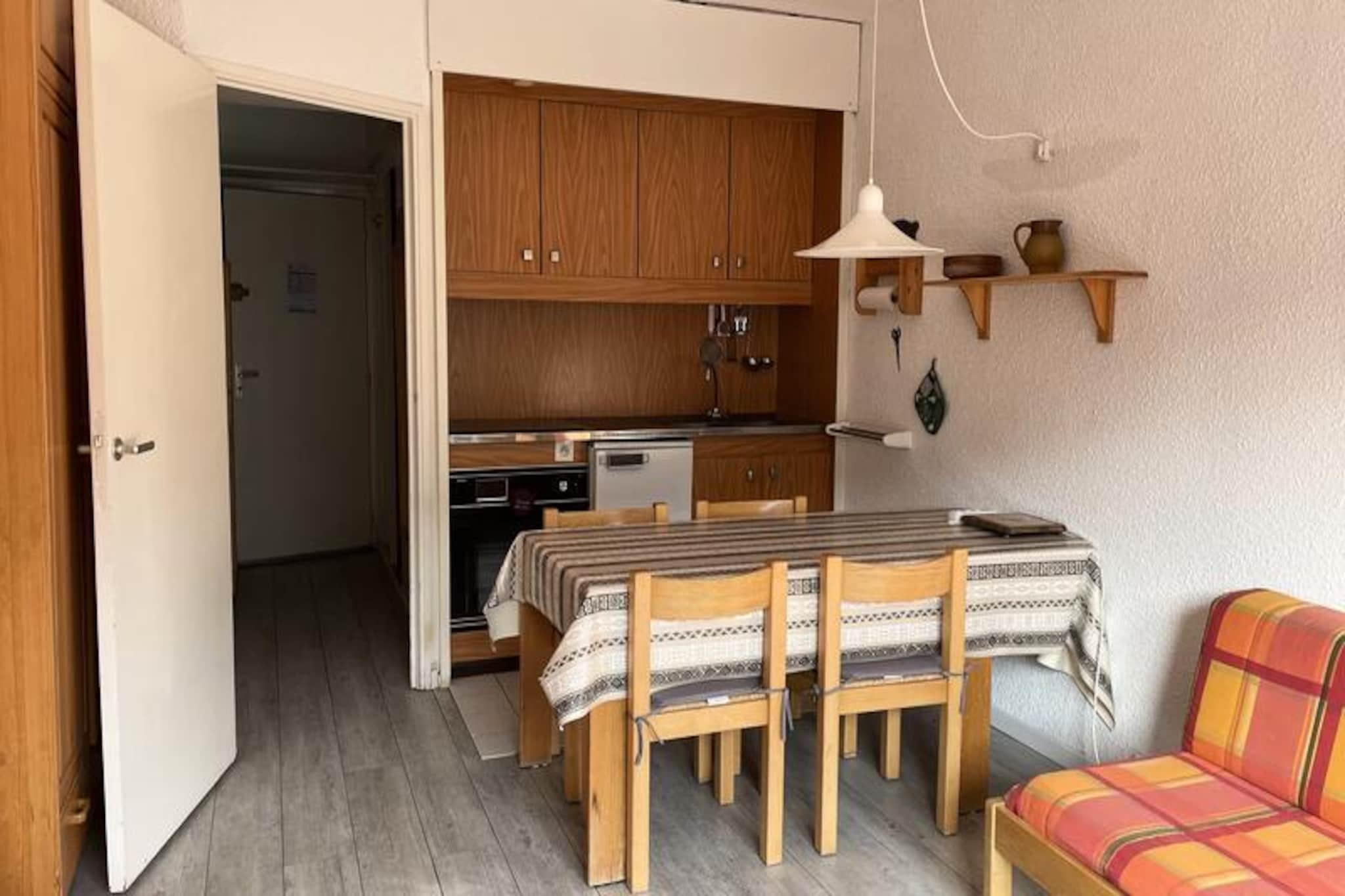 I hjertet af det maleriske Flaine Forêt-distrikt tilbyder dette hyggelige studie et dejligt alpint tilflugtssted, kun 150 meter fra pisterne og skiskolens mødesteder. Boligen er perfekt beliggende for både vintersportsentusiaster og sommereventyrere og er omgivet af charmerende butikker og faciliteter, hvilket sikrer bekvemmelighed i alle henseender. Fra den sydvendte balkon kan du nyde den fredfyldte udsigt over bjergene og den friske alpine luft, hvilket gør hvert øjeblik til et frisk pust. \n\nStudioet er designet til at rumme op til fire gæster og er omhyggeligt indrettet med et sæt køjesenge i entréen og en komfortabel dobbeltsovesofa i opholdsstuen. Tekøkkenet er udstyret med moderne apparater, herunder en Vito keramisk kogeplade, ovn og mikrobølgeovn, hvilket gør det nemt at tilberede solide måltider efter en dag med udforskning. Slap af i stuen med et stort fladskærms-tv eller slap af på badeværelset med badekar til et afslappende bad. Praktiske detaljer som et skiskab og dyner sikrer et problemfrit ophold, mens den sydvendte balkon inviterer dig til at sole dig. \n\nFlaine er en destination, der er åben året rundt, og som tilbyder spændende skiløjper om vinteren og et væld af aktiviteter om sommeren takket være den inkluderede \