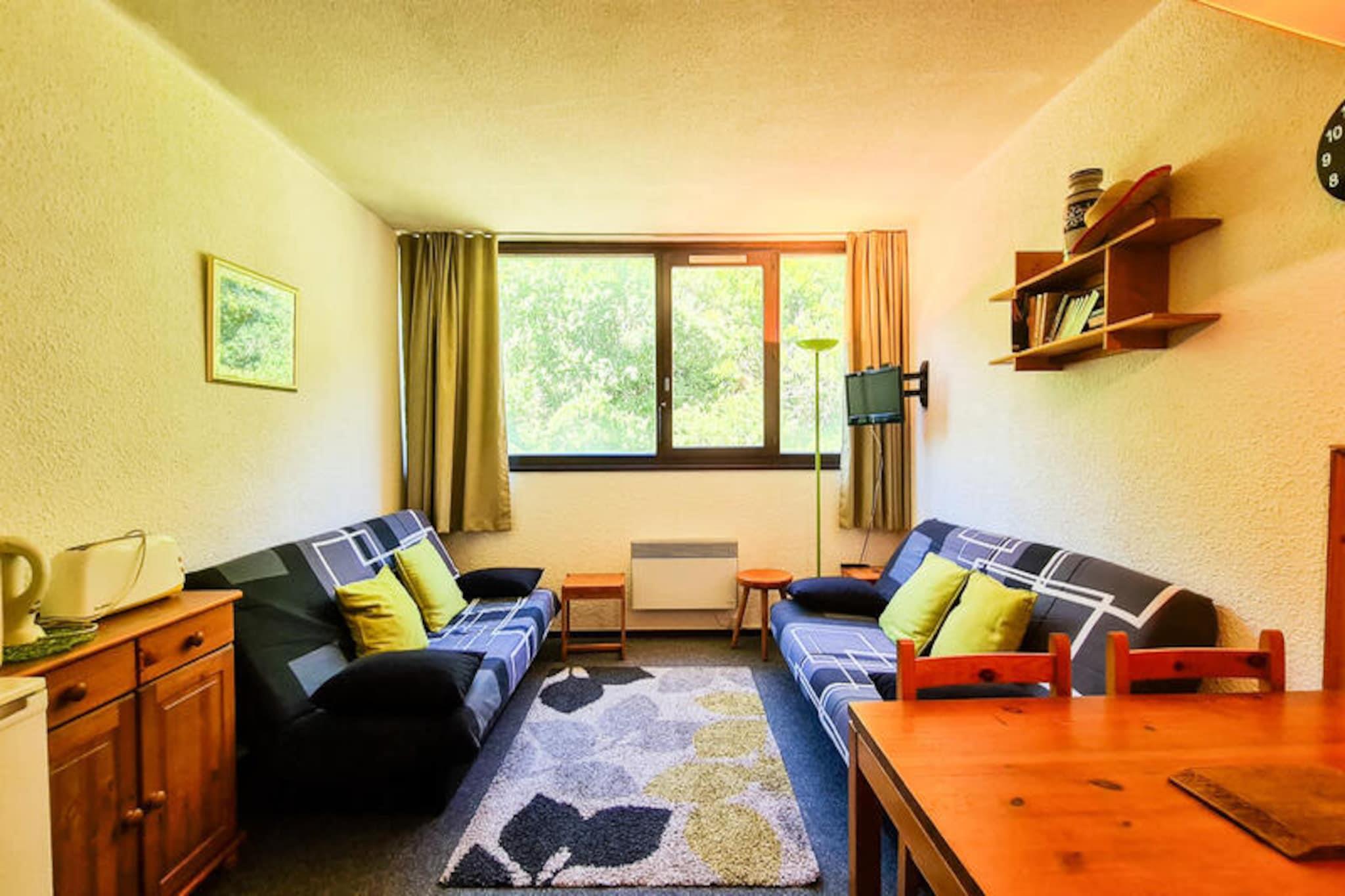 I det fredfyldte Flaine Forêt-distrikt inviterer dette charmerende studie dig til at opleve de franske alpers skønhed i enhver sæson. Kun 150 meter fra pisterne og skiskolens mødesteder tilbyder det ubesværet adgang til både vintereventyr og sommeraktiviteter. Uanset om du er her for at grave dig gennem frisk puddersne eller udforske bjergstier, er dette hyggelige tilflugtssted perfekt beliggende til din alpine ferie. Det omkringliggende område er fyldt med butikker og faciliteter, hvilket sikrer bekvemmelighed lige ved hånden. Studiet, der ligger på fjerde sal, er omhyggeligt designet til at rumme op til fire gæster. Indgangen har en køjesenge, mens stuen har en komfortabel sovesofa til to personer. Et fladskærms-tv tilføjer et strejf af moderne komfort, og tekøkkenet er udstyret med keramisk kogeplade og ovn, hvilket gør det nemt at tilberede måltider efter en dag med udforskning. Badeværelset har badekar og toilet, hvilket giver et afslappende sted at slappe af. Bemærk venligst, at sengelinned og håndklæder ikke er inkluderet, og rygning er ikke tilladt i ejendommen. I sommersæsonen kan gæster, der bor seks nætter eller mere, benytte Flaine Summer Pass, der giver adgang til en række aktiviteter, der fremviser regionens naturlige skønhed og pulserende kultur. Fra vandreture og mountainbiking til familievenlige begivenheder er der noget for enhver smag. Uanset om du søger spændende skiløjper om vinteren eller rolige alpine udflugter om sommeren, tilbyder dette studie den perfekte base for dine eventyr. Med sin førsteklasses beliggenhed og indbydende atmosfære er det et ideelt valg for par, små familier eller venner, der ønsker at skabe uforglemmelige minder i hjertet af Alperne.