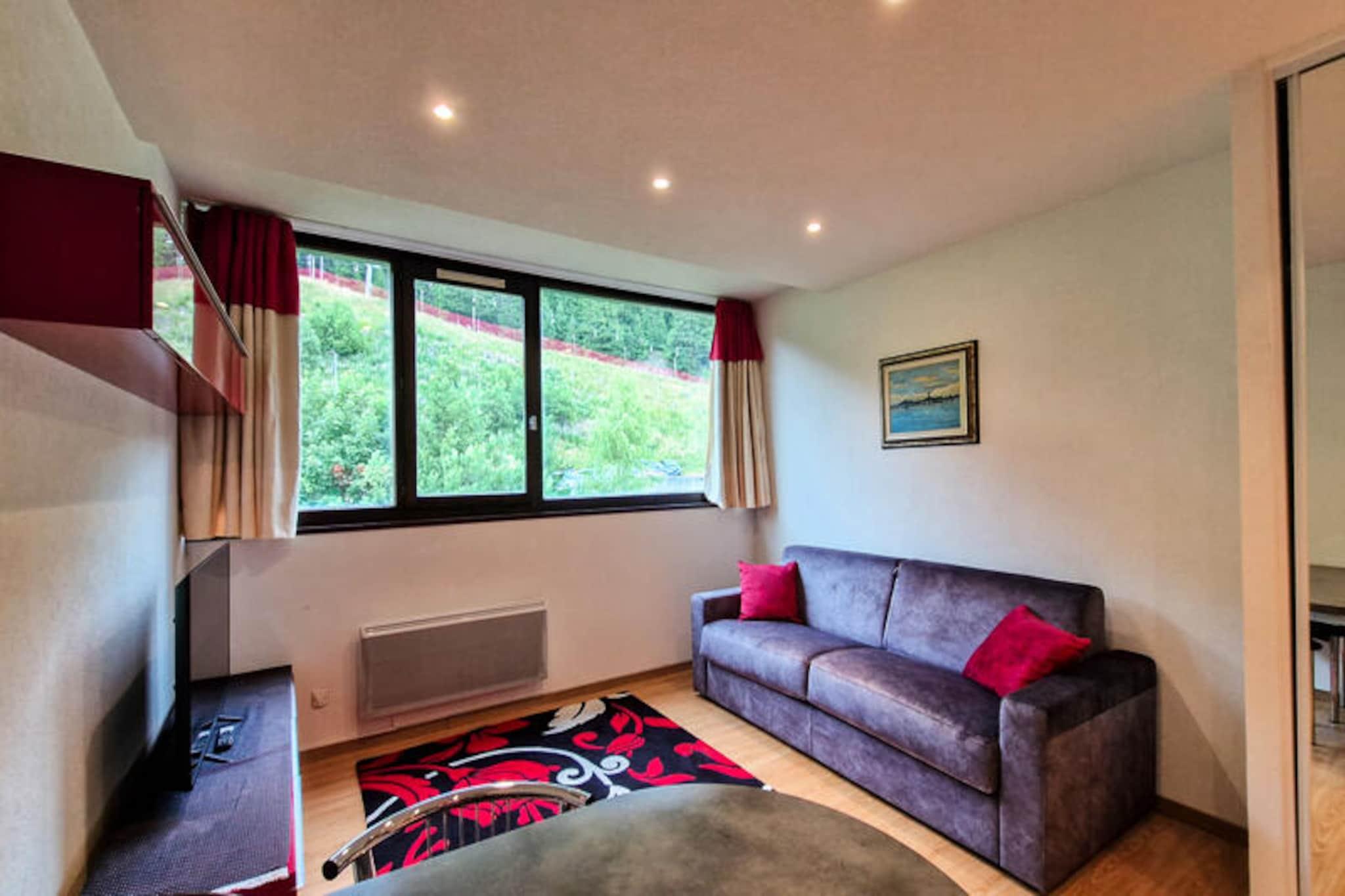 Højt over den fredfyldte alpedal tilbyder dette charmerende studie i Flaine Forêt-distriktet et hyggeligt tilflugtssted for bjergentusiaster. Beliggende kun 150 meter fra pisterne og skiskolens mødesteder, er det den perfekte base for både begyndere og erfarne skiløbere. Det omkringliggende område er levende, men fredeligt, med butikker og faciliteter kun en kort gåtur væk, hvilket sikrer bekvemmelighed uden at gå på kompromis med roen under dit ophold. \n\nDette smukt renoverede studie på 25 m², beliggende på 7. sal, er omhyggeligt designet til at maksimere komfort og funktionalitet. Det varme parketgulv skaber en indbydende atmosfære, mens den smarte planløsning har plads til op til fire gæster. Indgangen har et sæt køjesenge, mens stuen har en komfortabel dobbeltsovesofa (160x190 cm) og et fladskærms-tv til afslappende aftener. Tekøkkenet er udstyret med moderne apparater, herunder fire keramiske kogeplader og en ovn, hvilket gør det nemt at tilberede måltider efter en dag på pisterne. Badeværelset, komplet med bruser og toilet, bidrager til bekvemmeligheden. Til dit udstyr er der et dedikeret skiskab, hvilket sikrer et ryddeligt opholdsområde. \n\nUd over ejendommen tilbyder Flaine et væld af aktiviteter året rundt. Om vinteren lokker skiområdet Grand Massif med sine omfattende pister og betagende udsigter. Om sommeren er den inkluderede \