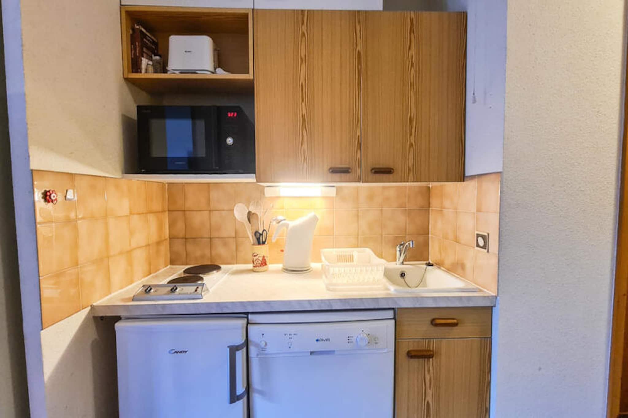 Beliggende i det fredfyldte Flaine Forêt-distrikt tilbyder denne charmerende sydvendte studiohytte et hyggeligt tilflugtssted for op til fire gæster. Med sin førsteklasses beliggenhed kun 150 meter fra Gérats-stoleliften og 500 meter fra pisterne er denne ejendom et paradis for både skientusiaster og naturelskere. Den omkringliggende alpine skønhed og bekvemmeligheden ved nærliggende faciliteter gør den til et ideelt valg for en mindeværdig ferie i hjertet af de franske alper. Studioet er omhyggeligt designet til at maksimere komfort og funktionalitet. Opholdsstuen har en dobbelt sovesofa, mens hyttekrogen indeholder et sæt køjesenge, perfekt til familier eller små grupper. En sydvendt balkon inviterer dig til at nyde udsigten over bjergene og den friske alpeluft. Tekøkkenet er udstyret med to elektriske kogeplader, en multifunktionsovn og en opvaskemaskine, hvilket gør madlavning til en leg. Moderne bekvemmeligheder såsom et fladskærms-tv og et badeværelse med badekar sikrer et afslappende ophold. Bemærk venligst, at den øverste køje ikke er egnet til børn under seks år, og sengelinned og håndklæder er ikke inkluderet. Ud over studiet tilbyder Flaine Forêt-distriktet et væld af aktiviteter og bekvemmeligheder. Der ligger butikker kun 200 meter væk, og der ligger et busstoppested 50 meter fra boligen, hvilket sikrer nem adgang til det bredere Flaine-område. Om sommeren kan gæster, der bor seks nætter eller mere, benytte sig af det eksklusive 'Flaine Summer Pass', som inkluderer en række aktiviteter, der kan forbedre dit alpine eventyr. Uanset om du er her for at grave dig gennem uberørte skråninger om vinteren eller udforske de frodige stier og livlige aktiviteter om sommeren, er denne studiehytte den perfekte base for din alpine flugt. Omfavn roen og charmen i Flaine Forêt, og skab uforglemmelige minder i disse maleriske bjergomgivelser.
