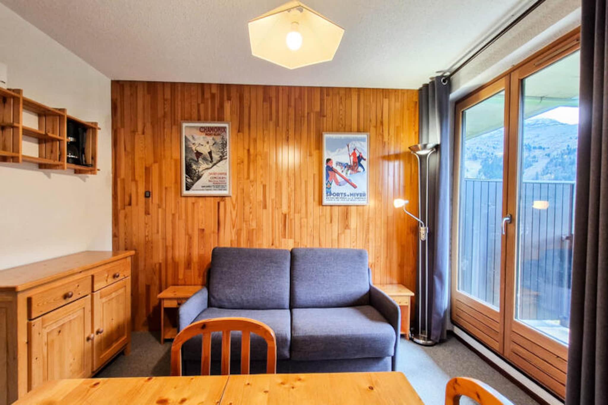 Højt over den fredfyldte alpedal inviterer denne charmerende studiohytte i Flaine Forêt dig til at opleve bjergenes magi året rundt. Med sin sydvendte balkon kan du nyde solen, mens du nyder den betagende udsigt, hvilket gør hvert øjeblik til en blanding af afslapning og eventyr. Uanset om du er her for sneklædte pister eller sommerstier, er dette hyggelige tilflugtssted din port til uforglemmelige minder i hjertet af de franske alper. \n\nStudioet er designet til at rumme op til fire gæster og tilbyder et smart layout, der maksimerer komfort og funktionalitet. Hytten har en køjeseng, perfekt til børn eller venner, og en dobbelt sovesofa i stuen til afslappende nætter. Et fladskærms-tv og en dvd-afspiller sørger for underholdning efter en dag med udforskning, mens tekøkkenet er udstyret med elektriske kogeplader og en miniovn til at tilberede solide måltider. Badeværelset har et badekar til afslapning, og et separat toilet sikrer bekvemmelighed. Den sydvendte balkon med bord og stole er ideel til at nyde morgenkaffen eller aftensolnedgangene. \n\nBeliggende kun 200 meter fra pisterne og skiskolens mødesteder, er denne bolig perfekt placeret for vintersportsentusiaster. Nærliggende butikker gør det nemt at fylde op med det nødvendige udstyr, mens skiboksen sikrer, at dit udstyr altid er klar til action. Om sommeren tilbyder Flaine Summer Pass en række aktiviteter, lige fra vandreture til kulturelle begivenheder, hvilket tilføjer et livligt præg til dit ophold. \n\nUanset om du søger spændende skidage eller rolige sommerferier, kombinerer denne studiohytte komfort, bekvemmelighed og Alpernes skønhed. Lad den friske bjergluft og de fantastiske landskaber inspirere dit næste eventyr i Flaine Forêt.