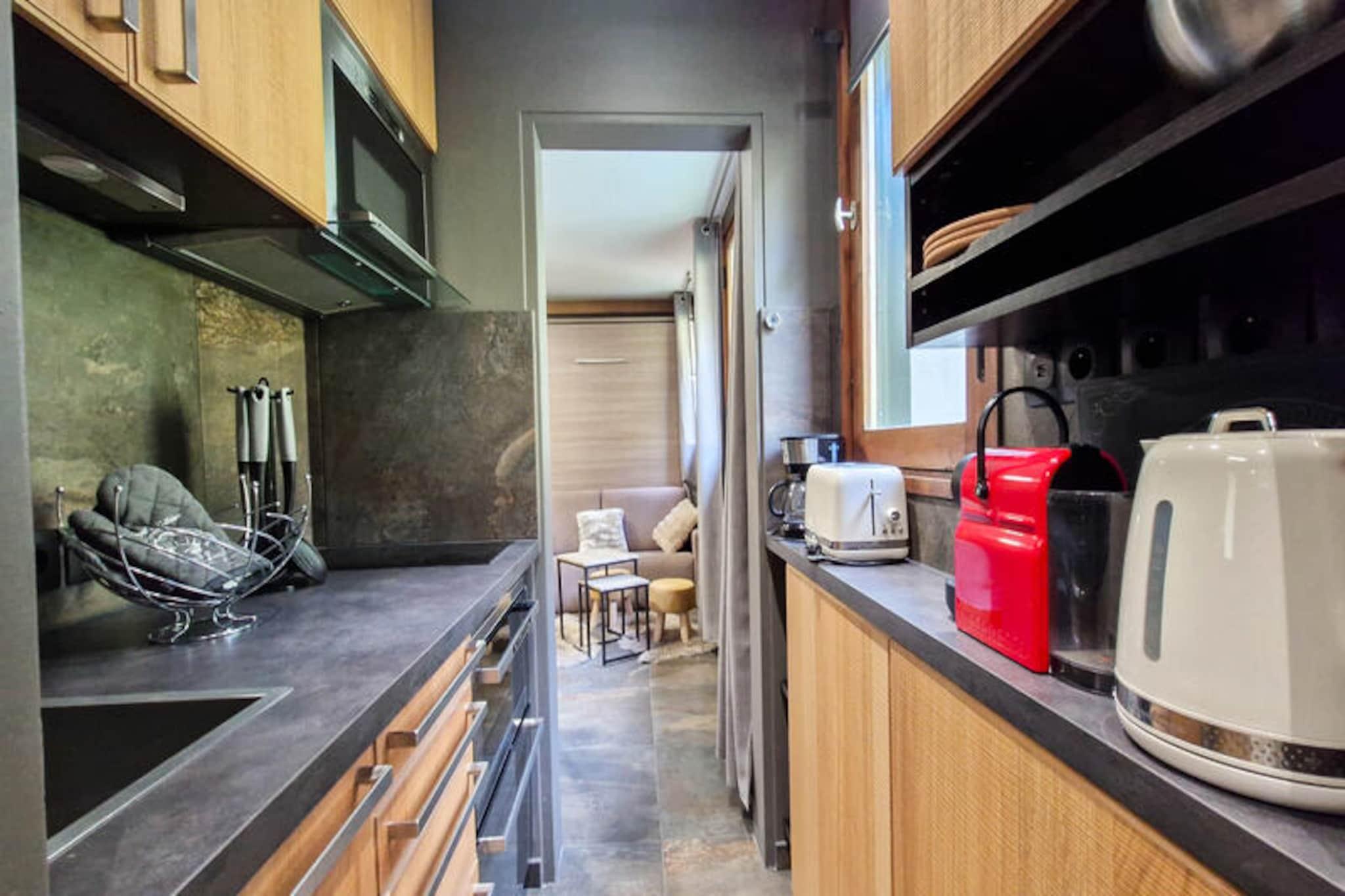 I hjertet af det dynamiske Flaine Forum-distrikt tilbyder dette charmerende studie et hyggeligt tilflugtssted, kun 150 meter fra pisterne og skiskolens mødesteder. Boligen er perfekt placeret for både vintersportsentusiaster og sommereventyrere og er omgivet af butikker og faciliteter, hvilket sikrer bekvemmelighed på alle områder. Uanset om du er her for at grave dig gennem uberørt sne eller udforske de alpine stier, placerer denne beliggenhed dig lige i centrum af det hele. \n\nDet nyrenoverede, nordvendte studie strækker sig over 25 m² og er omhyggeligt udstyret til op til fire gæster. Tekøkkenet kan prale af moderne apparater, herunder induktionskogeplader, ovn, mikrobølgeovn, mini-opvaskemaskine og en Nespresso-kaffemaskine til din morgenkaffe. Opholdsstuen har to dobbeltsenge og en enkeltseng, suppleret af et fladskærms-tv til afslappende aftener. Et elegant brusebad med toilet og et spisekammer med et stort køleskab, fryser og vaskemaskine/tørretumbler bidrager til komforten og den praktiske anvendelighed. Der er skibokse til dit udstyr, mens dyner sikrer en varm og afslappende nats søvn. Bemærk venligst, at den øverste køjeseng ikke er egnet til børn under seks år, og kæledyr er ikke tilladt.\n\nI sommersæsonen inkluderer ophold på seks nætter eller mere den eksklusive\