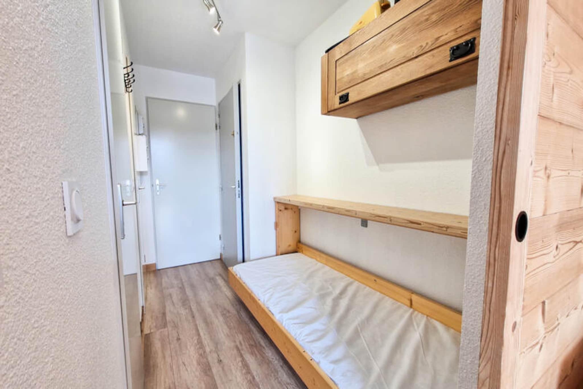 Højt over de fredfyldte landskaber i de franske alper tilbyder denne charmerende studiolejlighed i Flaine Forêt-distriktet et hyggeligt tilflugtssted for både eventyrere og naturelskere. Med sit fuldstændig renoverede interiør og en sydvendt balkon, der indfanger varmen fra den alpine sol, er denne ejendom din port til en uforglemmelig bjergflugt. Uanset om du er her for de snedækkede pister eller de pulserende sommeraktiviteter, lover hvert øjeblik at være ekstraordinært. Det 25 m² store studio er omhyggeligt designet til at rumme op til fem gæster, hvilket gør det ideelt for par, små familier eller nære venner. Sovekamren har en komfortabel dobbeltseng, mens entréen har en praktisk enkeltseng, der kan foldes ned. Stuen indbyder til afslapning med en hyggelig to-personers sovesofa og et fladskærms-tv, perfekt til at slappe af efter en dag med udforskning. Det moderne tekøkken er udstyret med keramiske kogeplader, en kombineret mikrobølgeovn/ovn og en opvaskemaskine, hvilket sikrer, at du har alt, hvad du behøver for at tilberede lækre måltider. Et elegant brusebad og separat toilet bidrager til bekvemmeligheden, mens trægulvene giver rummet et strejf af elegance. Beliggenheden er en drøm for skientusiaster, kun 200 meter fra Gérats-stoleliften og 500 meter fra de vigtigste skilifter. Der ligger butikker en kort gåtur på 200 meter, og der er et busstoppested bekvemt placeret kun 20 meter fra boligen, hvilket gør det nemt at udforske området. Om sommeren tilbyder Flaine Summer Pass en række aktiviteter, så der altid er noget at nyde. Uanset om du snor dig gennem pudrede pister om vinteren eller vandrer på naturskønne stier om sommeren, er denne studiolejlighed den perfekte base for dine alpine eventyr. Omfavn Flaines skønhed og skab minder, der vil vare hele livet.