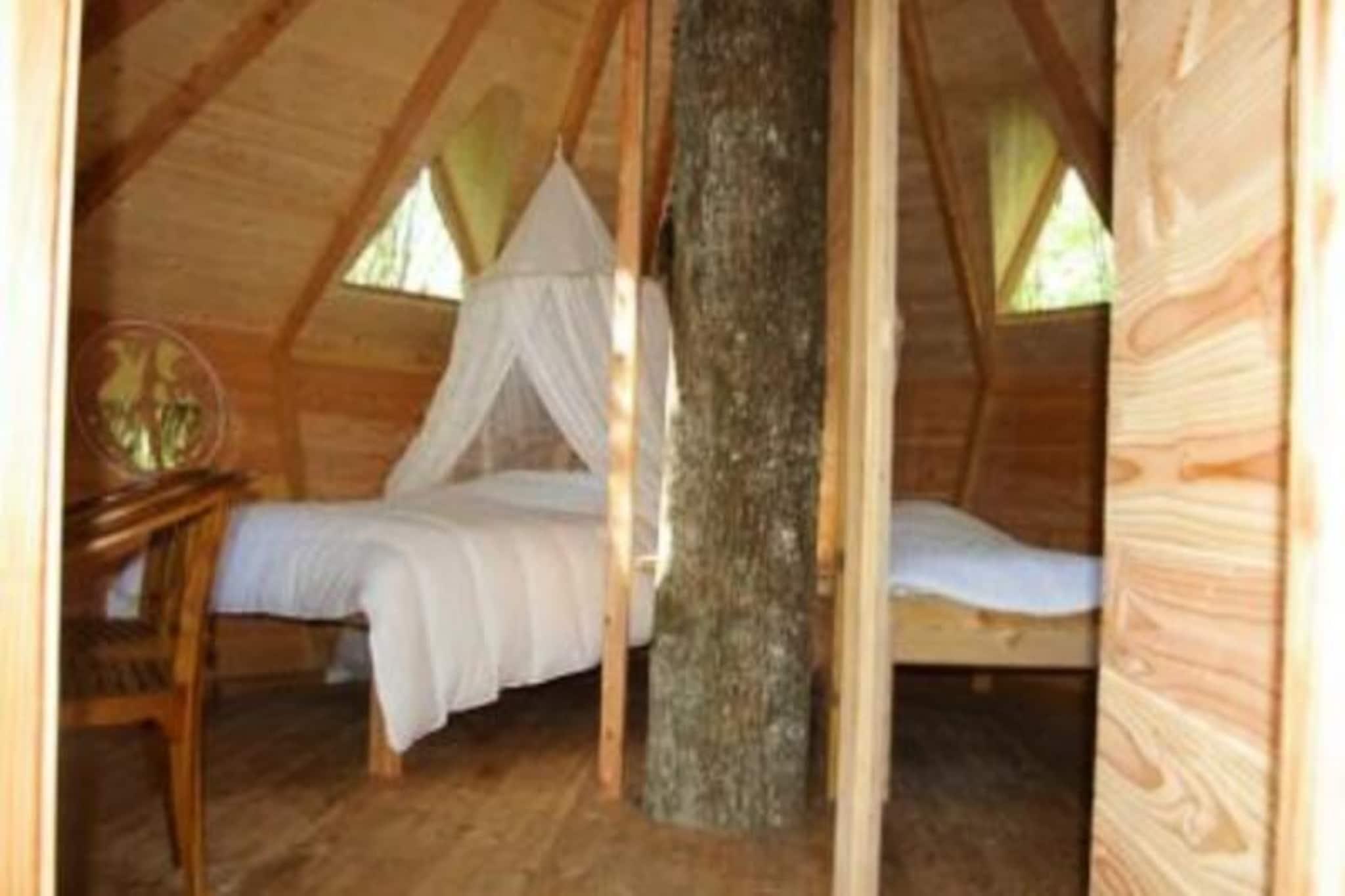 Parc de la Belle ligger i en 12 hektar stor have og samler usædvanlig indkvartering for at genoplade batterierne i Vienne. Med familie, venner eller en romantisk ferie er Parc de la Belle det ideelle sted at koble af og tage en pause omgivet af natur. På stedet glæder minigården med geder og får børn og er en af ??de sjove aktiviteter, som Parken tilbyder. Hvis du foretrækker eventyr, vil du kunne lide puslespillet, som tager dig på en mystisk søgen gennem flere universer. Børn kan også bruge tid på legepladsen: rutsjebaner, akrobatiske kurser osv. Uanset om du vælger at sove i træerne eller i en komfortabel lodge, vil dit ophold på Parc de la Belle give dig en oplevelse af ro i hjertet af naturen! Bemærk venligst: hytterne har fælles badeværelser. De har hverken vand eller el. Administrationsgebyr på 25 EURO betales på stedet. Soveværelse med 1 dobbeltseng. Soveværelse med 2 enkeltsenge. Tørre toiletter. Terrasse. Bemærk venligst: denne kahyt har ikke et badeværelse. Babykit - seng + høj stol: kan lånes ved reservation Sengetøj - inkluderet Slutrengøring - ekstra - se pris på stedet Morgenmad - bestilles inden dit ophold: 11,90 EURO/voksen og 7,90 EURO/barn Turistskat (ekstra gebyr) - betales på stedet i henhold til gældende takst