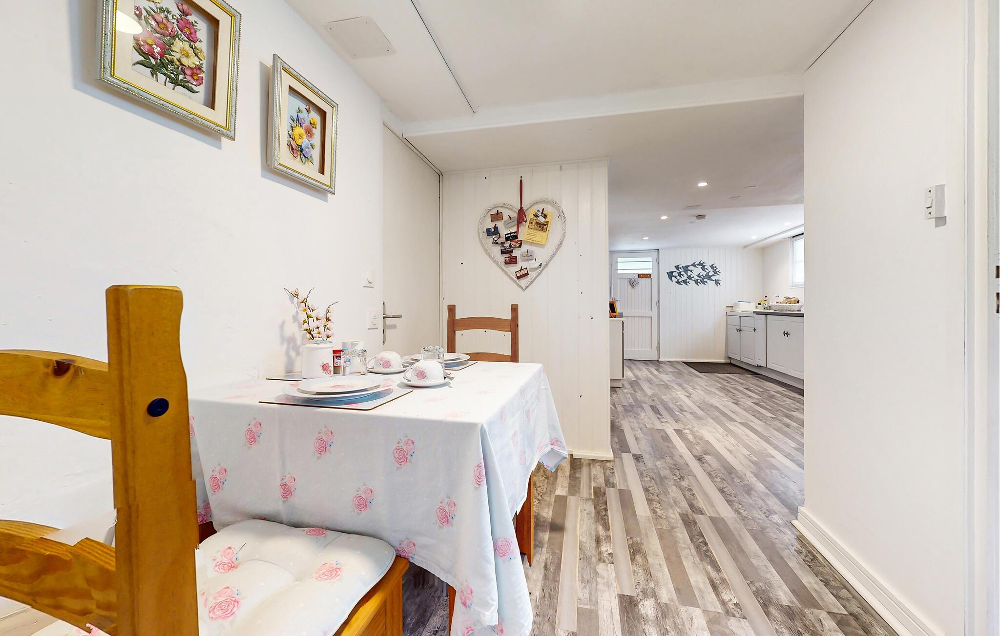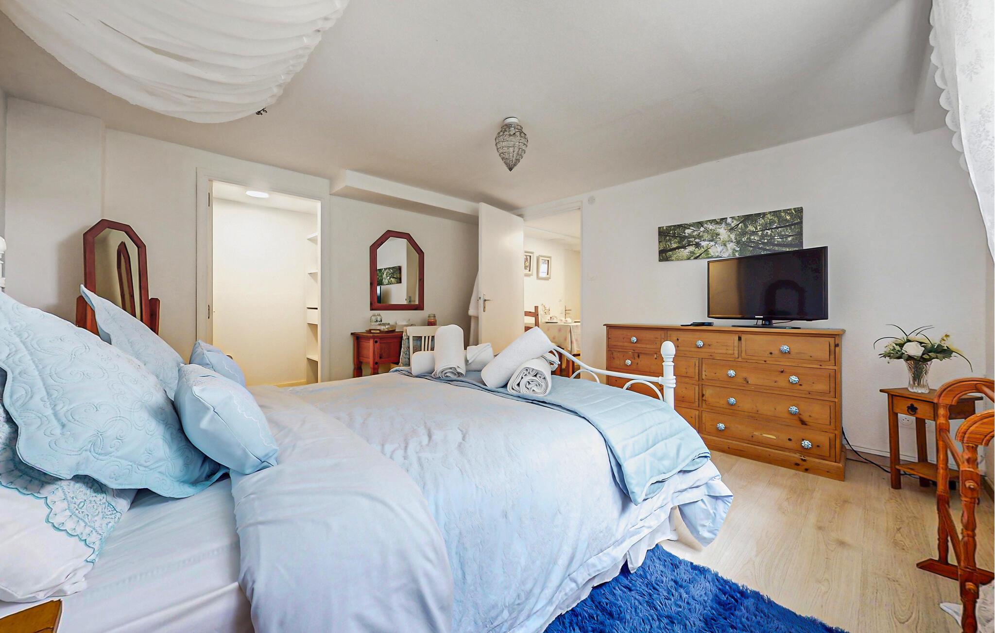 Pak kufferten og glæd jer til solrige dage i denne indbydende ferielejlighed. Forkæl hinanden med lækre retter i det veludstyrede køkken og nyd jeres måltider med vin og levende lys ved spisebordet. Planlæg jeres næste udflugter her, spil et spil kort eller krøl jer sammen om aftenen med en spændende bog.