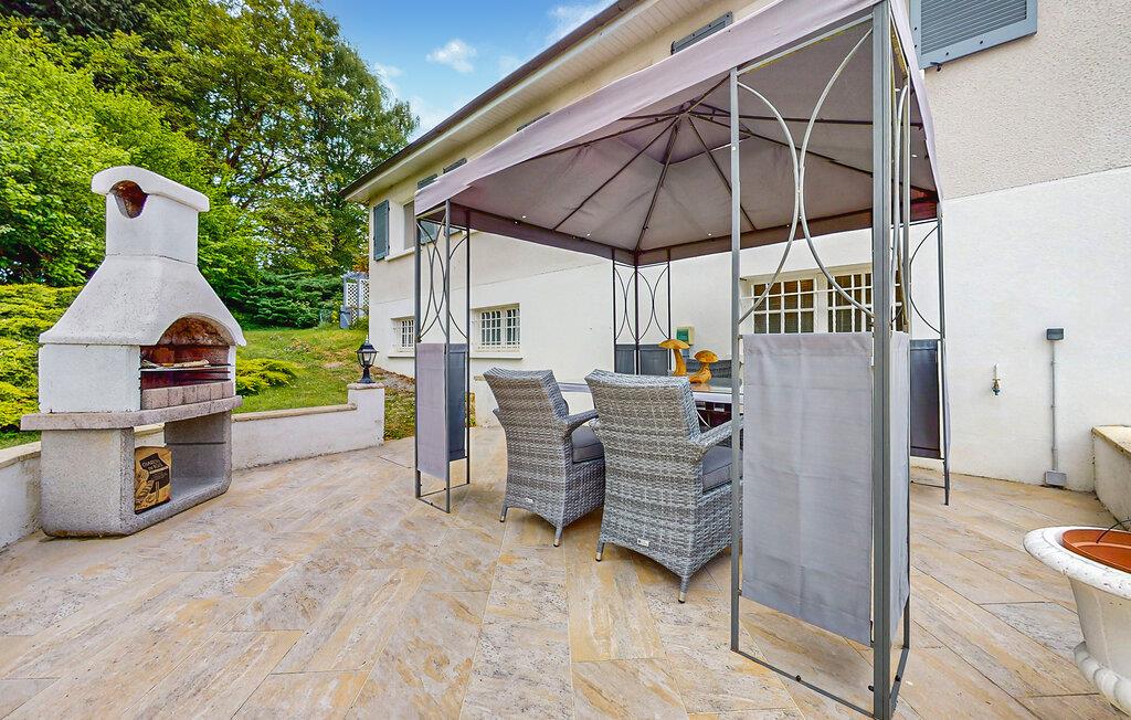 Udenfor venter en idyllisk have med duftende blomster, en rummelig terrasse og en forfriskende pool. Nyd freden og roen på en af ??liggestolene eller sæt jer under den overdækkede pergola med en kølig drink. Om aftenen giver grillen den perfekte mulighed for at afslutte dagen med en hyggelig grill.