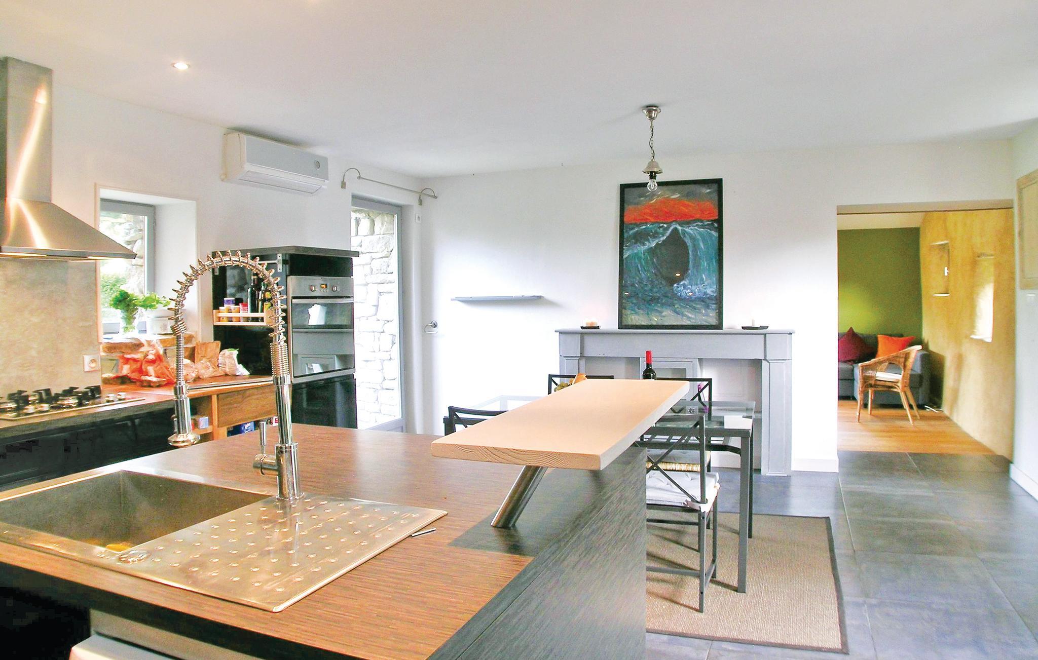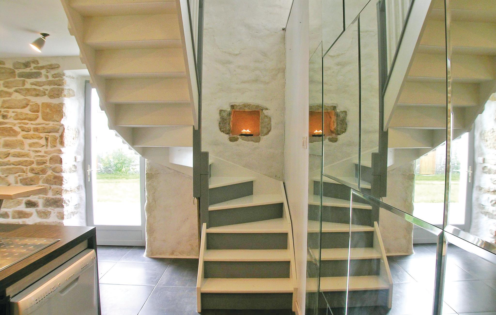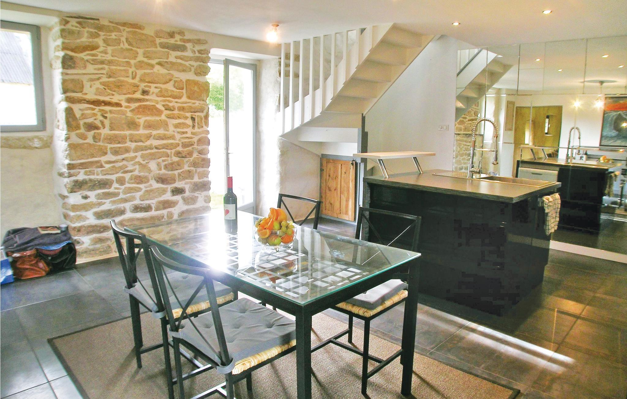 Dette gennemrenoverede feriehus fordeler sig på tre etager og er komfortabelt indrettet. Det særdeles godt indrettede køkken med dejlig spiseplads i stueplan, er åbent mod stuen, hvorfra der er udgang til den store træterrasse. På de øverste etager, med adgang via en bred trætrappe, ligger soveværelserne. I den dejlige ugenerte have, kan I nyde haven med et cedertræ i centrum og alle former for blomster langs stenmuren og laden. I haven er der også forskellige former for legeredskaber. Point-Croix ligger en km væk, med mange seværdigheder ved floden Le Goyen, Plouhinecs og Audiernes strande er kun fem minutter væk i bil.