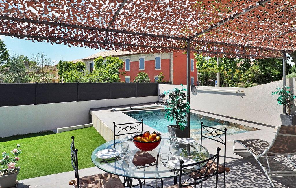 Ferievillaen er bekvemt placeret ved landsbyens indgang i Maillane, med butikker og restauranter i gåafstand. Villaen har en række faciliteter. Når du træder ind, vil du finde et velindrettet opholdsrum med et komfortabelt opholdsområde med et tv udstyret med hjemmebiograf og USB-højttaler til musik, suppleret med en spiseplads ved siden af et fuldt udstyret åbent køkken. Der er også et dedikeret fitnessrum, der er indrettet med et løbebånd, en vægtbænk og en Powerplate. Udenfor forbinder stuen problemfrit til den skyggefulde terrasse, der tilbyder en indbydende atmosfære. Villaen har en lille pool, der måler 5m x 3m, med et lavt vadeområde (3m x 1,8m). Beliggende ved indgangen til Maillane, er villaen beliggende i en gade, der kun frekventeres af lokale beboere. Landsbyens centrum er gåafstand med et af de bedste kager og Frédéric Mistral-museet, der er hjemmehørende i Maillane.