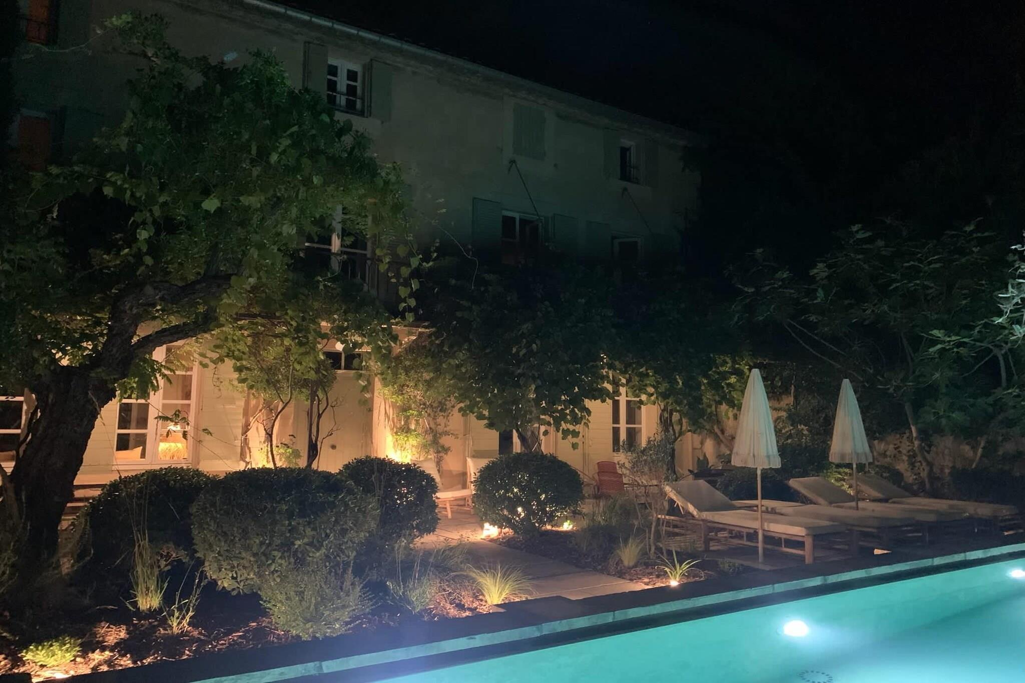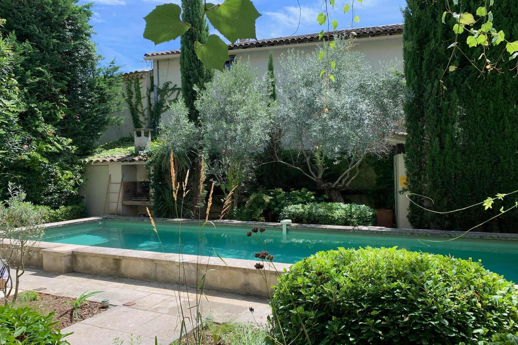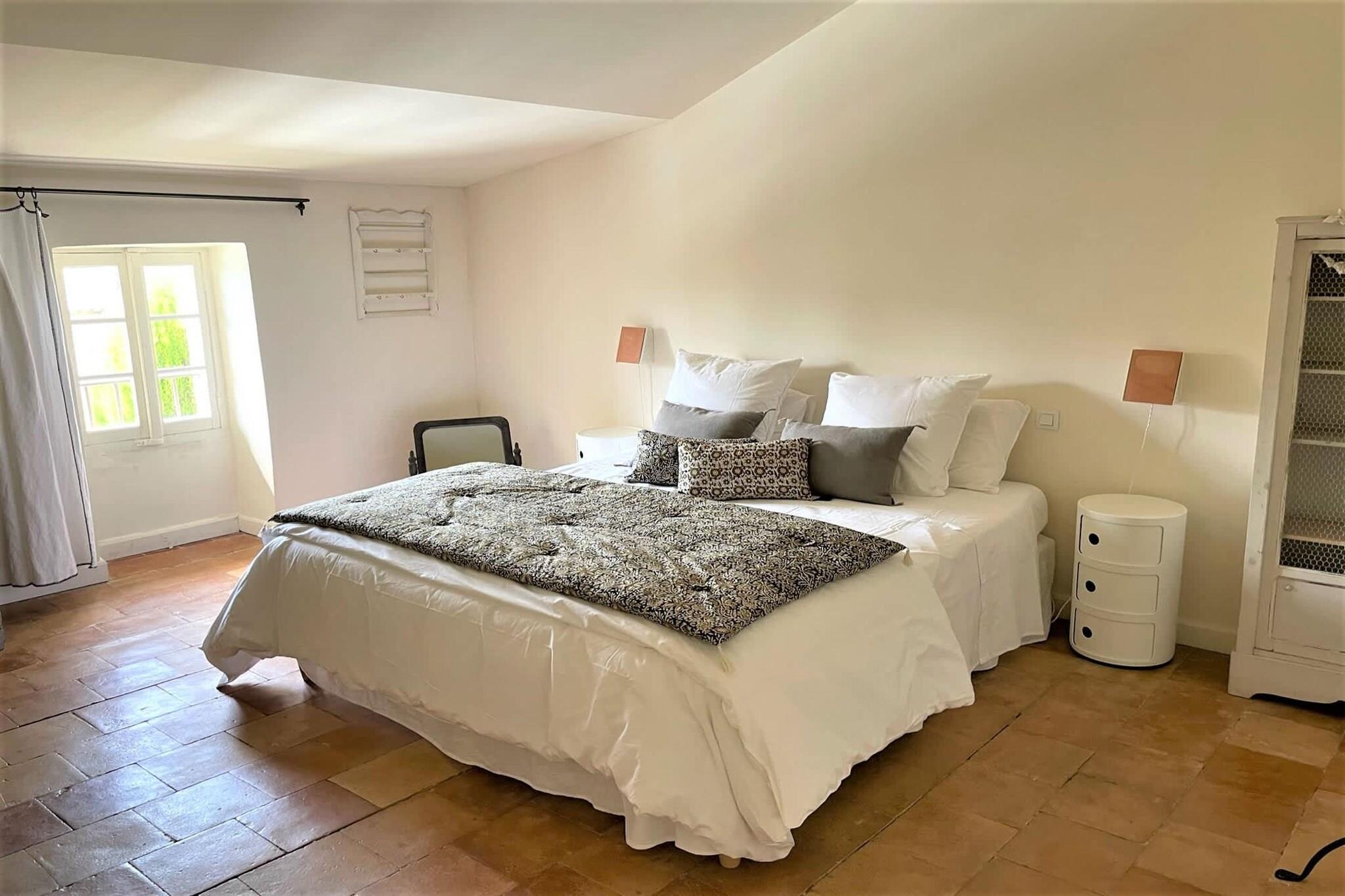 Beliggende lige uden for den fredelige landsby Maillane, er dette hjem indhyllet i den tidløse Provence-følelse - stenmure, cypresser, varmt lys i haven og rolige aftener. Det er et dejligt sted for familier eller en gruppe venner, der søger plads, privatliv og en blød landlig puls, samtidig med at de bor tæt på regionens kulturelle hjerte. Huset byder på masser af plads, der er effektivt indrettet til nem ophold fordelt over en stor stue med tv, et opholdsområde med bar og pejs, et fuldt udstyret køkken forbundet med spisestuen med plads til 8 personer og et separat toilet. Til sovepladserne finder du 5 rummelige soveværelser med kingsize-senge og veludstyrede badeværelser. Wi-Fi, tv, varme og køling samt sikker parkering på stedet giver komfort året rundt. Ejendommens facade udfolder sig til en privat have med græsplæne og skygge, bred nok til at børn kan lege og voksne kan slappe af. Swimmingpoolen bliver et knudepunkt på varme dage - morgensvømmeture, stille læsning i solen eller aftener ved vandet med et glas vin. En terrasse med siddeområde gør det nemt at spise, slappe af og samles udendørs. Maillane ligger i nærheden af Saint-Rémy-de-Provence - tæt nok på til udendørs middage, markedsture, romerske kulturarvsteder og de landskaber, der inspirerede Van Gogh. Olivenlunde, vandrestier, vinmarker og små landsbyer er i nærheden, så dagene kan bevæge sig blidt mellem natur, kultur og afslapning. Et roligt, autentisk ophold i Provence - privat, nemt og bygget til fælles øjeblikke.
