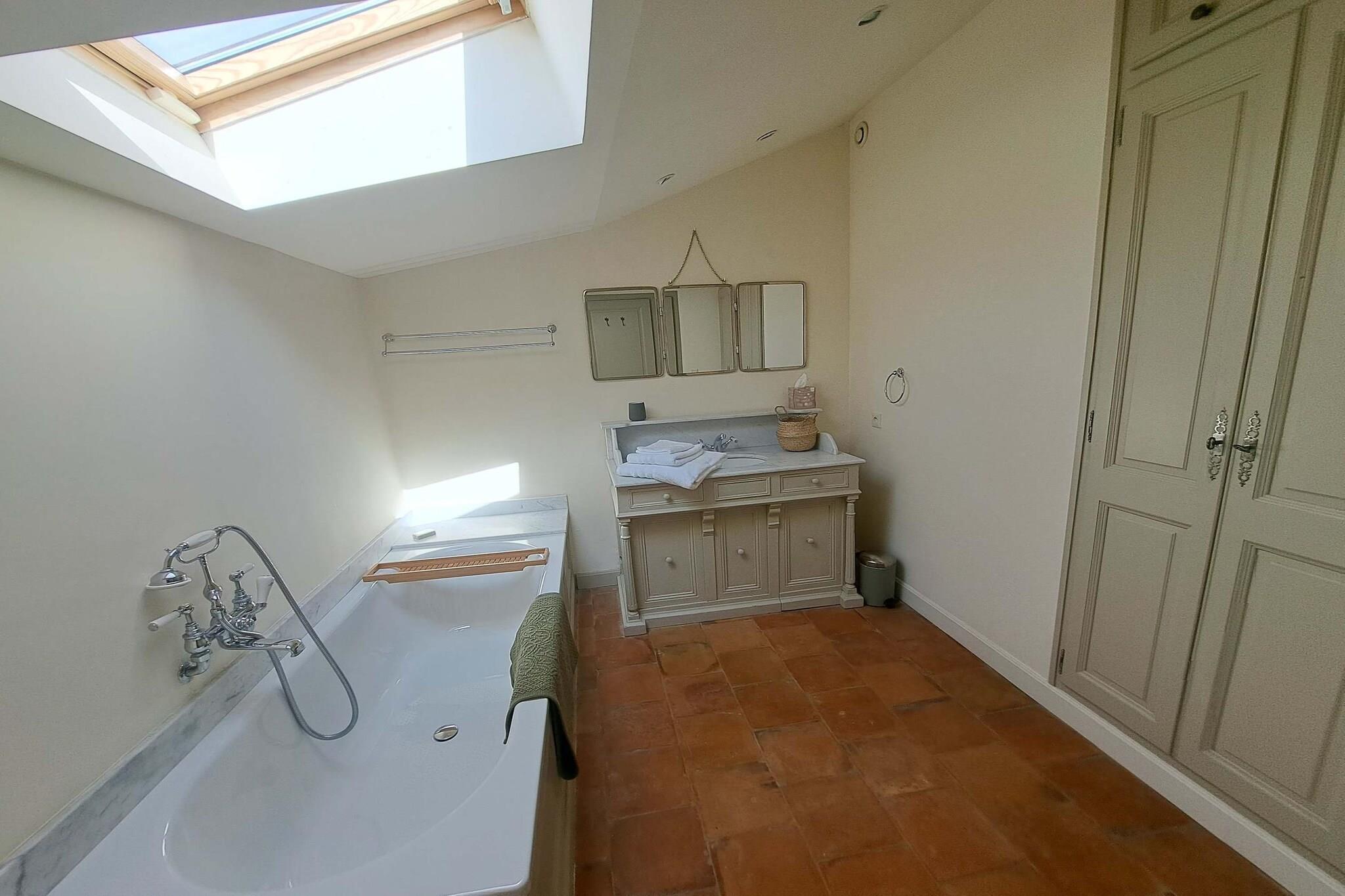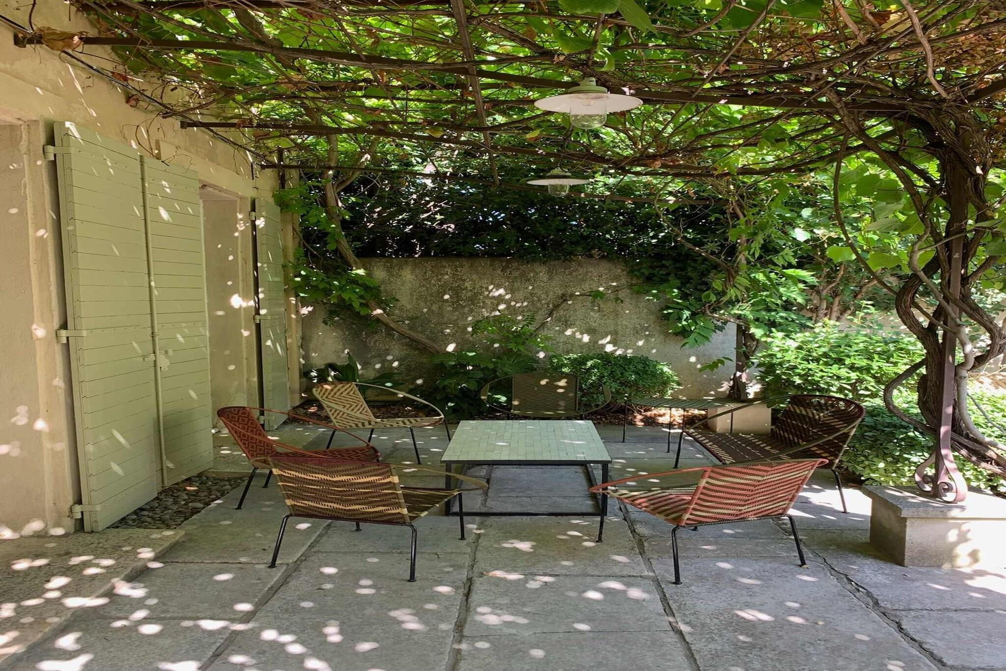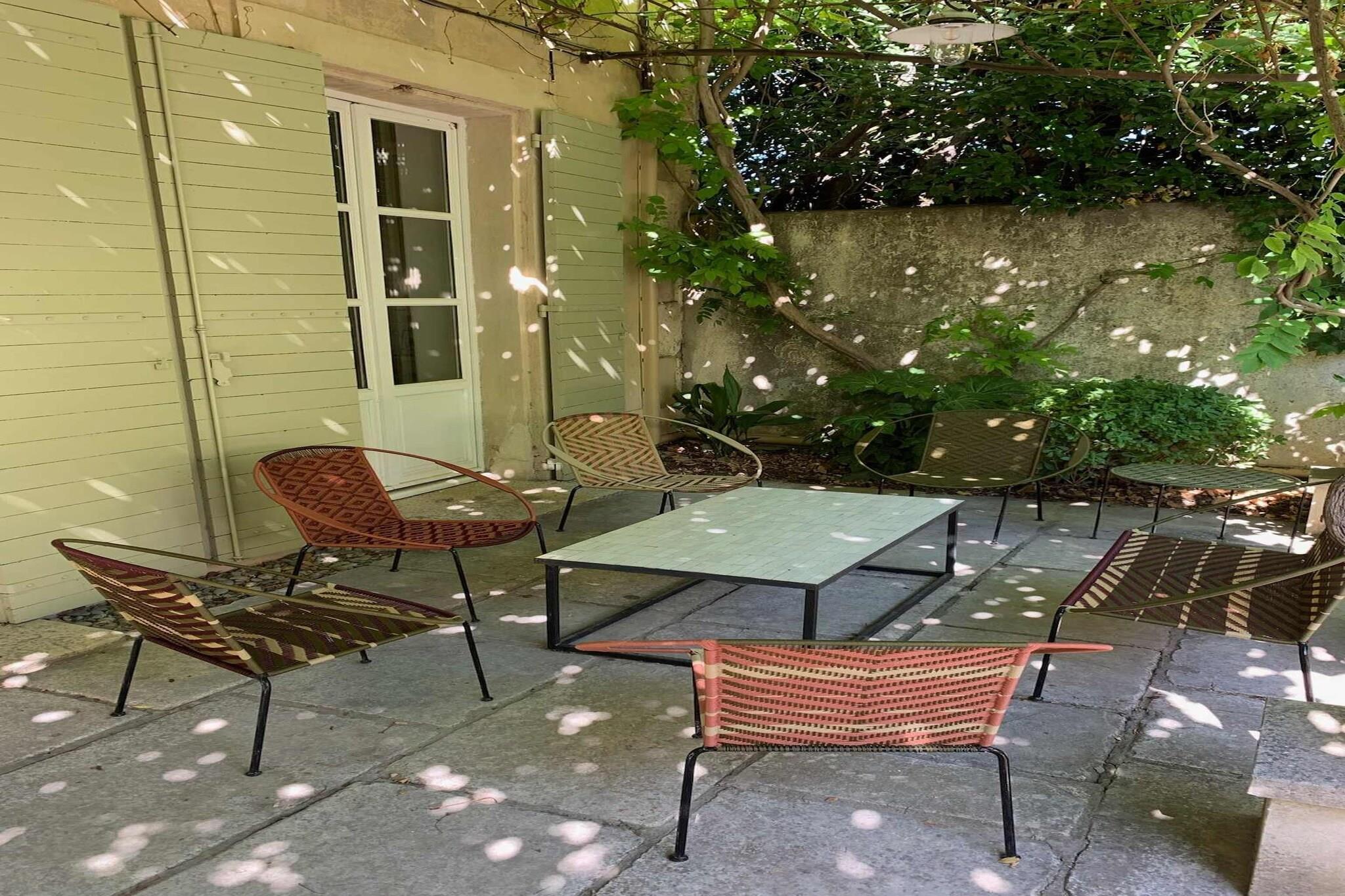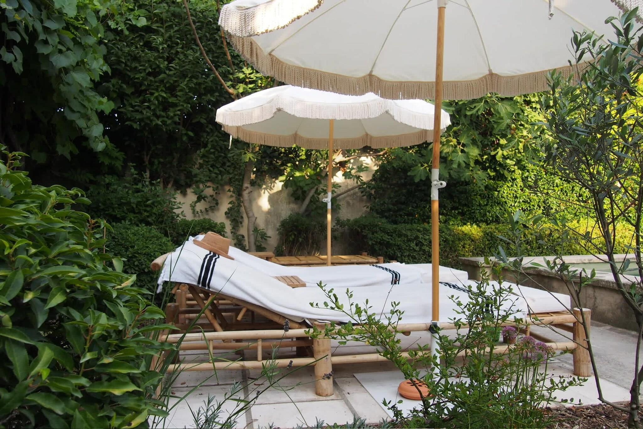 Beliggende lige uden for den fredelige landsby Maillane, er dette hjem indhyllet i den tidløse Provence-følelse - stenmure, cypresser, varmt lys i haven og rolige aftener. Det er et dejligt sted for familier eller en gruppe venner, der søger plads, privatliv og en blød landlig puls, samtidig med at de bor tæt på regionens kulturelle hjerte. Huset byder på masser af plads, der er effektivt indrettet til nem ophold fordelt over en stor stue med tv, et opholdsområde med bar og pejs, et fuldt udstyret køkken forbundet med spisestuen med plads til 8 personer og et separat toilet. Til sovepladserne finder du 5 rummelige soveværelser med kingsize-senge og veludstyrede badeværelser. Wi-Fi, tv, varme og køling samt sikker parkering på stedet giver komfort året rundt. Ejendommens facade udfolder sig til en privat have med græsplæne og skygge, bred nok til at børn kan lege og voksne kan slappe af. Swimmingpoolen bliver et knudepunkt på varme dage - morgensvømmeture, stille læsning i solen eller aftener ved vandet med et glas vin. En terrasse med siddeområde gør det nemt at spise, slappe af og samles udendørs. Maillane ligger i nærheden af Saint-Rémy-de-Provence - tæt nok på til udendørs middage, markedsture, romerske kulturarvsteder og de landskaber, der inspirerede Van Gogh. Olivenlunde, vandrestier, vinmarker og små landsbyer er i nærheden, så dagene kan bevæge sig blidt mellem natur, kultur og afslapning. Et roligt, autentisk ophold i Provence - privat, nemt og bygget til fælles øjeblikke.
