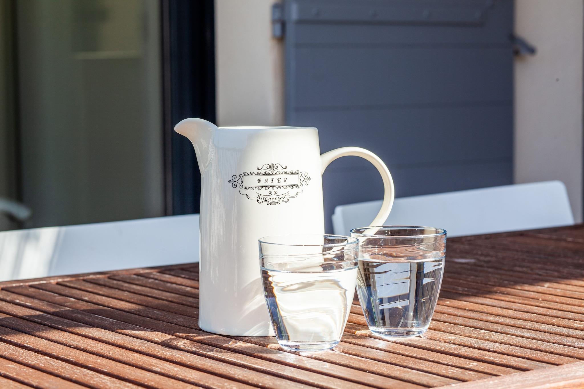 På 1. etage: (åbent køkken(elkedel, brødrister, komfur, emhætte, kaffemaskine, combi-mikroovn, opvaskemaskine , køle-fryseskab), stue / spisestue(dobbeltsovesofa(160 x 200 cm), Fjernsyn, spisebord), soveværelse(køjeseng), soveværelse(dobbeltseng(160 x 200 cm)), badeværelse(bruser, håndvask, toilet), terrasse(12 m2), strygebræt, strygejern) pulterkammer(adgang udefra), parkering, swimmingpool(deles med andre gæster, opvarmet, indhegnet, 11 x 4 m., opened from May upto and including Oct)
