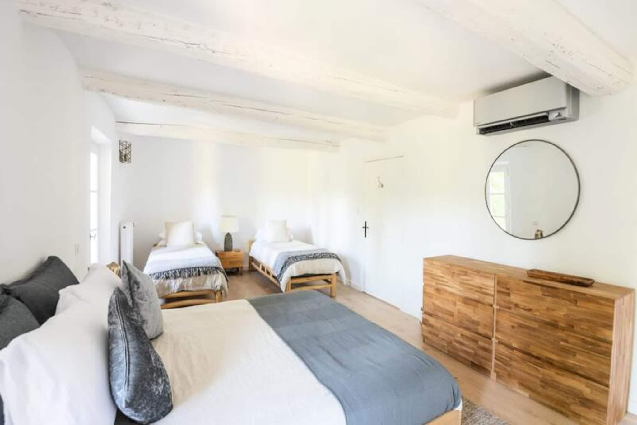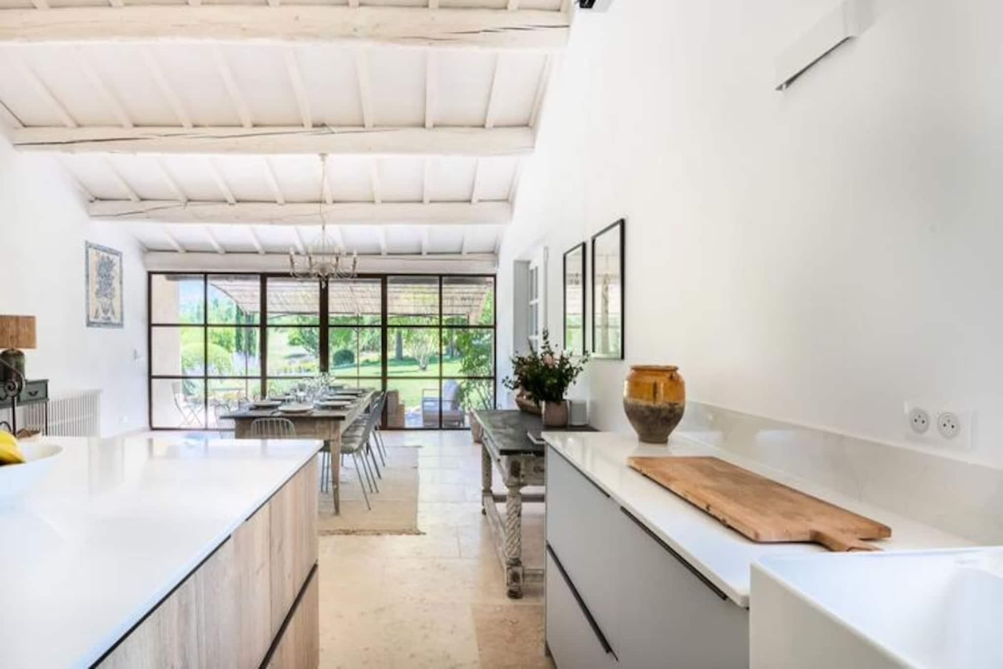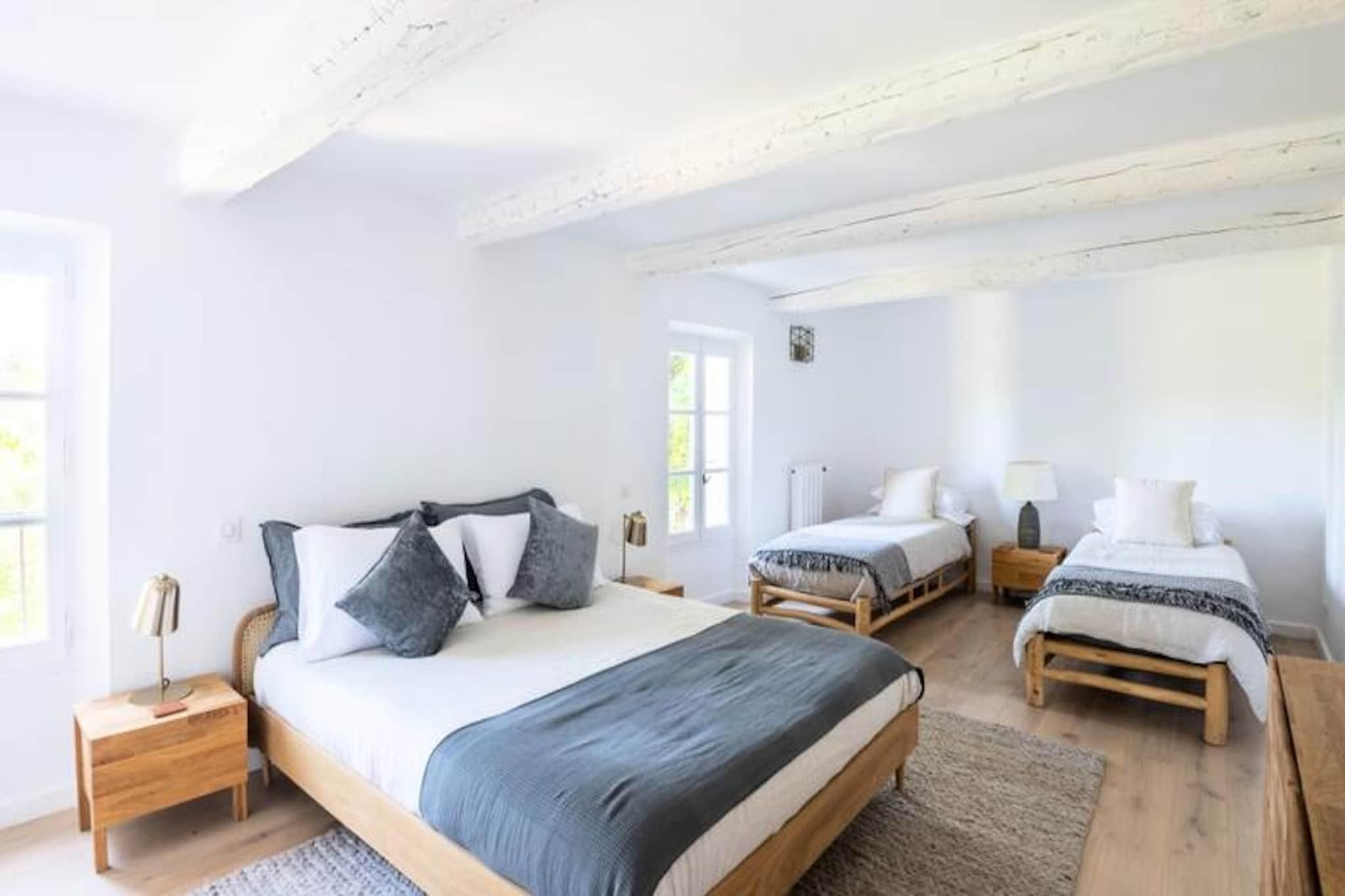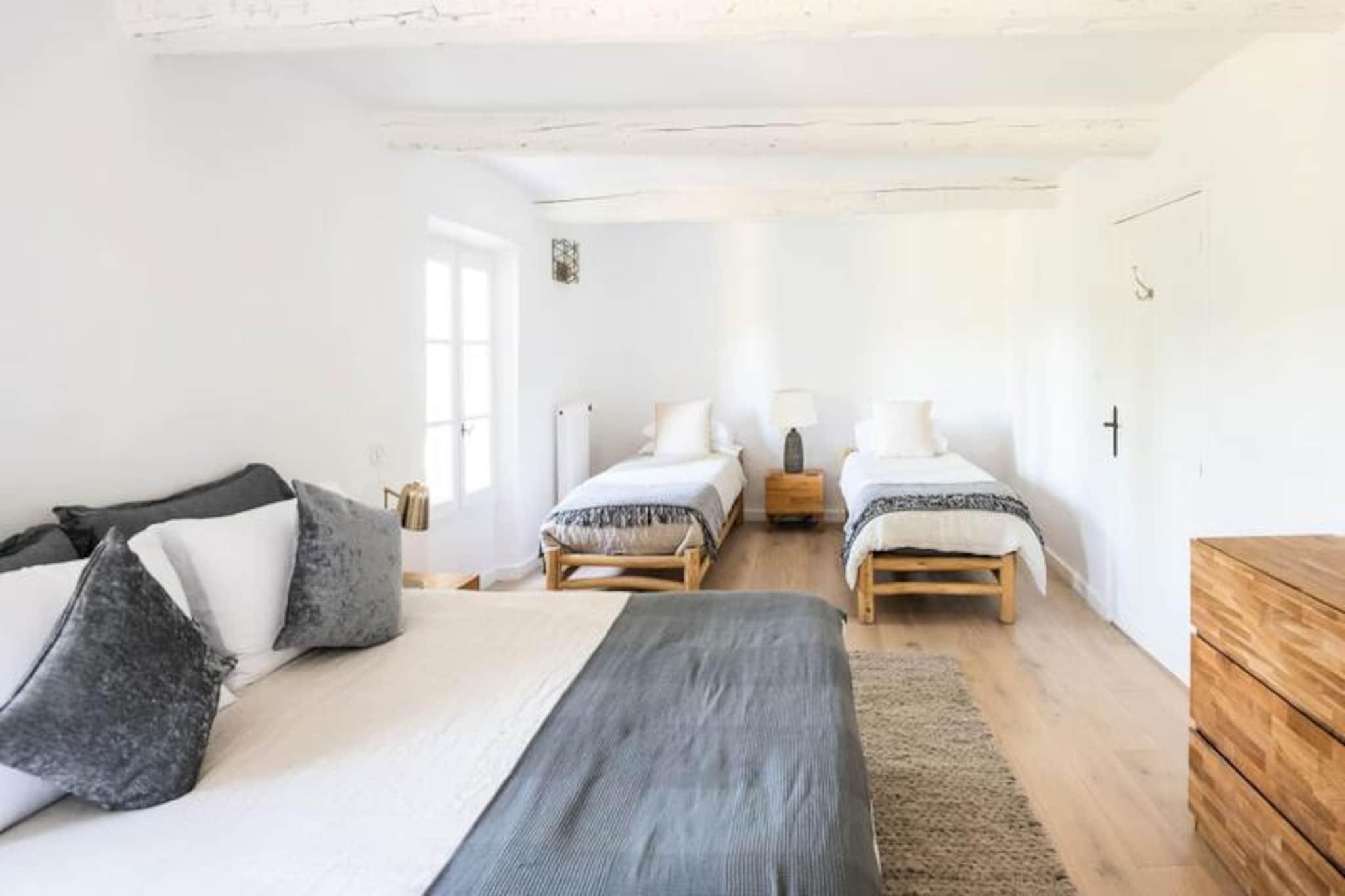 Overdådig villa ved foden af ??Mont Ventoux, ideel til 10 personer Denne storslåede ejendom vil tilbyde dig alle fordelene ved et perfekt vellykket ophold. Stuehuset er blevet fuldstændig restaureret. blandes med Både de originale funktioner (eksponeret hvidkalket murværk, polerede stengulve og originale trædøre) og den moderne er placeret ved foden af ??Mont Ventoux, hvilket tillader privatliv, ro og udsigt til det ydre tager pusten fra dig. **stueetage** Ejendommen er beliggende omkring en central gårdhave, omkring en central gårdhave. udsigt over haven med et stort køkken/alrum; spise åbent og åbent ovenpå en mezzanin stue med åben pejs. Stueetagen har en anden, mindre stue og medierum, et dedikeret studieværelse og et dedikeret kontor. og master soveværelset, mens første sal har fire soveværelser med en-suite eller tilstødende badeværelser. Haven indeholder en opvarmet swimmingpool med udsigt over en udendørs terrasse, som er det perfekte sted at nyde aftensolnedgangen. * Åbent køkken professionelt udstyret spisestue * Stor stue med åben pejs * Lille medie/lounge * Skrivebord * Soveværelse 1: Master soveværelse med en-suite badeværelse **etage** * Soveværelse 2: Master soveværelse med en-suite badeværelse * Soveværelse 3: Dobbeltværelse med en-suite badeværelse * Soveværelse 4: Familieværelse: Dobbeltseng og 2 (små) enkeltsenge med tilstødende badeværelse * Soveværelse 5: Dobbeltværelse med en-suite badeværelse Et charmerende loftslegeværelse er tilgængeligt på loftet Villa Les Saffres ligger i hjertet af byen. ti minutter fra Malaucène, en landsby med en rig naturarv, der betragtes som det gastronomiske centrum af Provence og en af ??de mest traditionelle landsbyer i regionen. Han er kendt for sin vin, gedeost og årstidens råvarer, og han nyder godt af et af de ældste markeder i Provence samt mange fremragende restauranter. Der er en række kulturelle steder i nærheden. steder at besøge i regionen, fra den berømte bro og pavepaladset i Avignon, til de spektakulære lavendelmarker i Luberon-massivet, og for cykelentusiaster den berømte Mont Ventoux og mange andre ting... Depositum (i euro) - 1200