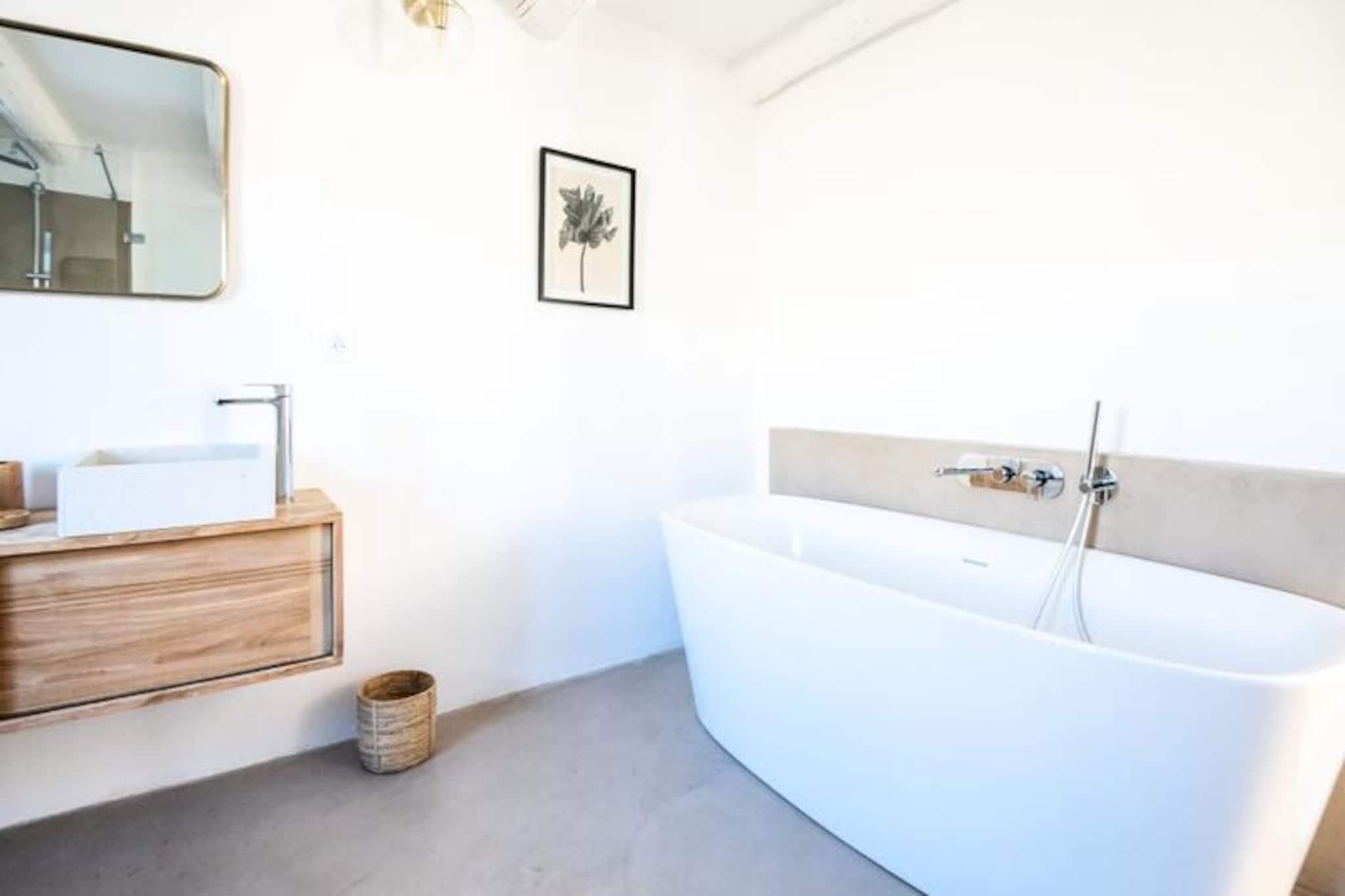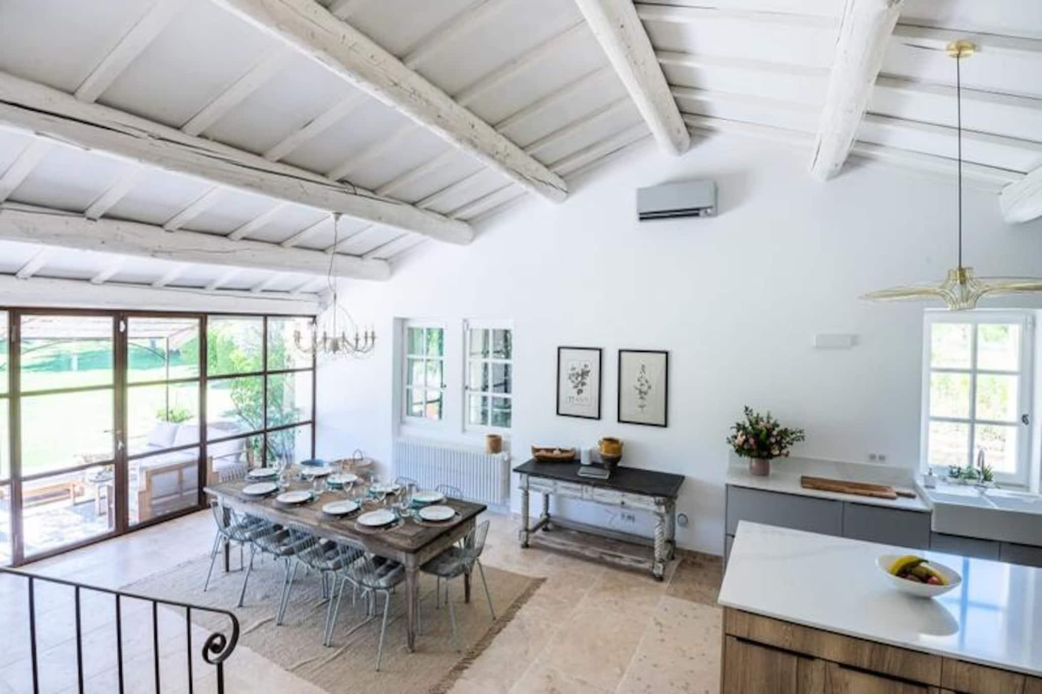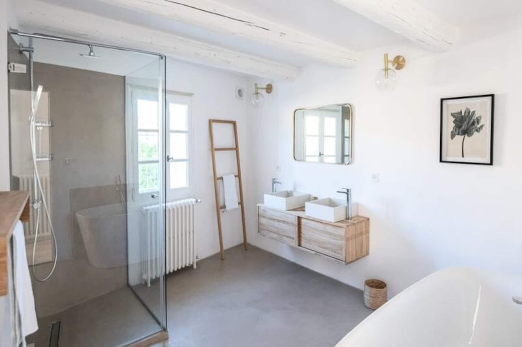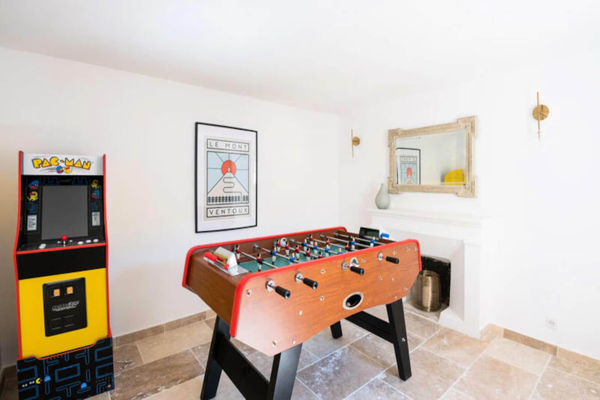 Overdådig villa ved foden af ??Mont Ventoux, ideel til 10 personer Denne storslåede ejendom vil tilbyde dig alle fordelene ved et perfekt vellykket ophold. Stuehuset er blevet fuldstændig restaureret. blandes med Både de originale funktioner (eksponeret hvidkalket murværk, polerede stengulve og originale trædøre) og den moderne er placeret ved foden af ??Mont Ventoux, hvilket tillader privatliv, ro og udsigt til det ydre tager pusten fra dig. **stueetage** Ejendommen er beliggende omkring en central gårdhave, omkring en central gårdhave. udsigt over haven med et stort køkken/alrum; spise åbent og åbent ovenpå en mezzanin stue med åben pejs. Stueetagen har en anden, mindre stue og medierum, et dedikeret studieværelse og et dedikeret kontor. og master soveværelset, mens første sal har fire soveværelser med en-suite eller tilstødende badeværelser. Haven indeholder en opvarmet swimmingpool med udsigt over en udendørs terrasse, som er det perfekte sted at nyde aftensolnedgangen. * Åbent køkken professionelt udstyret spisestue * Stor stue med åben pejs * Lille medie/lounge * Skrivebord * Soveværelse 1: Master soveværelse med en-suite badeværelse **etage** * Soveværelse 2: Master soveværelse med en-suite badeværelse * Soveværelse 3: Dobbeltværelse med en-suite badeværelse * Soveværelse 4: Familieværelse: Dobbeltseng og 2 (små) enkeltsenge med tilstødende badeværelse * Soveværelse 5: Dobbeltværelse med en-suite badeværelse Et charmerende loftslegeværelse er tilgængeligt på loftet Villa Les Saffres ligger i hjertet af byen. ti minutter fra Malaucène, en landsby med en rig naturarv, der betragtes som det gastronomiske centrum af Provence og en af ??de mest traditionelle landsbyer i regionen. Han er kendt for sin vin, gedeost og årstidens råvarer, og han nyder godt af et af de ældste markeder i Provence samt mange fremragende restauranter. Der er en række kulturelle steder i nærheden. steder at besøge i regionen, fra den berømte bro og pavepaladset i Avignon, til de spektakulære lavendelmarker i Luberon-massivet, og for cykelentusiaster den berømte Mont Ventoux og mange andre ting... Depositum (i euro) - 1200